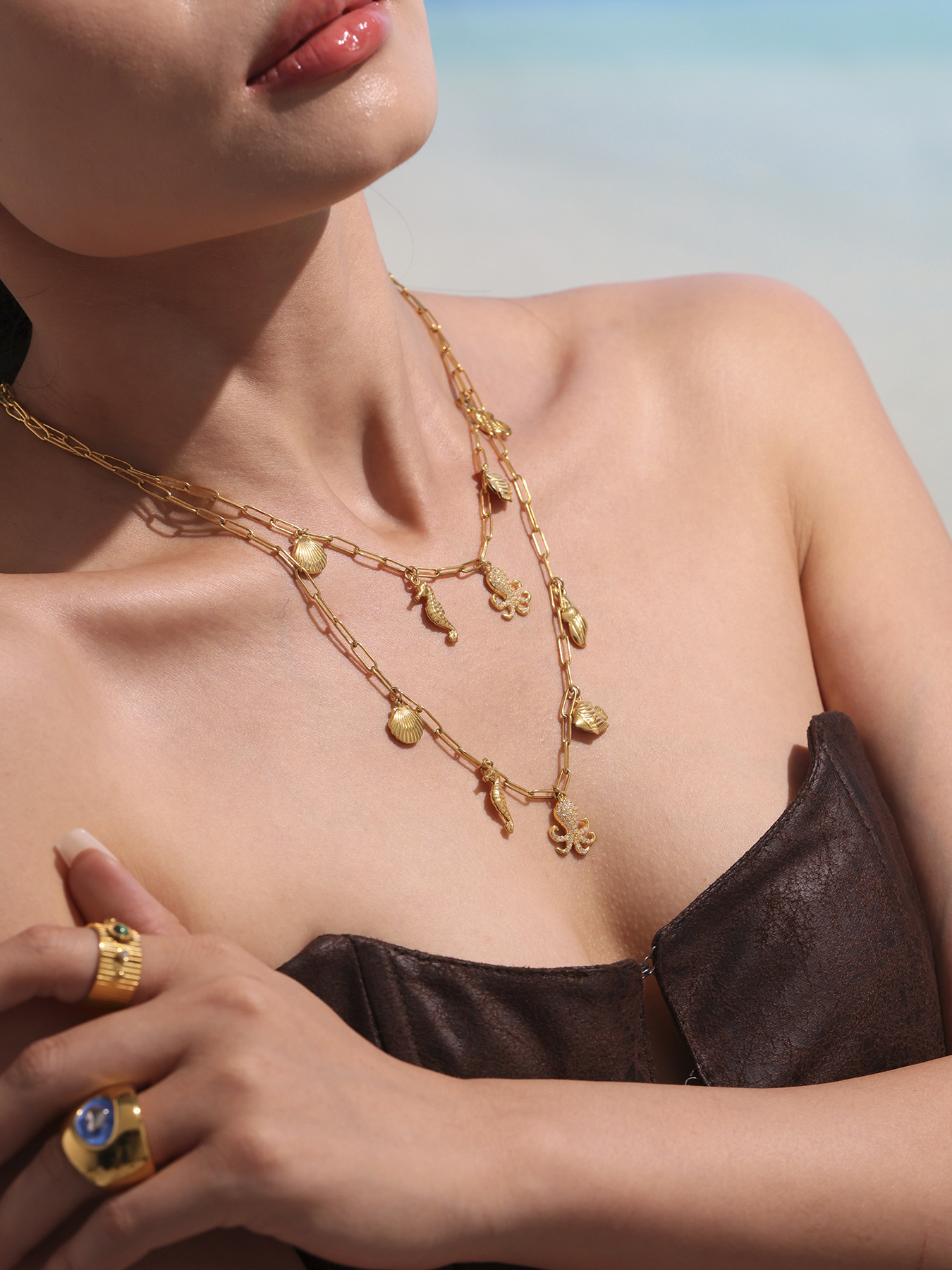 18k金项链 多巴胺项链 吊坠项链 饰品项链 男士项链 贝壳项链