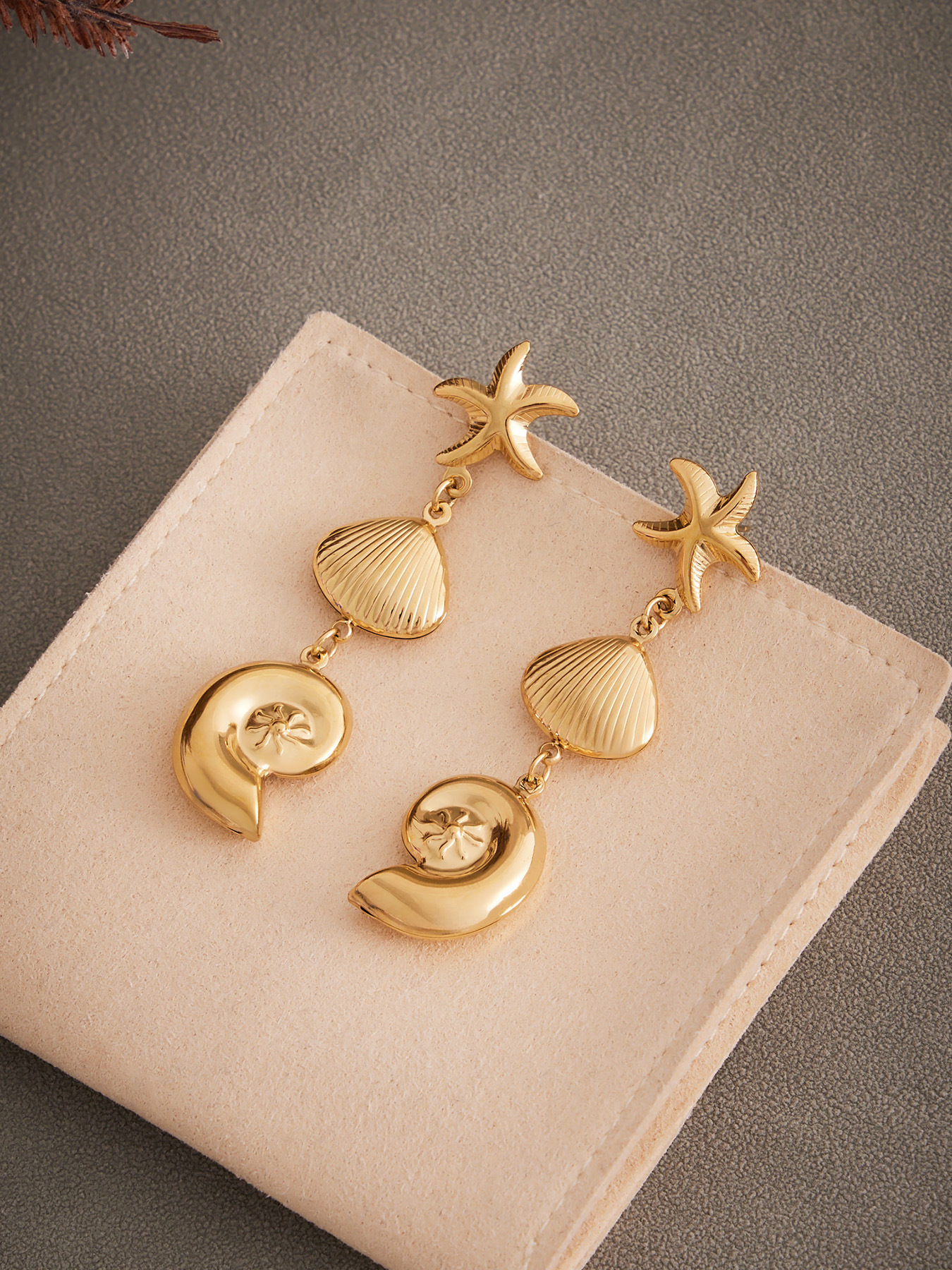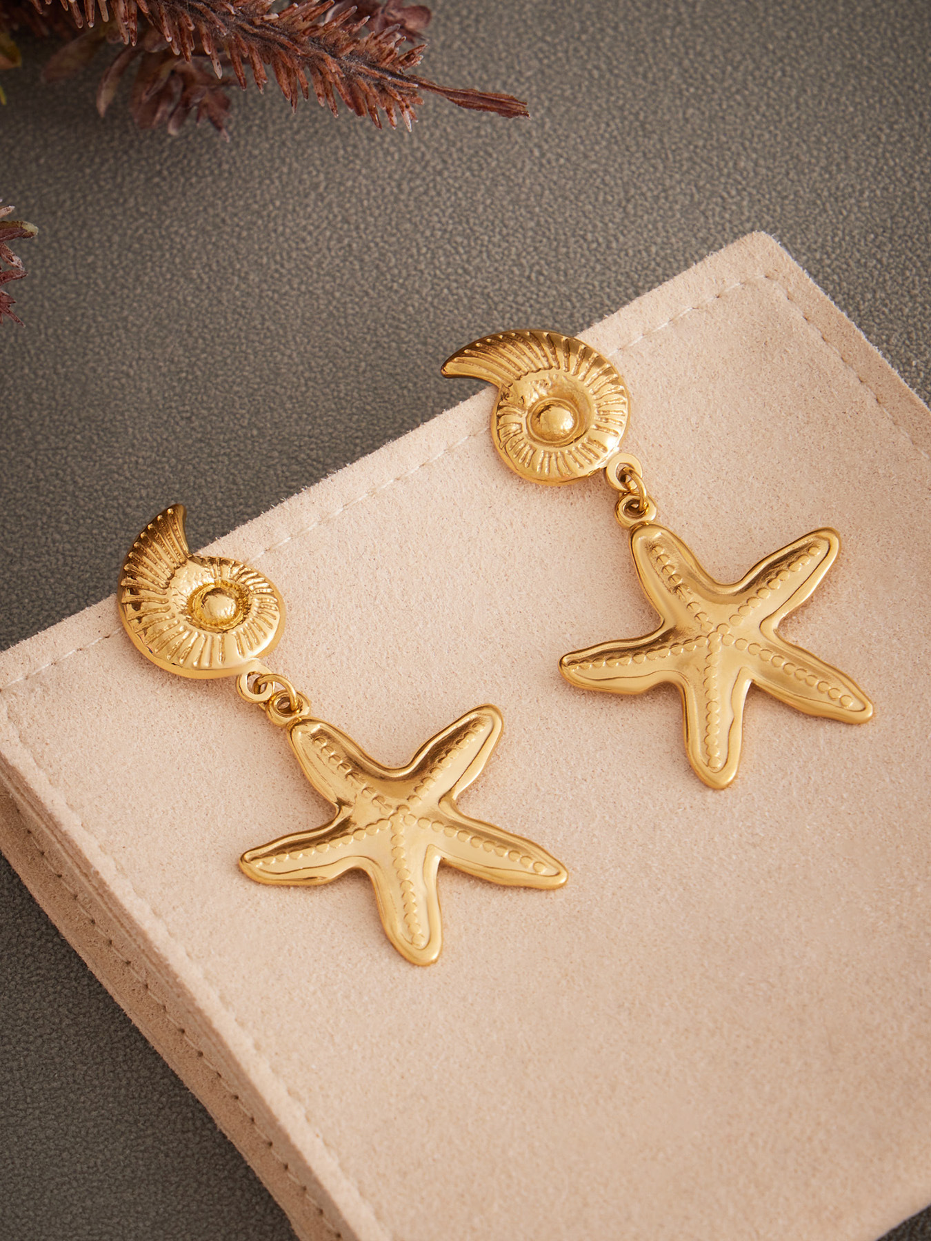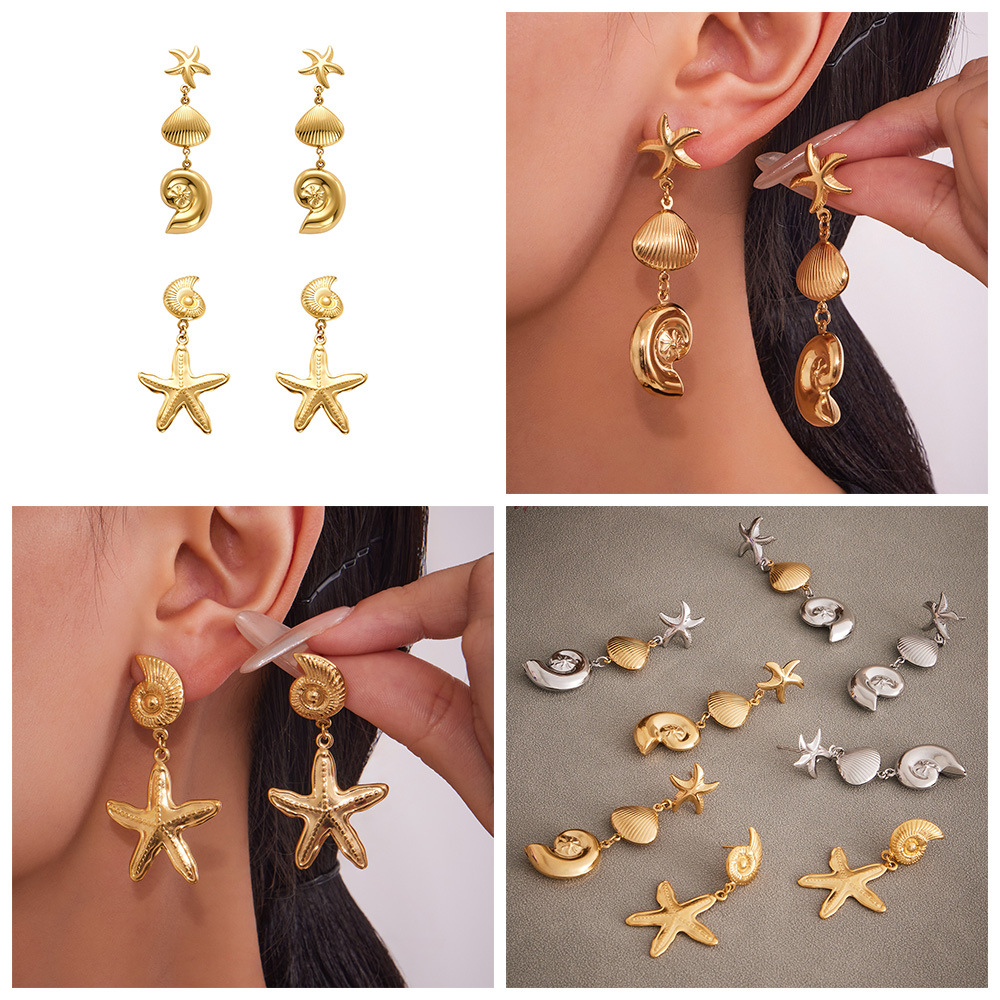 Ocean Style Sea Shell & Starfish Statement Earrings – PVD 18K Gold Plated Stainless Steel, Bold Textured Coastal Jewelry