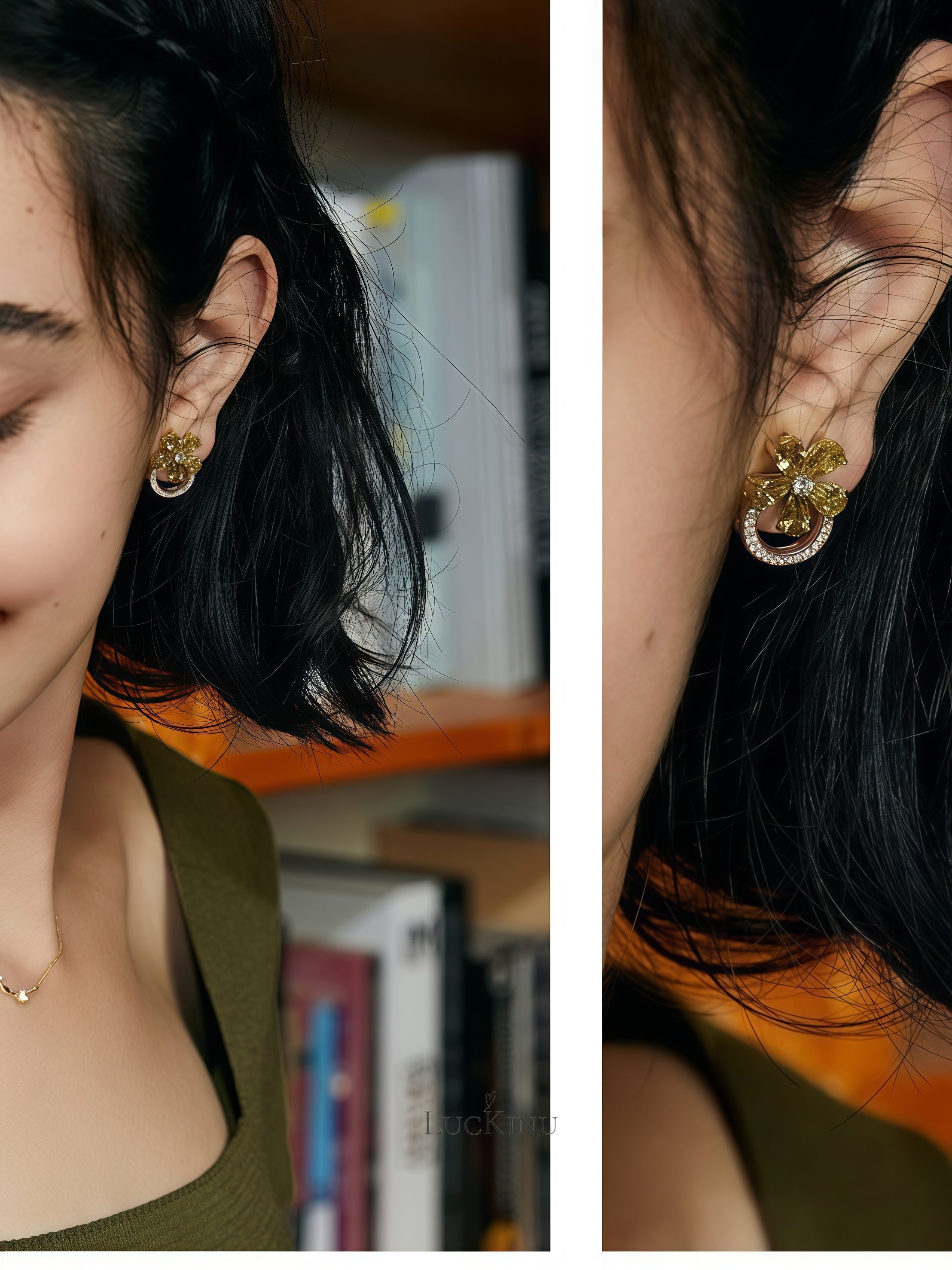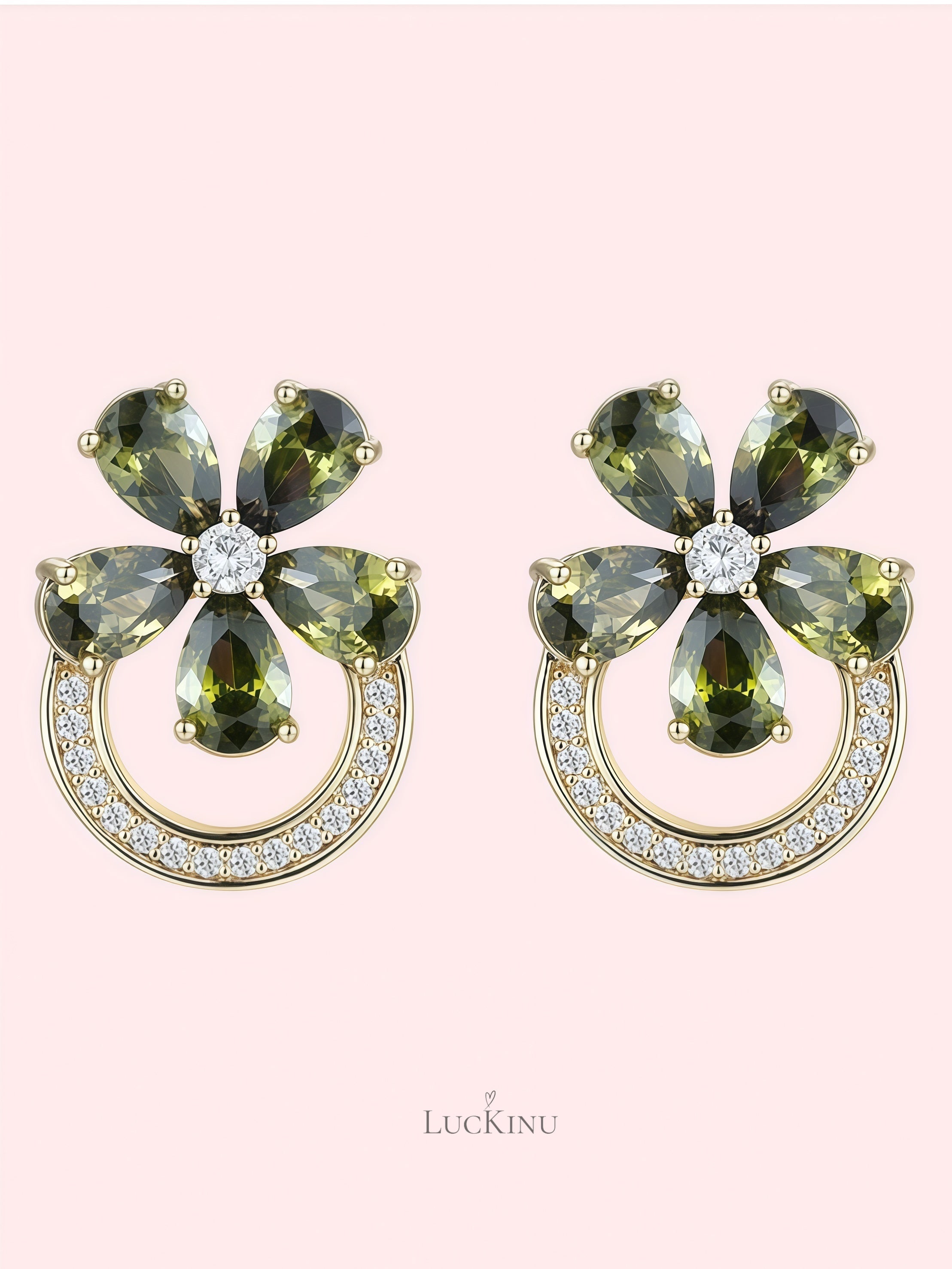 Olive Green Zircon Floral Stud Earrings – Vintage Elegant Everyday Jewelry
