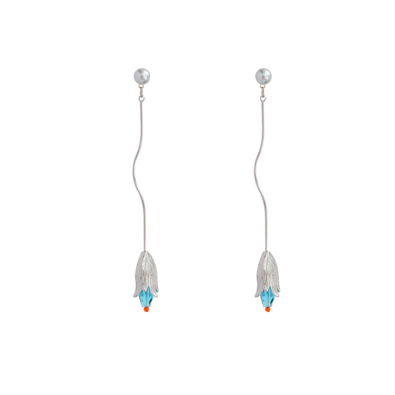 Original Lily of the Valley Long Pendant Earrings — Elegant Artistic Statement Earrings for Women