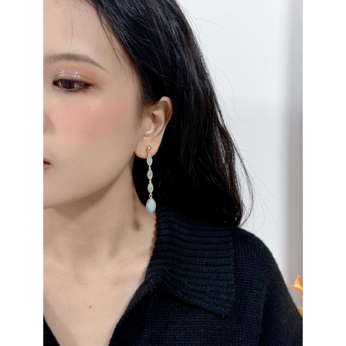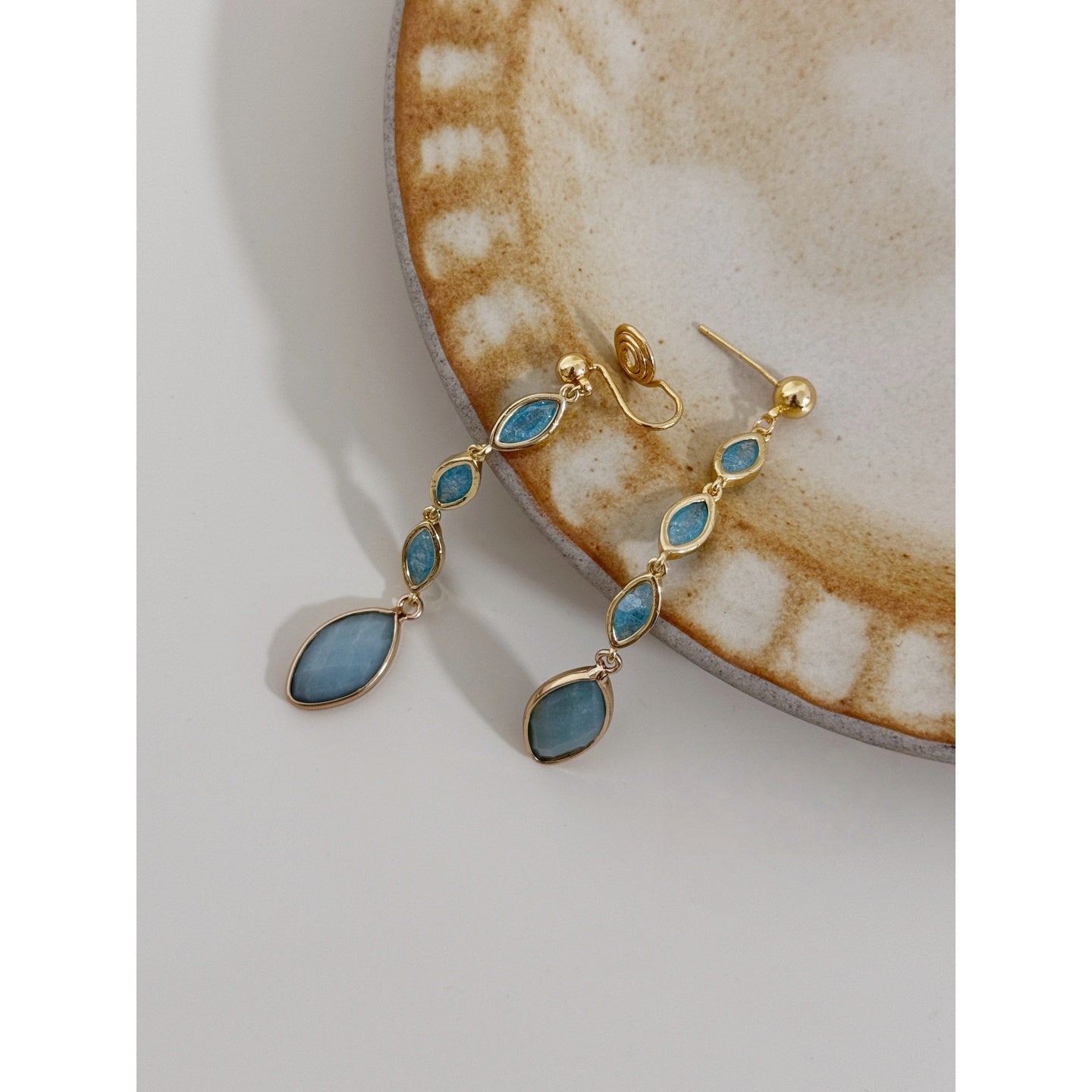Original Vintage Lake Blue Earrings — Unique Chinese-Style Court-Inspired Elegant Earrings for Women