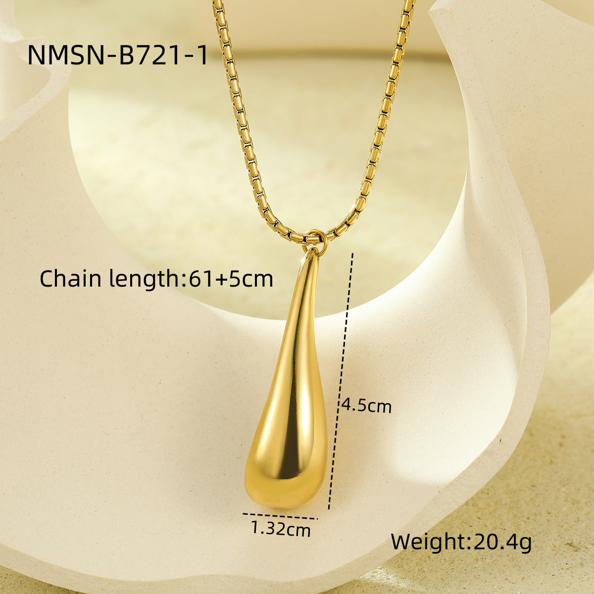 A bold hollow teardrop pendant necklace with a sleek, polished finish, plated in 18K gold on stainless steel. Statement-making yet versatile—perfect for adding a vintage-inspired touch to any outfit.
