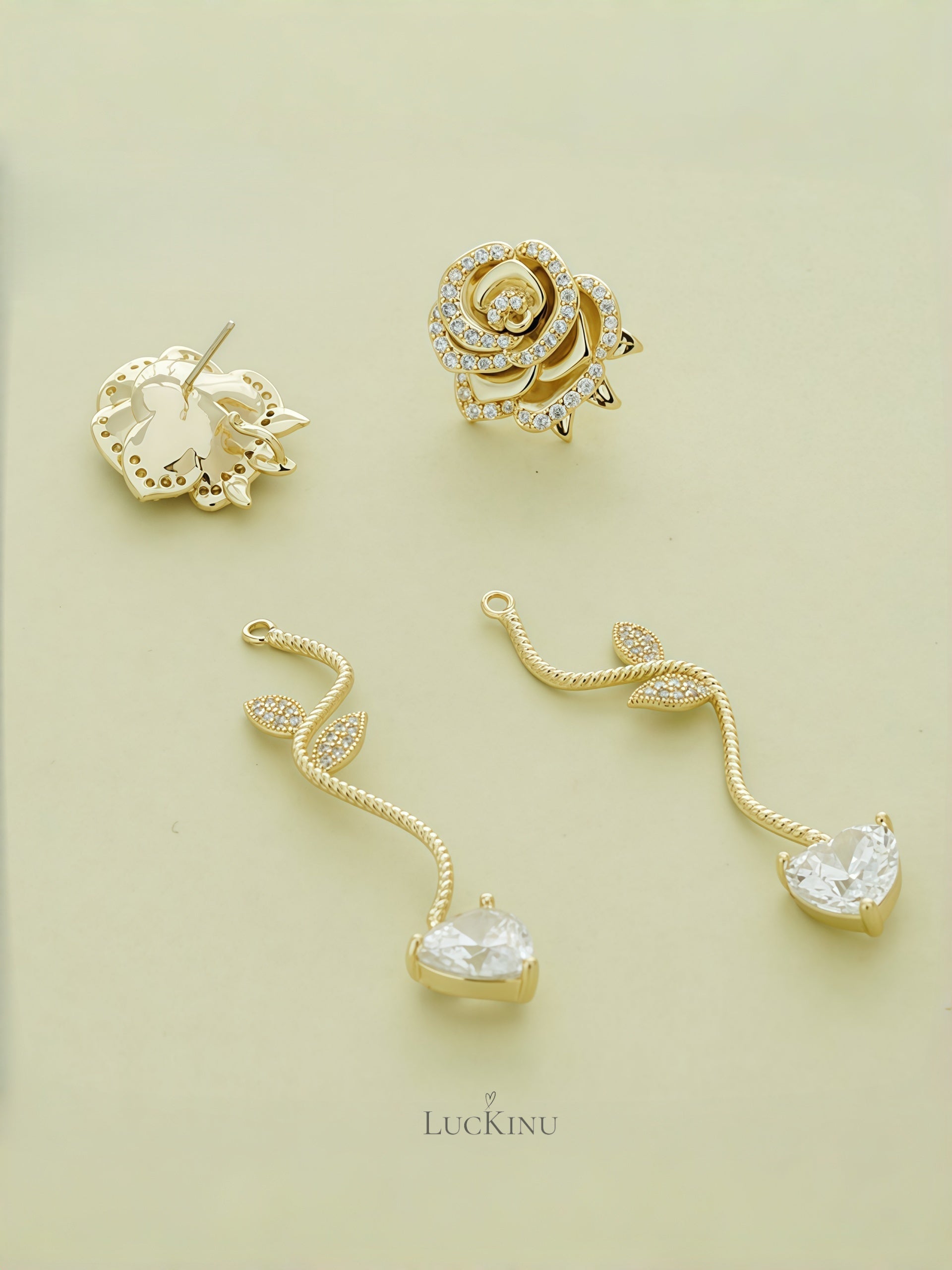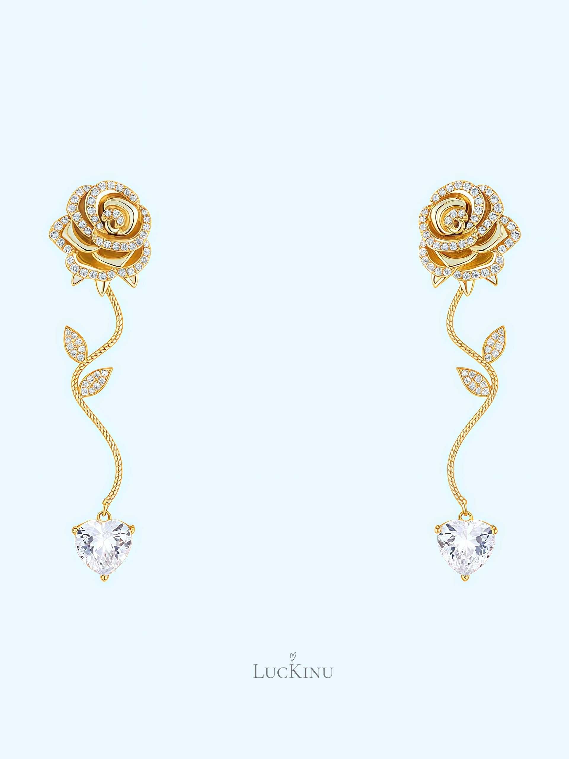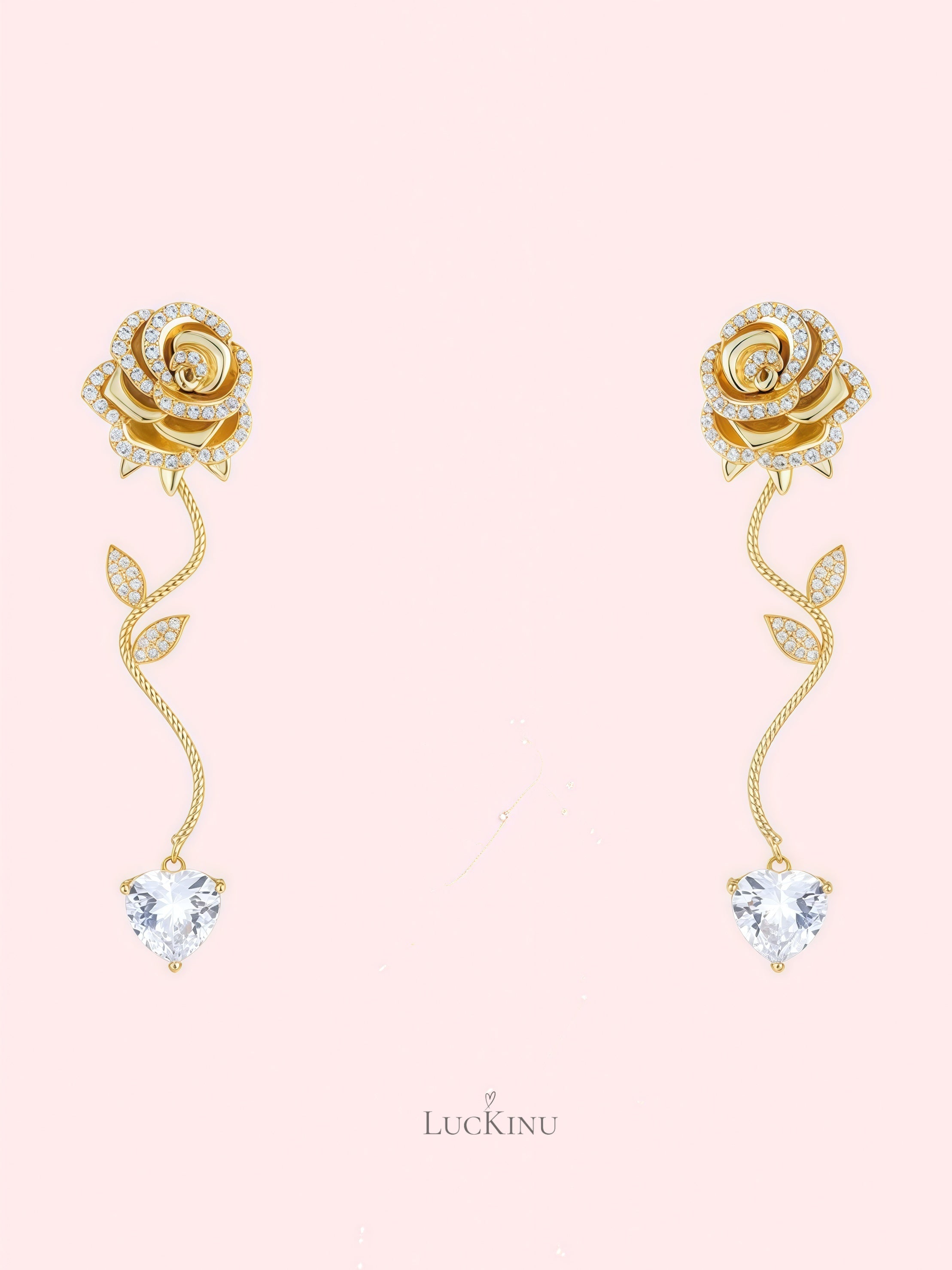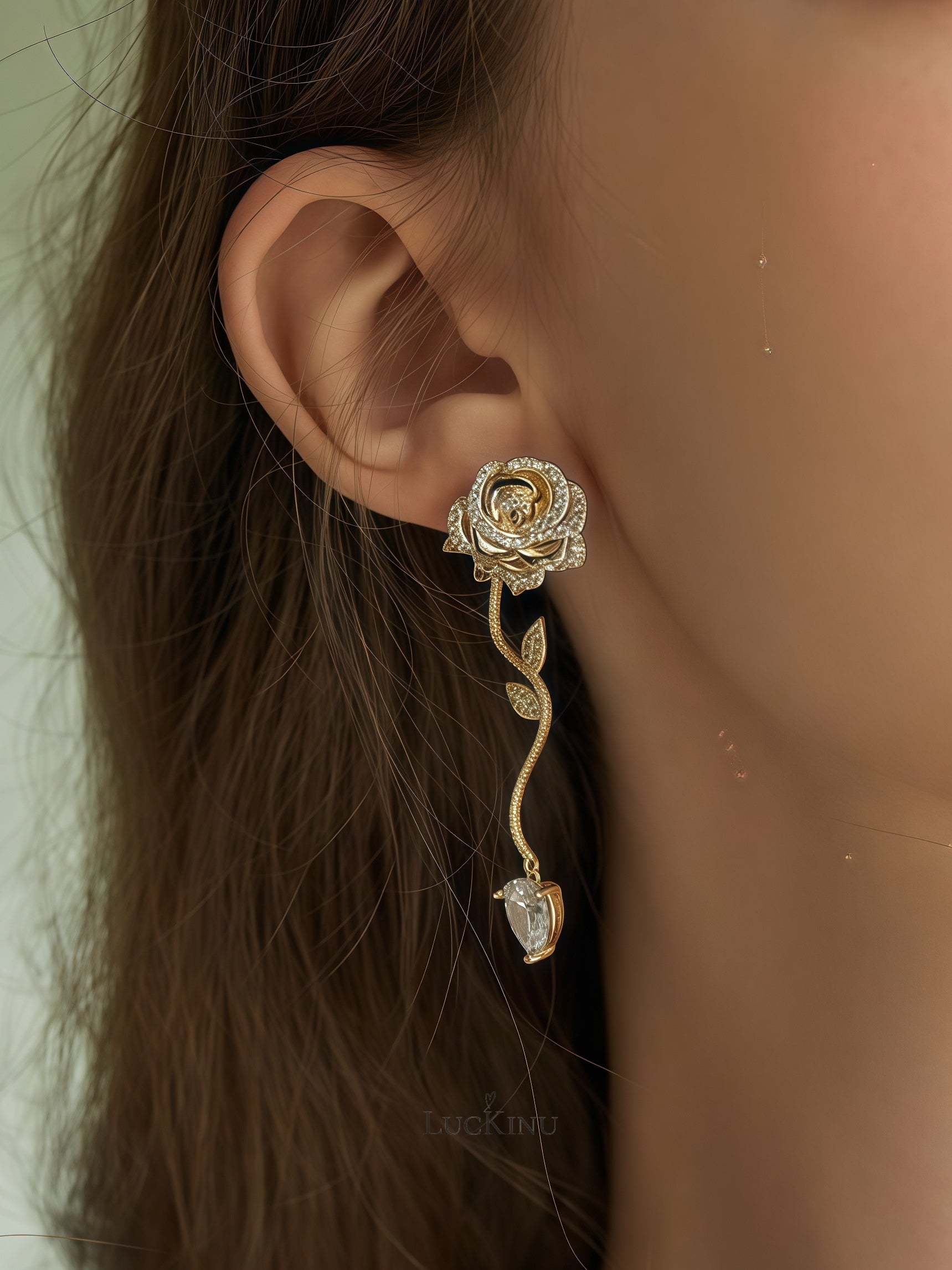 Rose Camellia Pavé Teardrop Earrings – Romantic French Luxury Jewelry