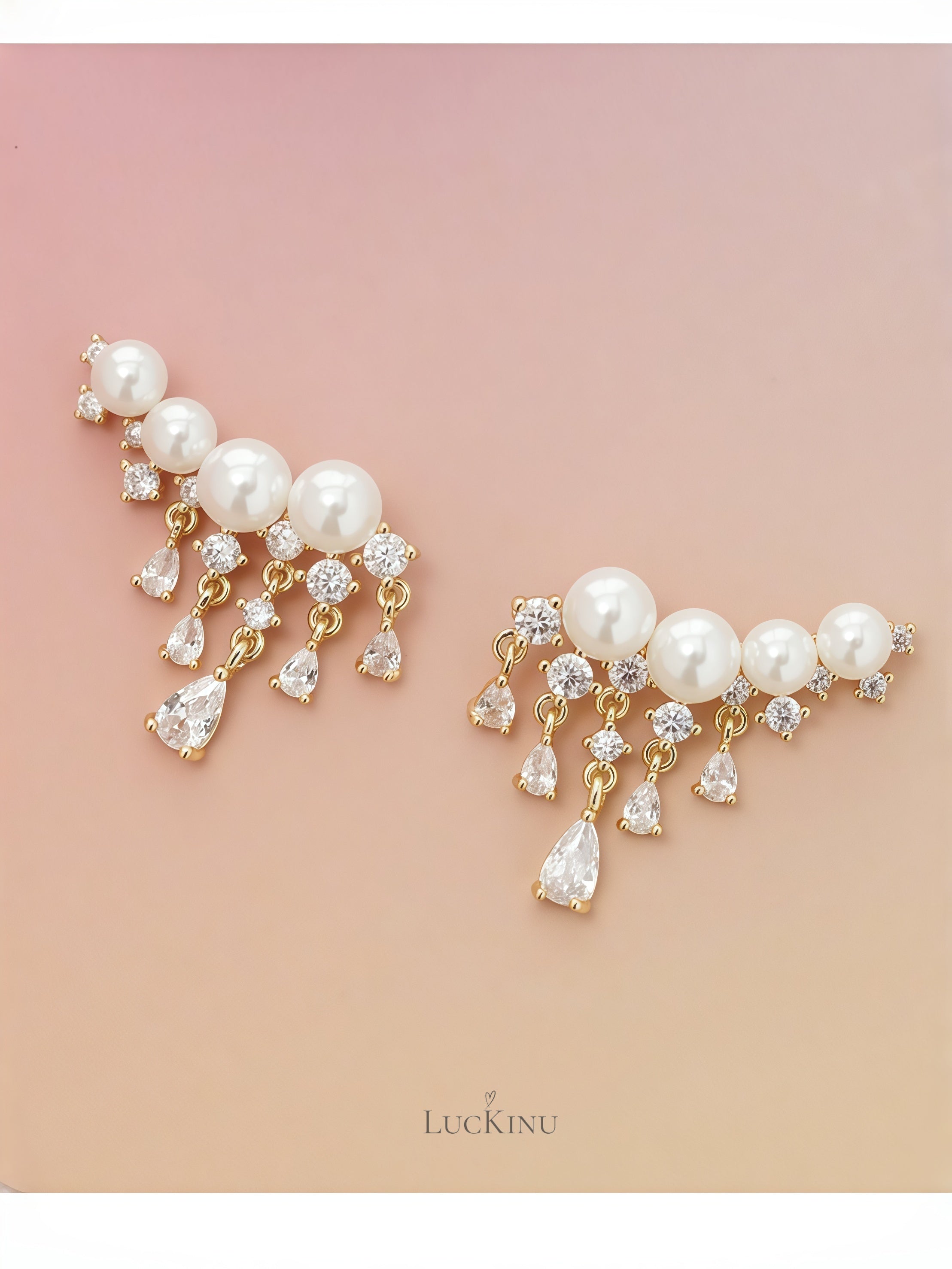 Gradient Curve Pearl Zircon Tassel Earrings – Elegant Luxury Jewelry