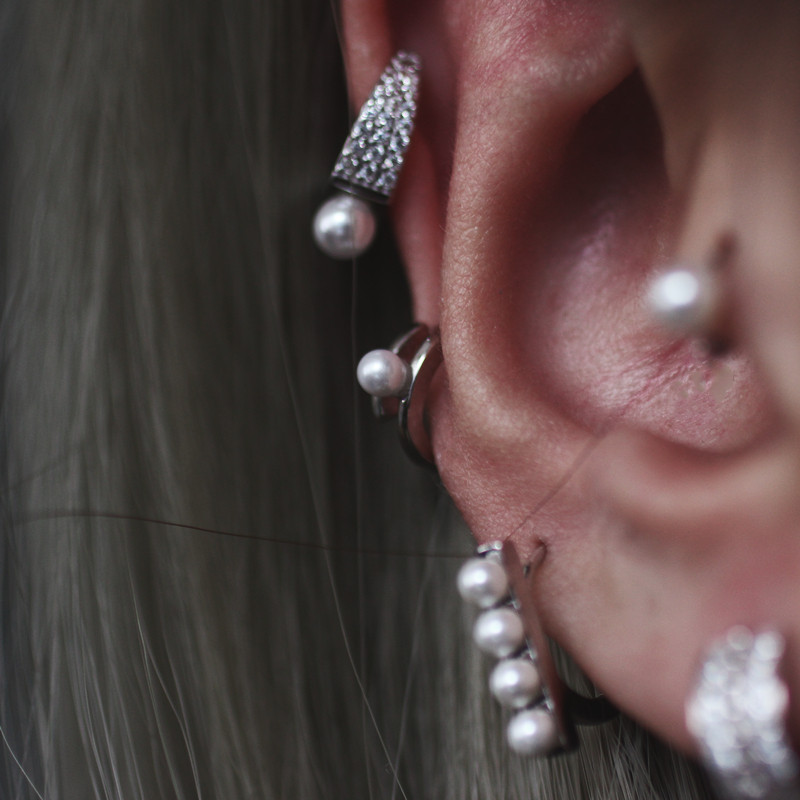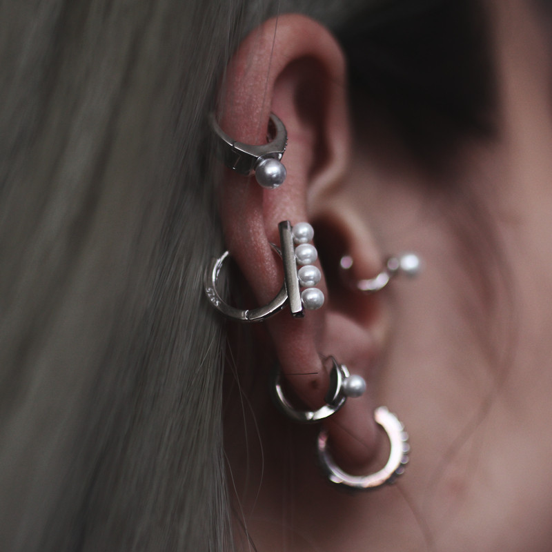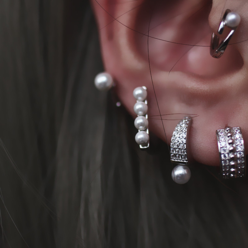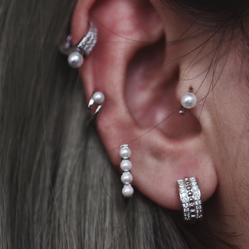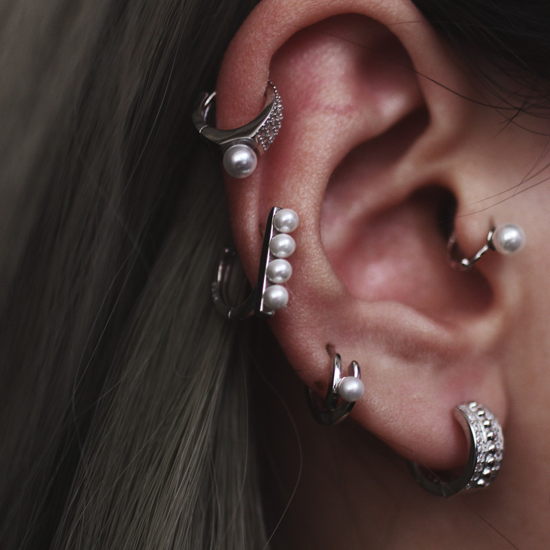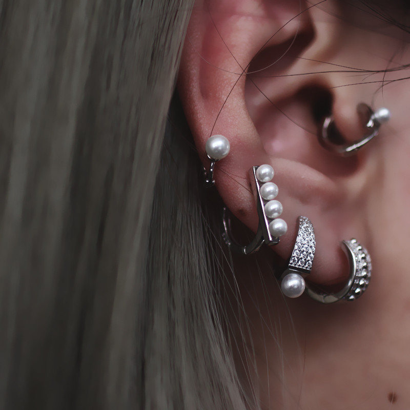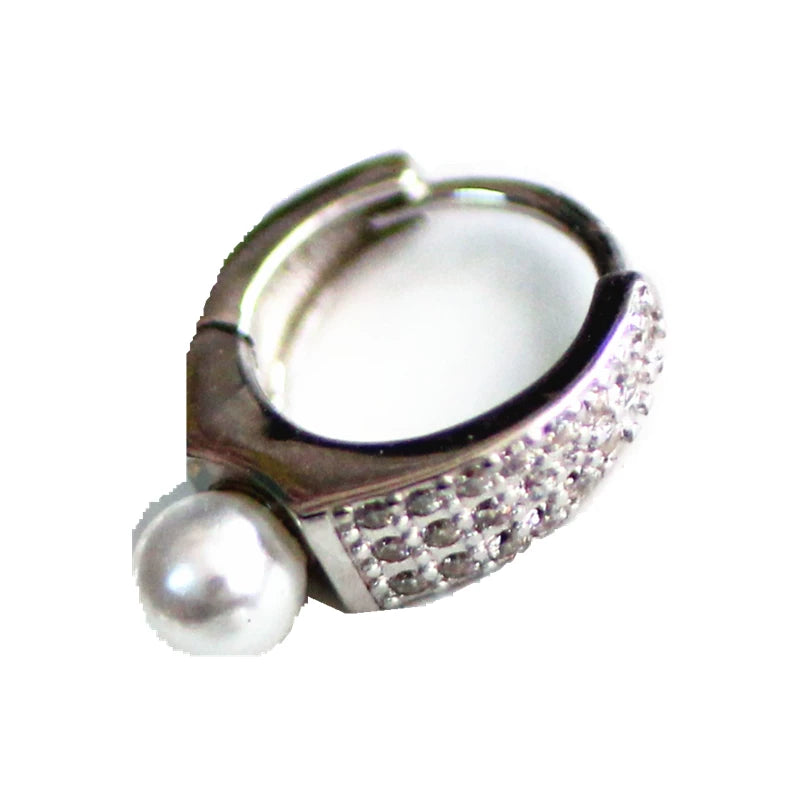 Faux Pearl CZ Ear Cuff in 925 Sterling Silver, Vintage European Chic Jewelry