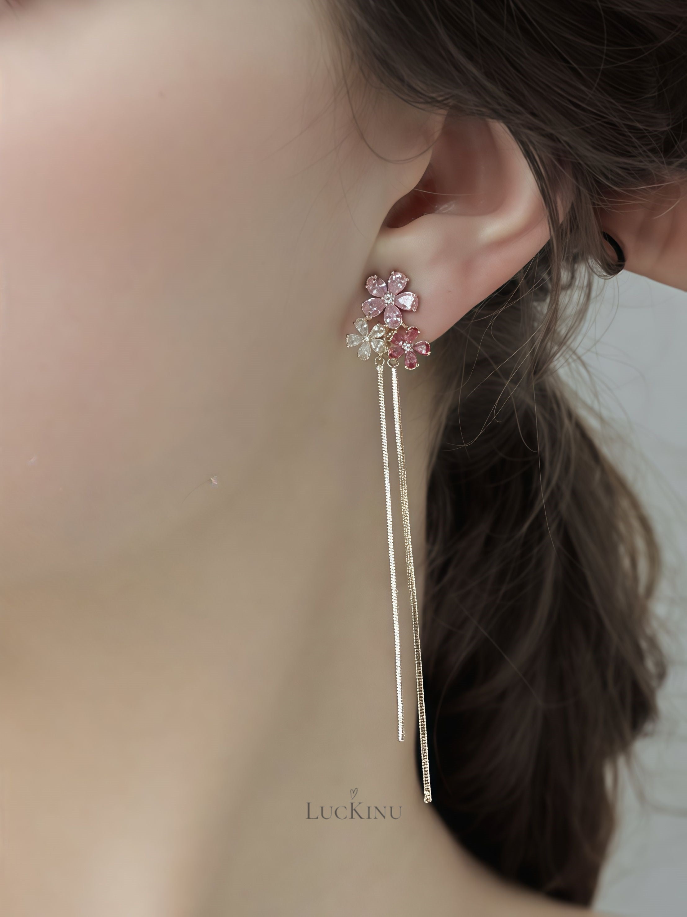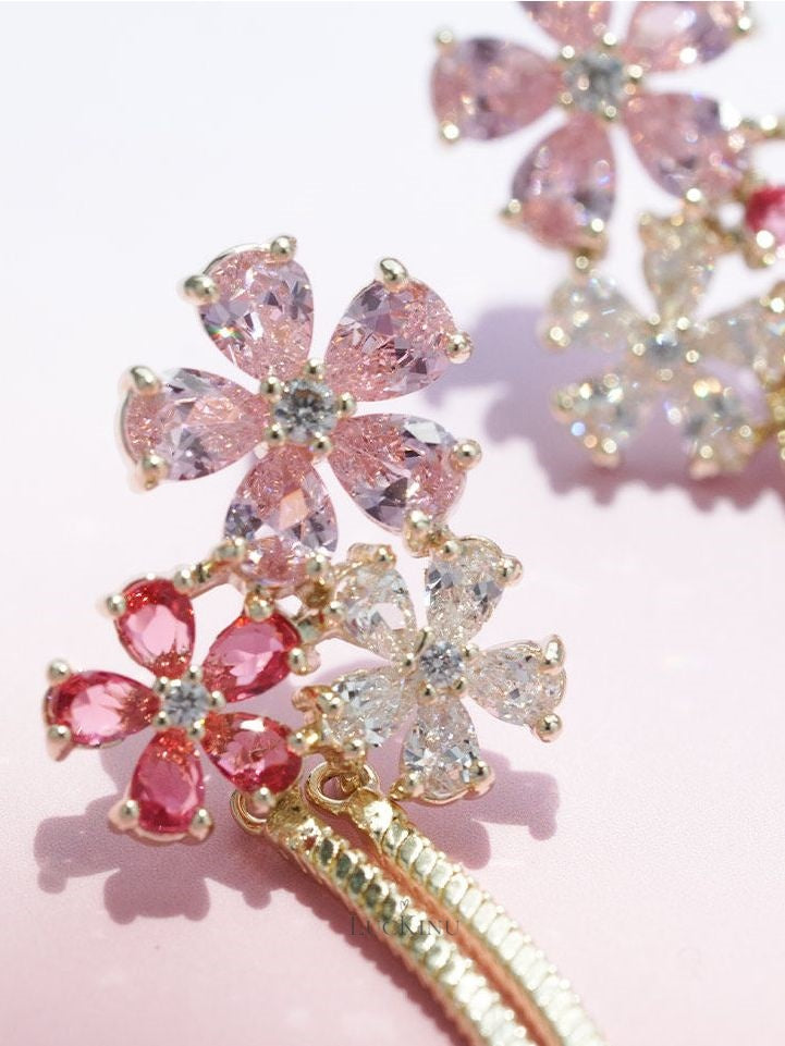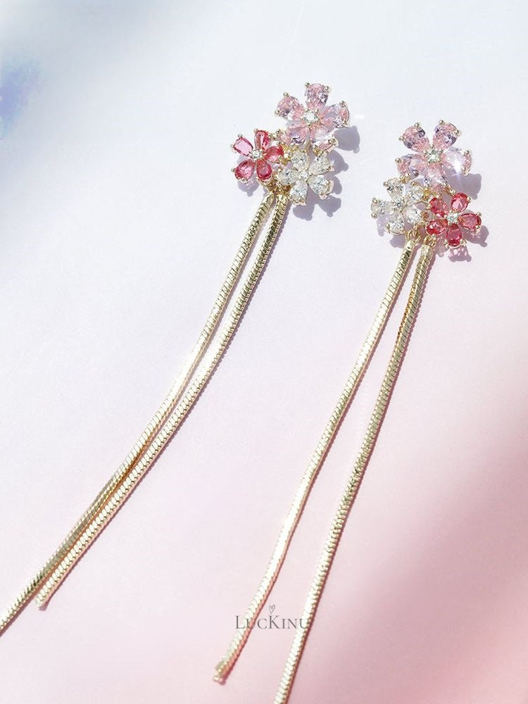 Pink Zircon Floral Tassel Earrings – Soft Feminine Jewelry