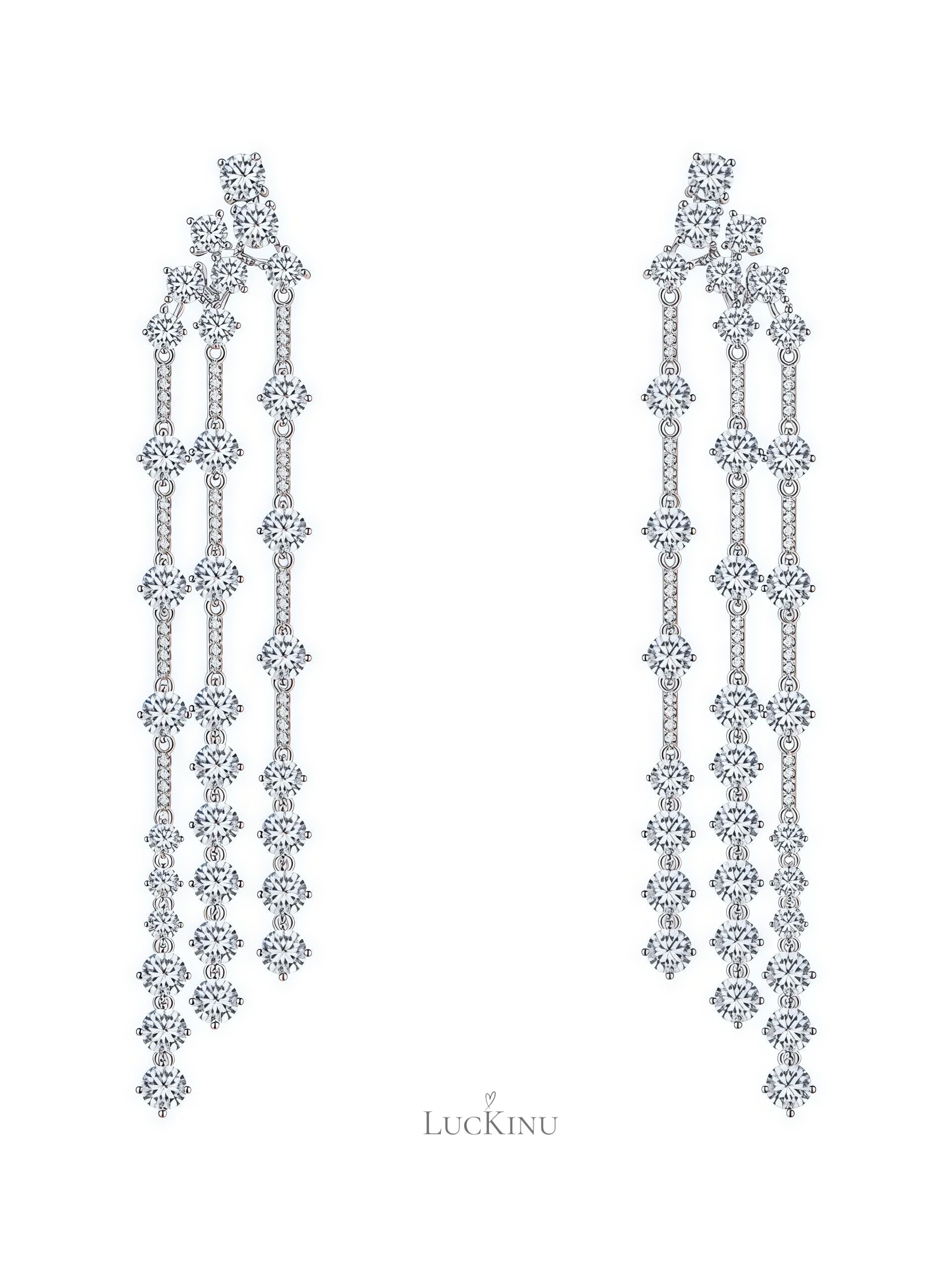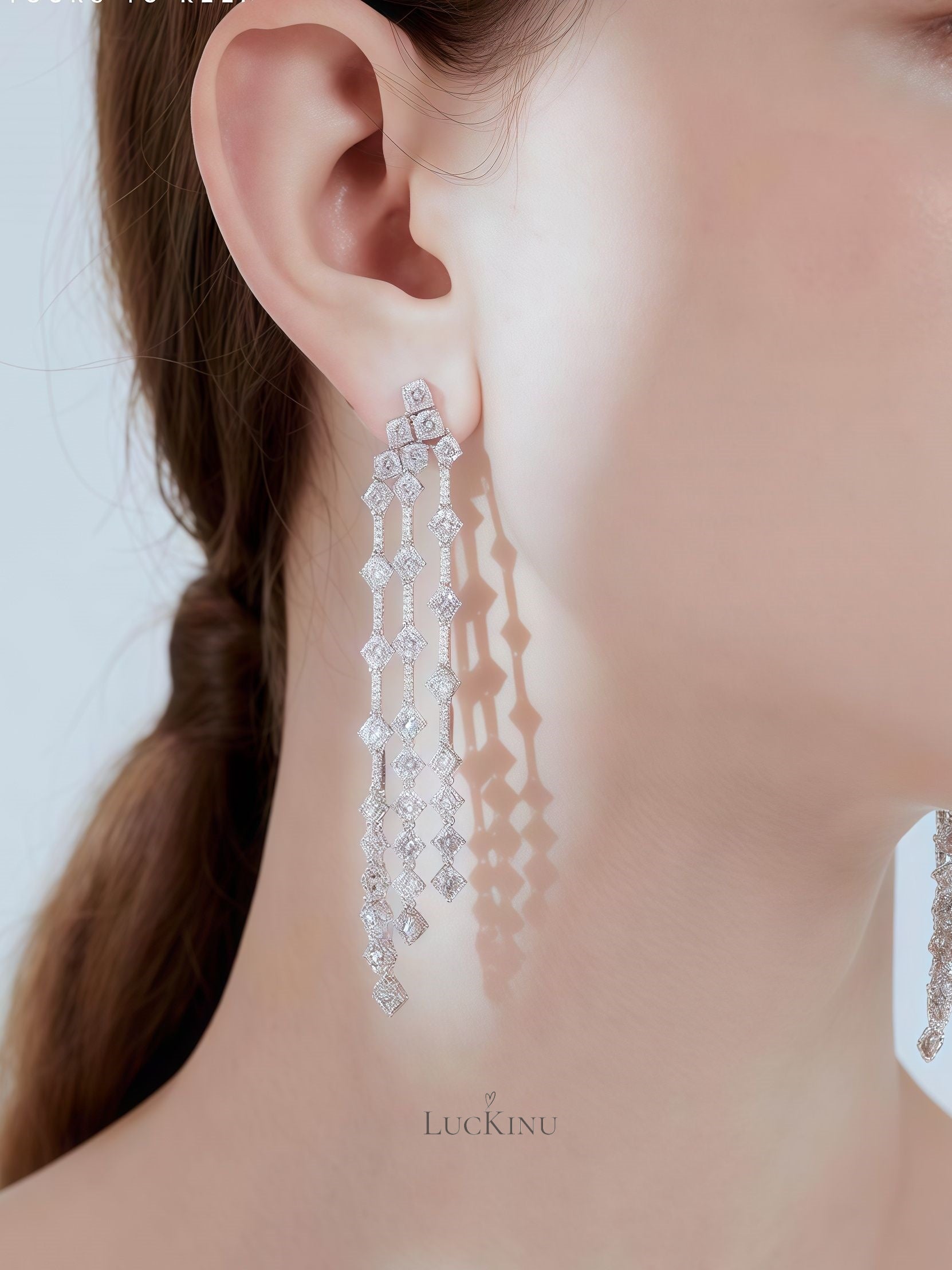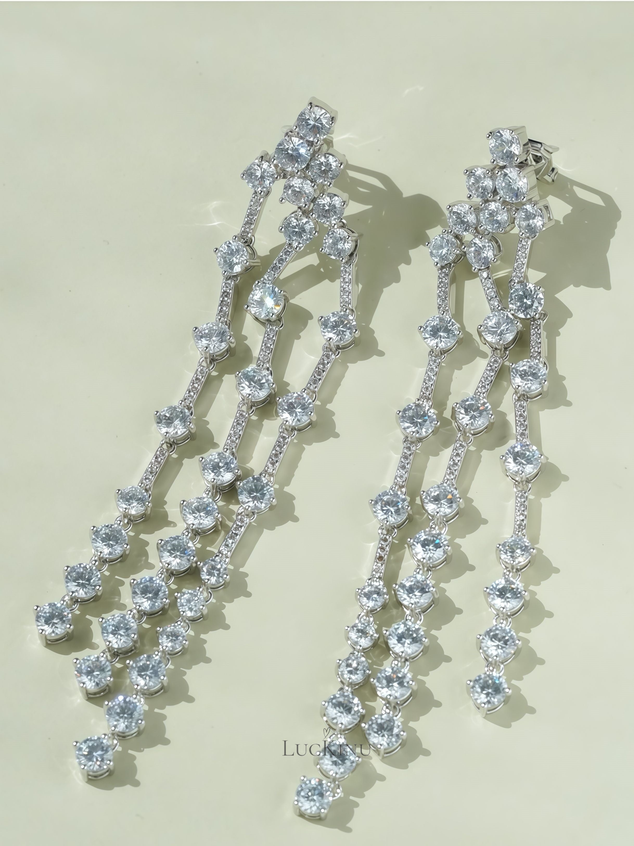 Layered Long Tassel Earrings – Luxury Rhodium-Plated Statement Jewelry