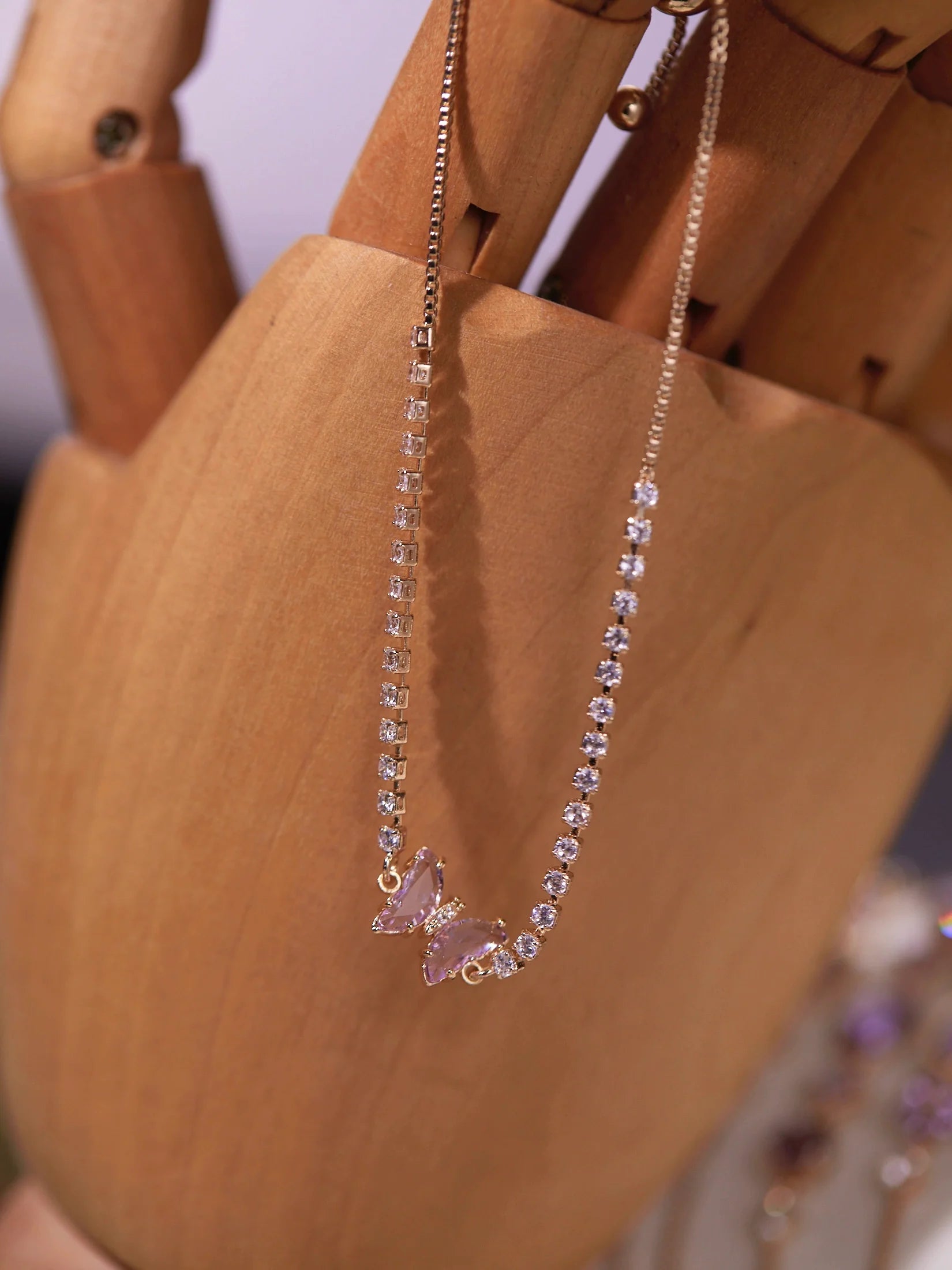 Original Purple Crystal Butterfly Bracelet – Vintage Inspired Dainty Zircon Jewelry, Unique Feminine Design