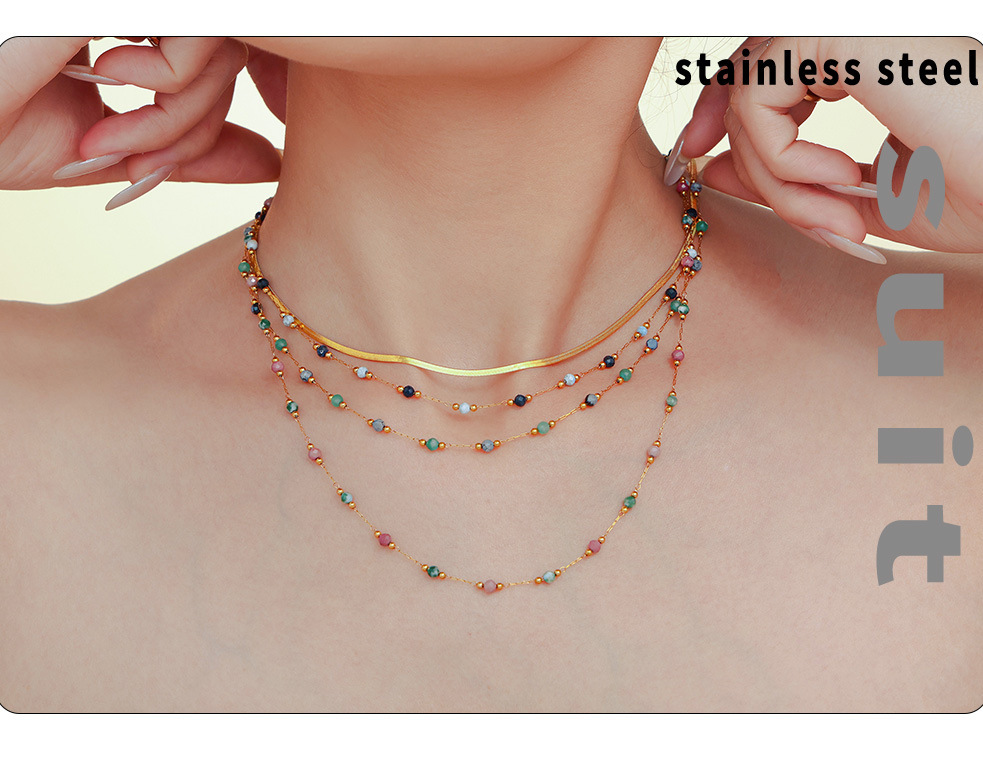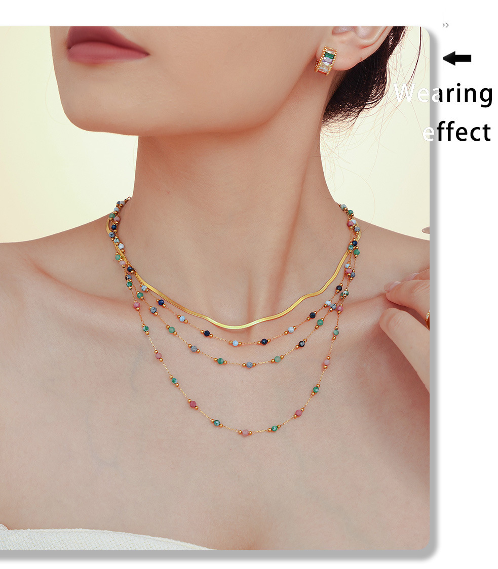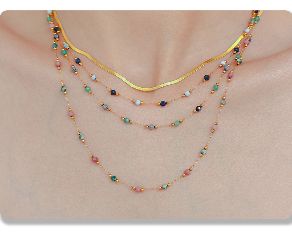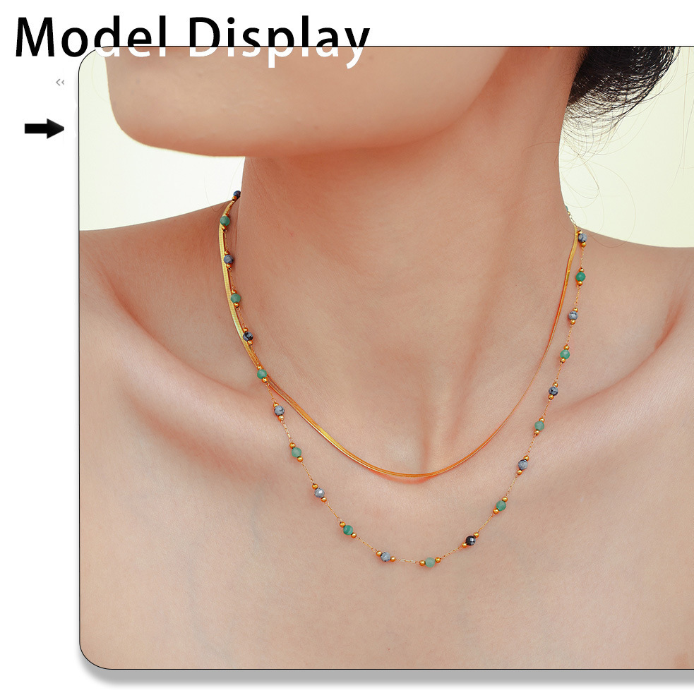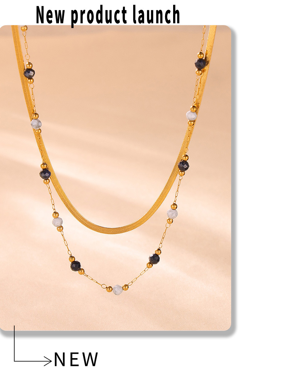 PVD Gold Plated Stainless Steel Double-Layer Necklace – Handmade Lapis Lazuli Beaded Choker