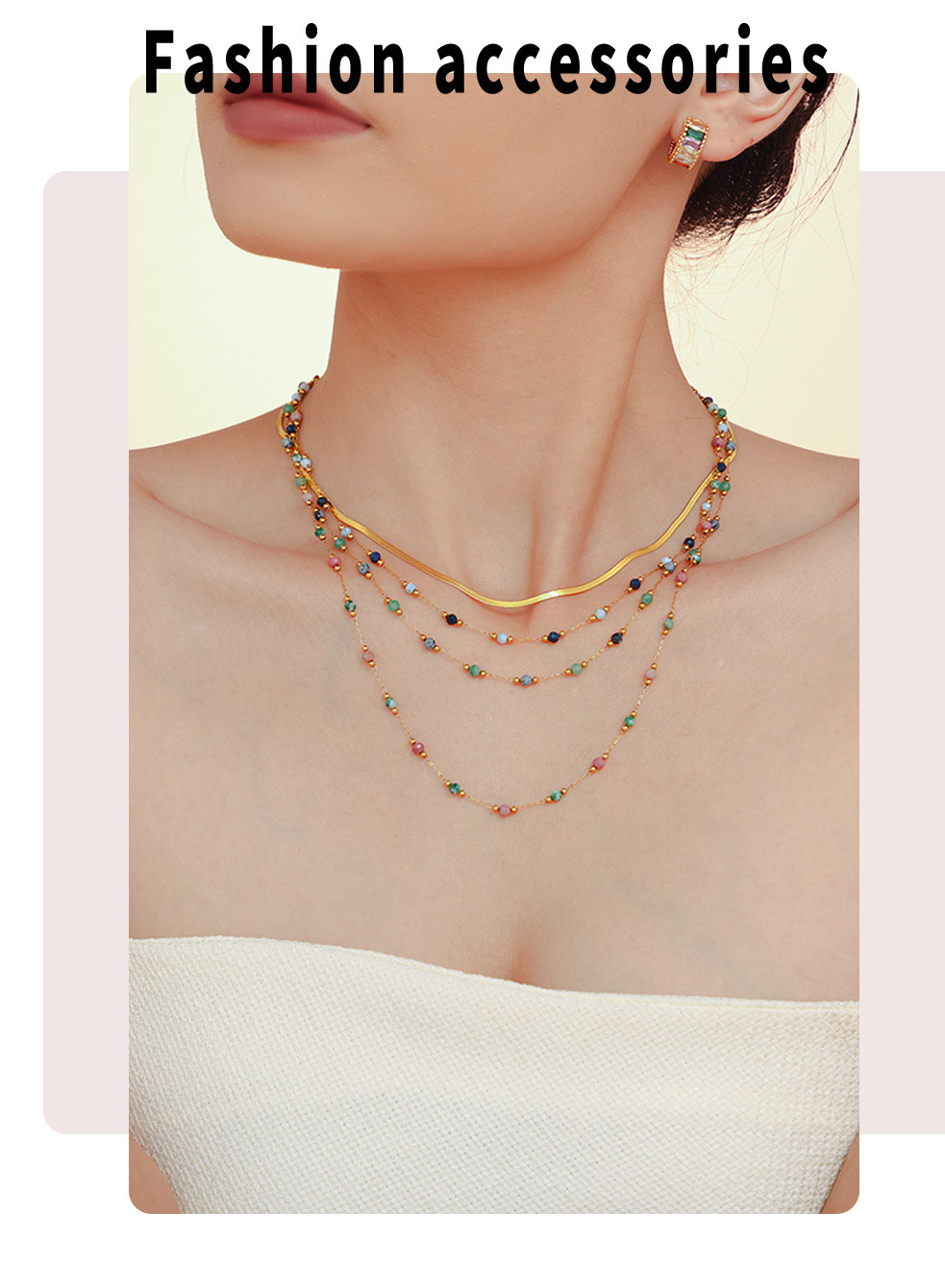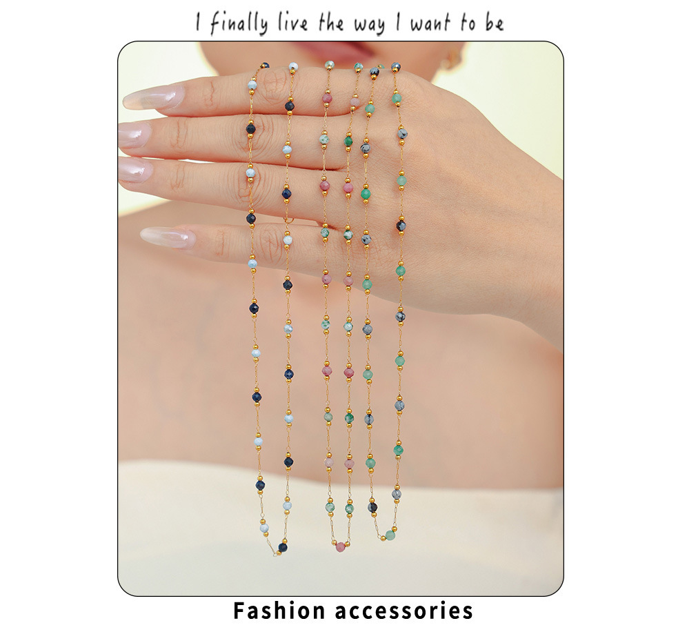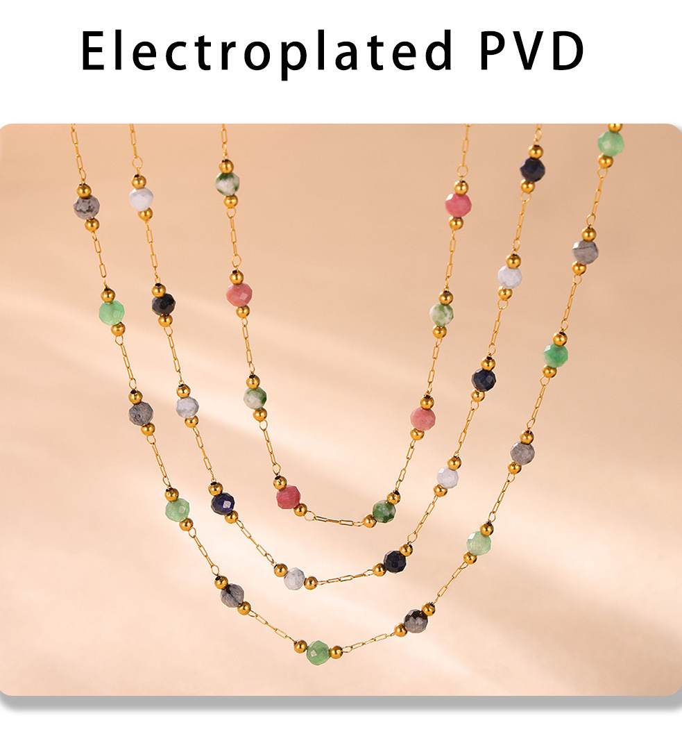 This elegant double-layer necklace features handmade lapis lazuli beads, adding a pop of color to your look. Crafted from durable stainless steel and plated with PVD gold, it’s perfect for layering or wearing alone. A unique, versatile accessory that’s great for both casual and special occasions.