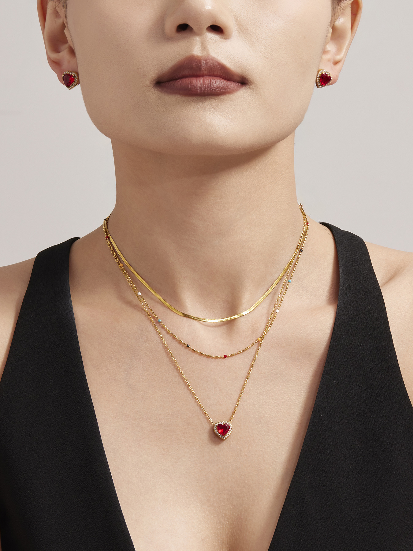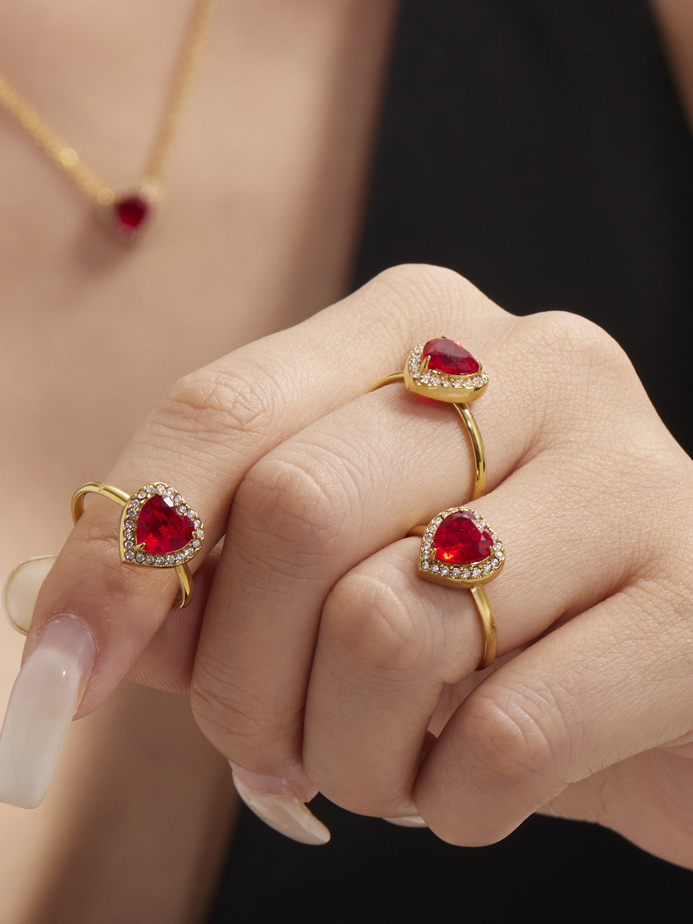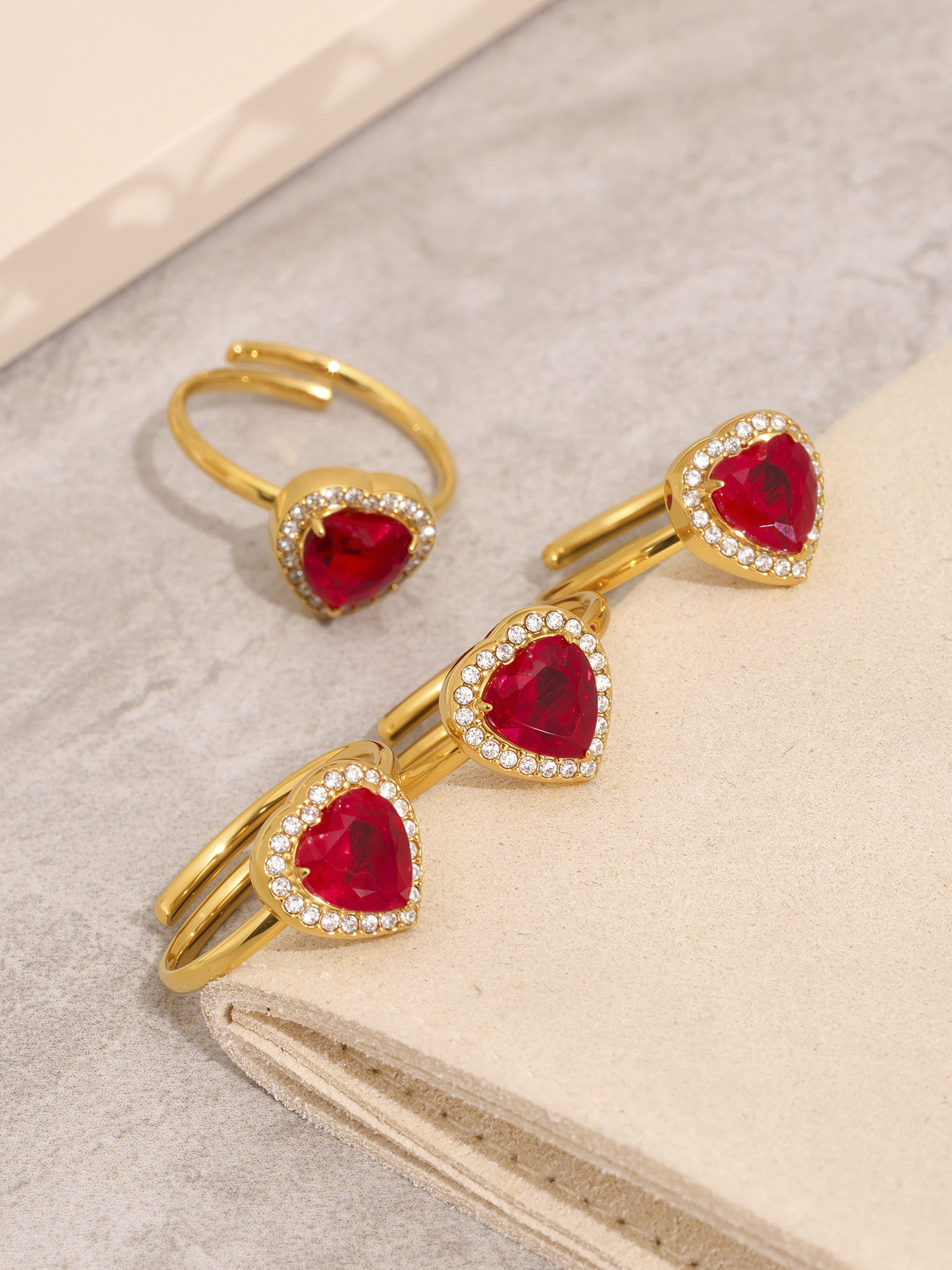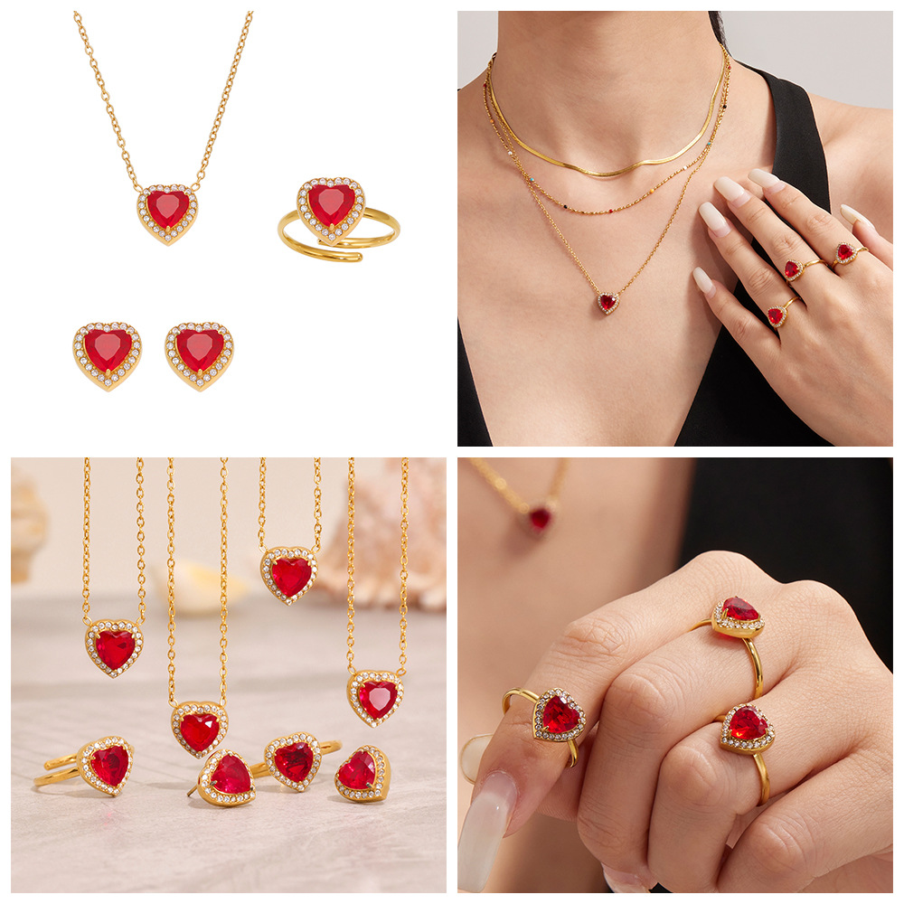 Turn heads with this ultra-sparkling jewelry set featuring a full-crystal “starry” shine and a vivid red zircon heart design. Crafted from high-quality stainless steel with 18K gold plating, it’s durable, tarnish-resistant, and beautifully eye-catching.