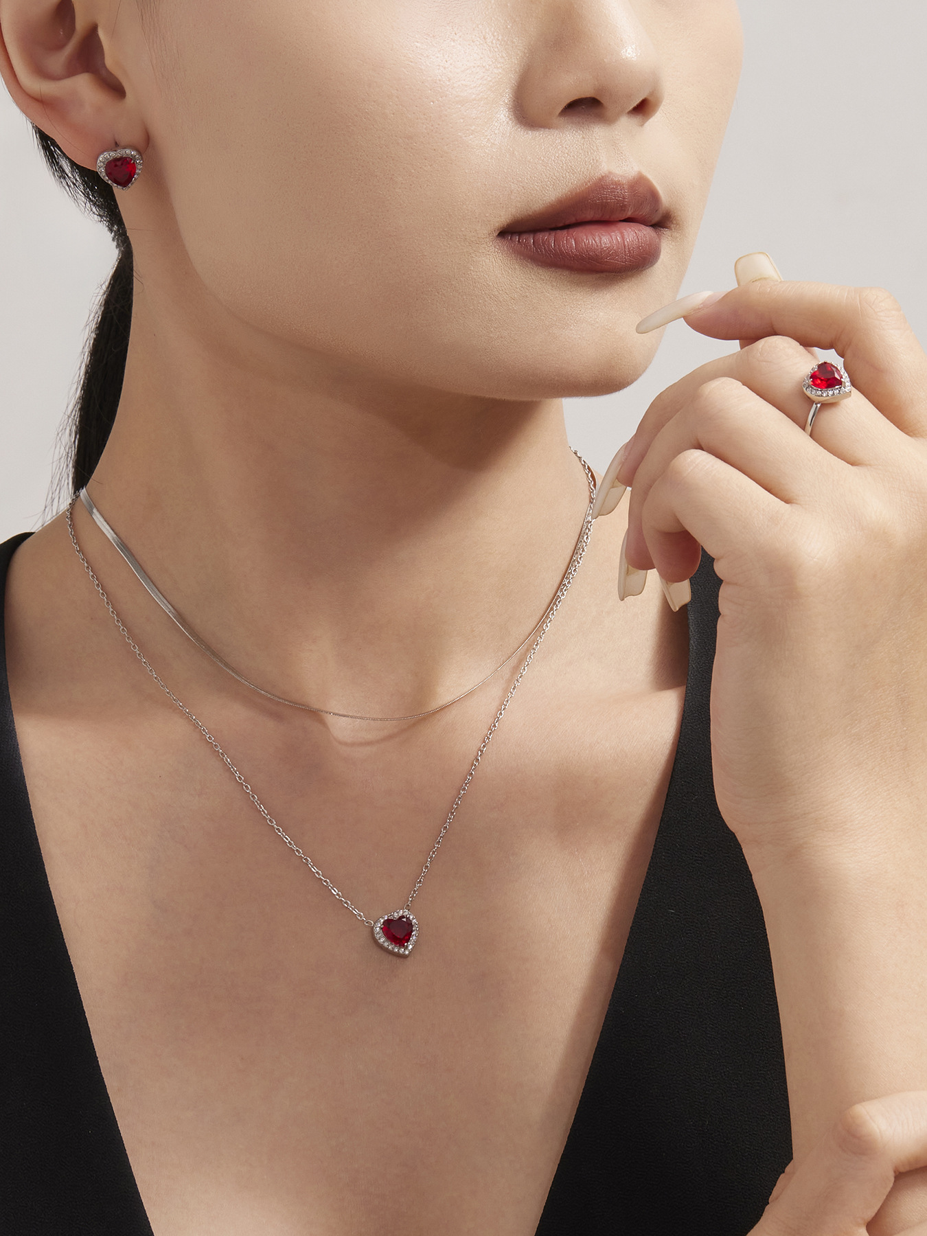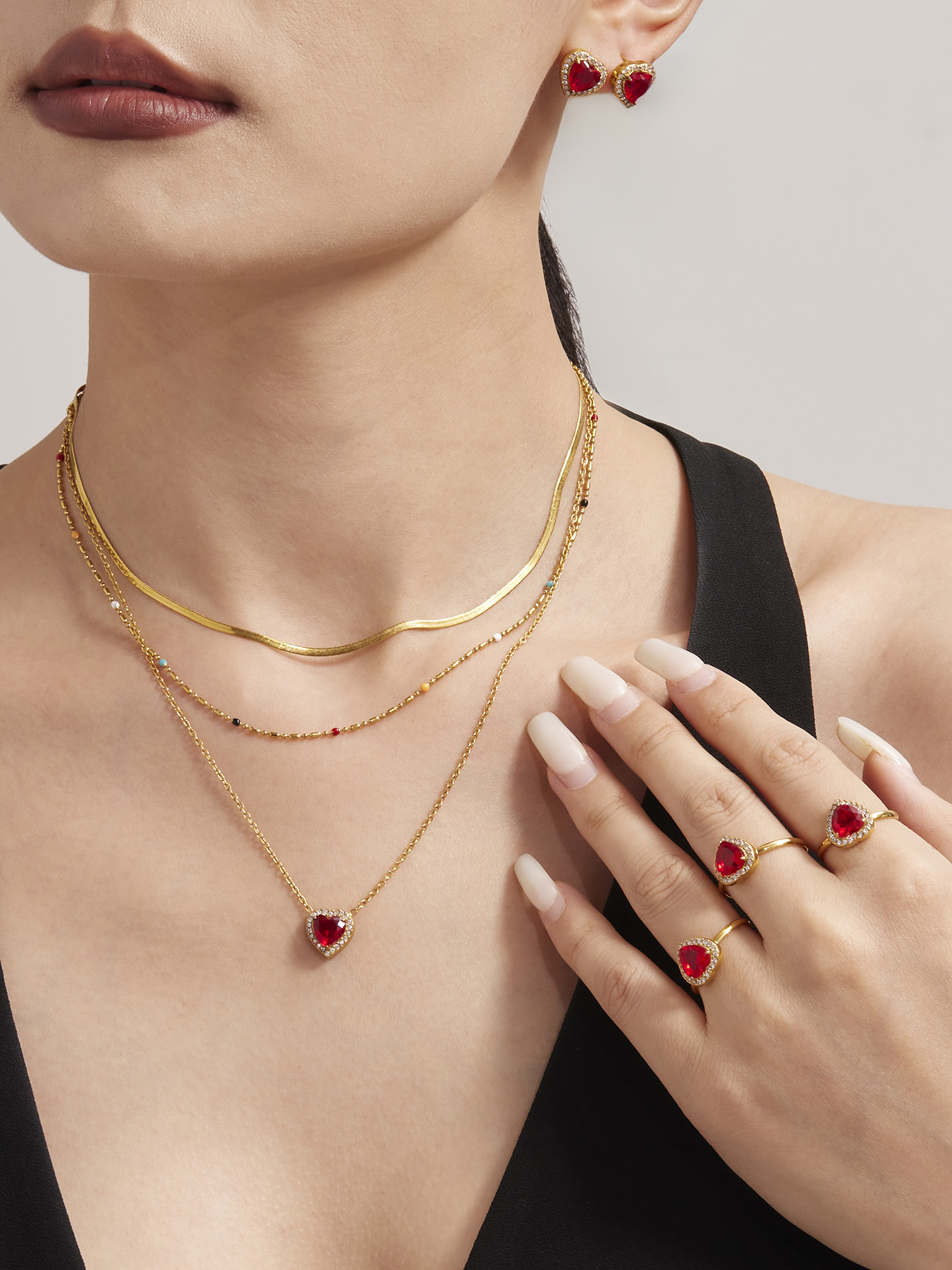 The matching necklace, earrings, and ring bring a romantic yet elegant vibe—perfect for date nights, gifts, or adding a bold pop of color to your everyday style.