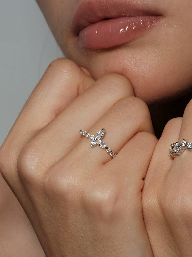 S925 Sterling Silver Butterfly Ring – D Color Moissanite Diamond, Dainty Minimalist Jewelry