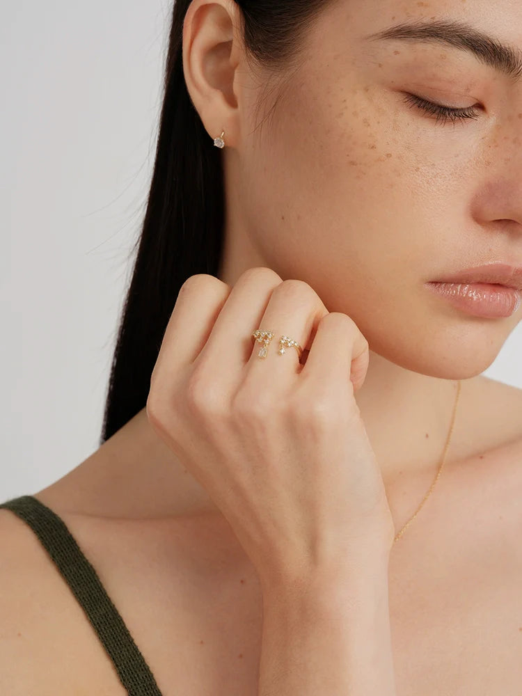 Elegant S925 sterling silver ring featuring a French-inspired chandelier design with hollow detailing, square-cut crystals, and sparkling cubic zirconia. Minimalist yet luxurious, perfect for stacking or making a statement. A chic, high-quality gift for birthdays, anniversaries, or special occasions.