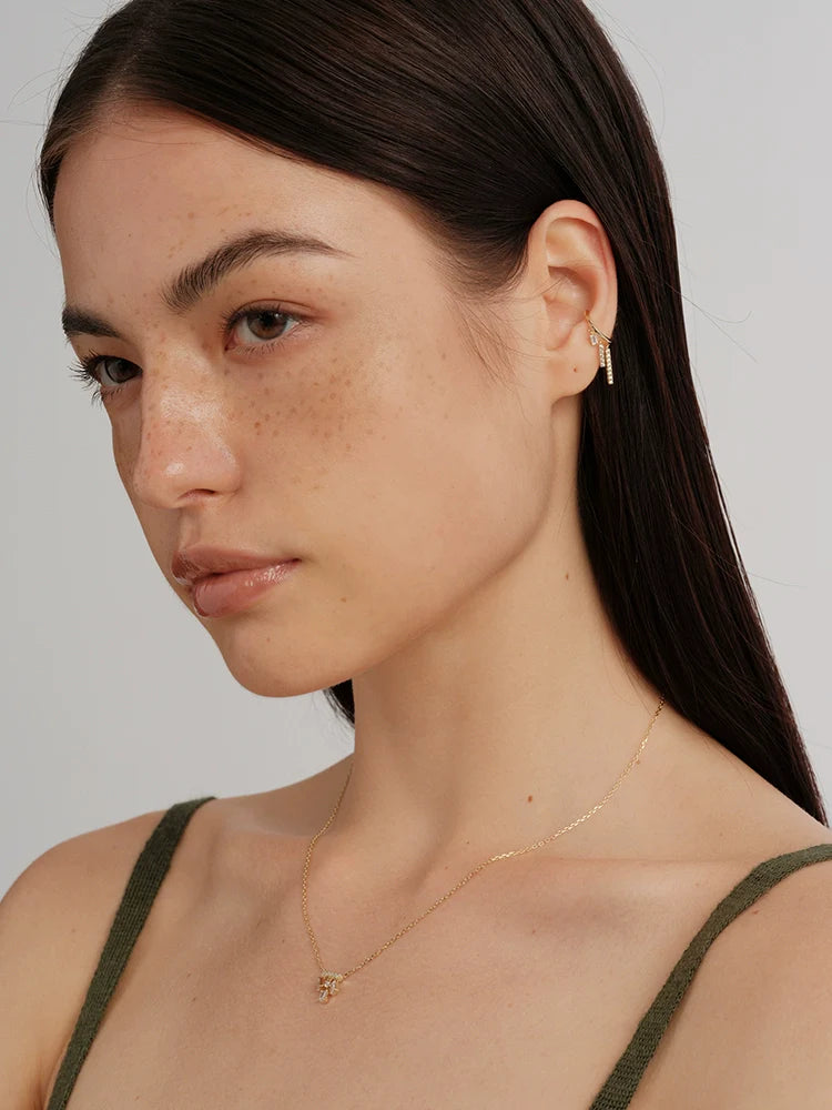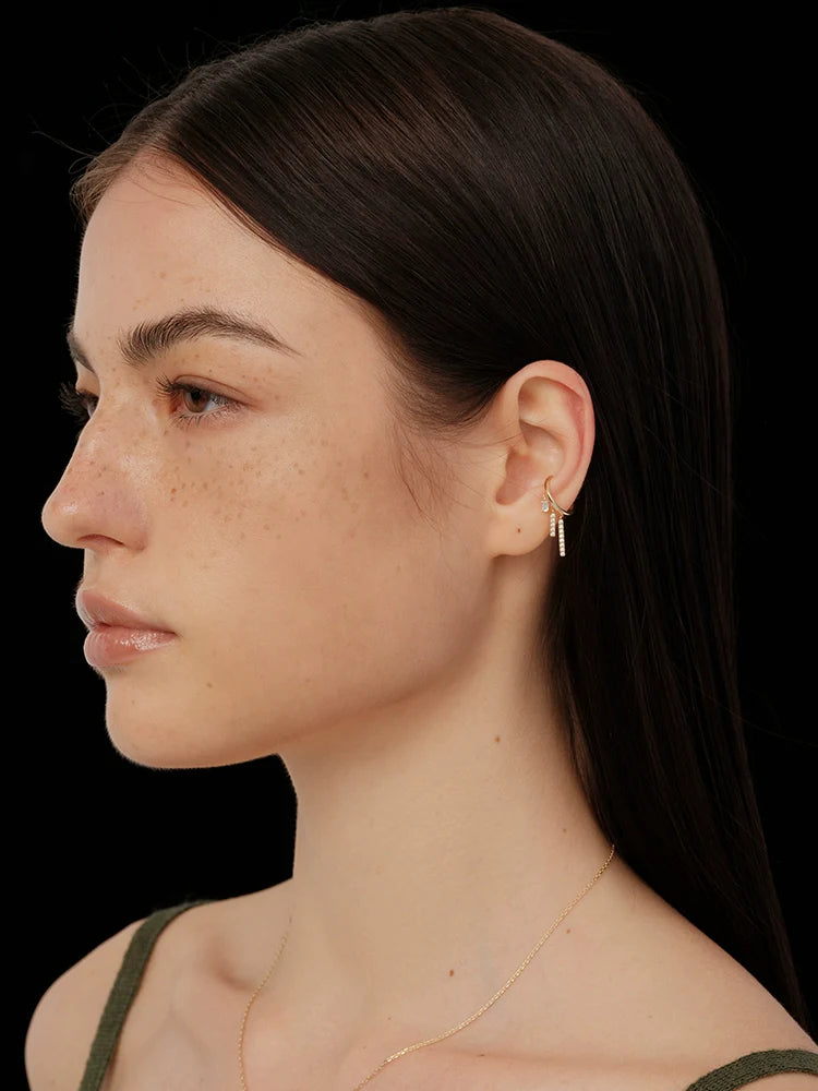 S925 Sterling Silver French Mini Chandelier Tassel Earrings – Crystal Waterfall Ear Cuffs