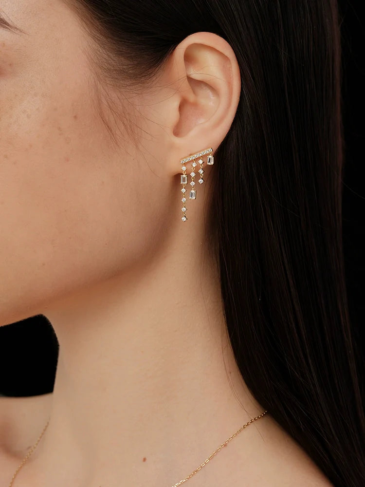 S925 Sterling Silver French Mini Chandelier Tassel Earrings – Crystal Rainfall Square-Cut Design