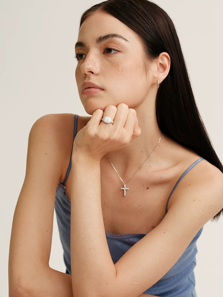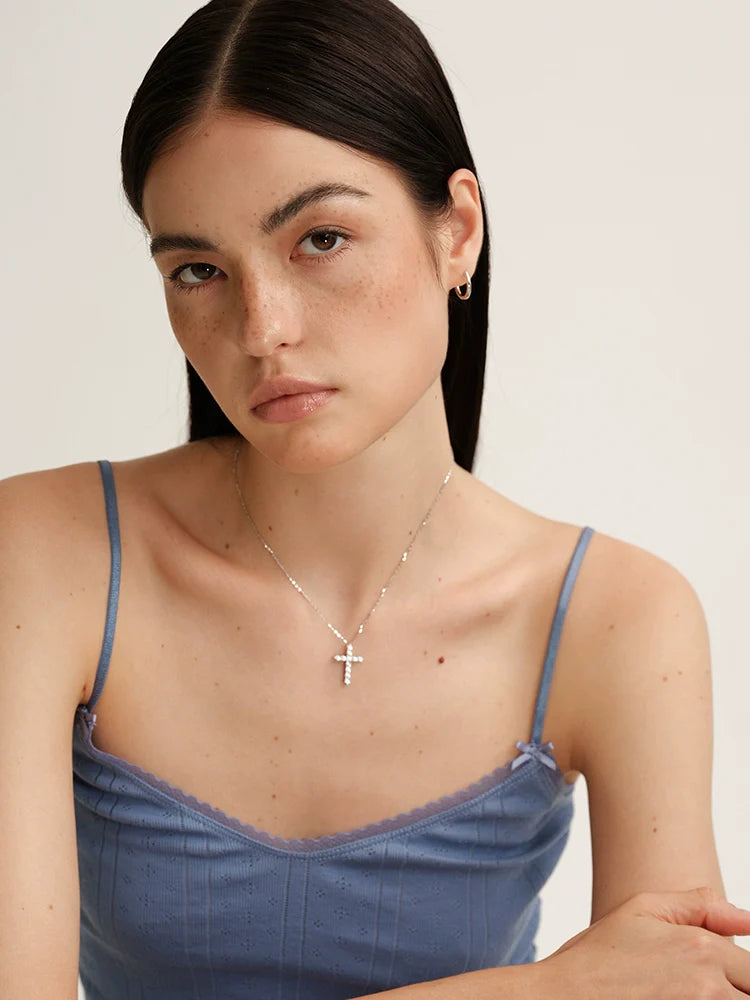 S925 Sterling Silver High-Carbon Moissanite Cross Pendant Necklace – Minimalist Luxe Jewelry