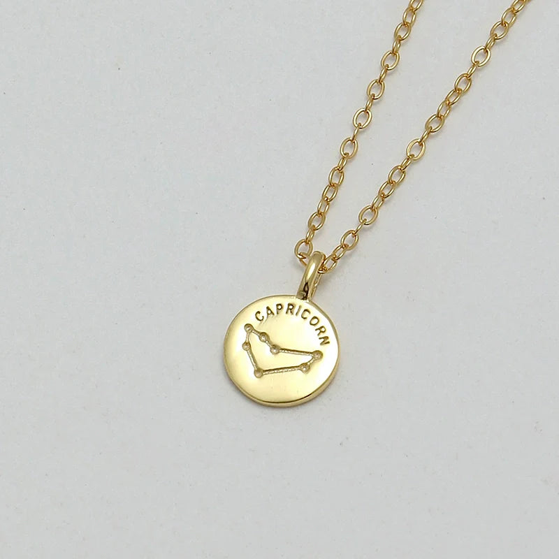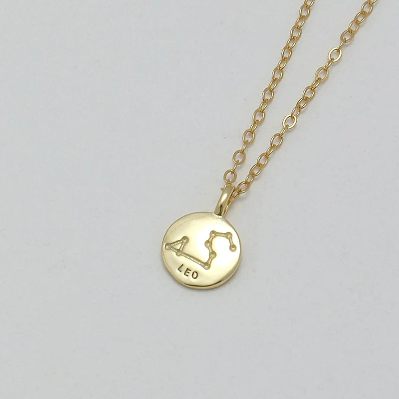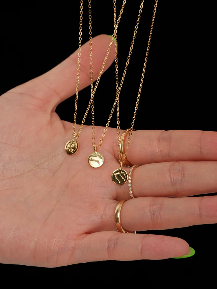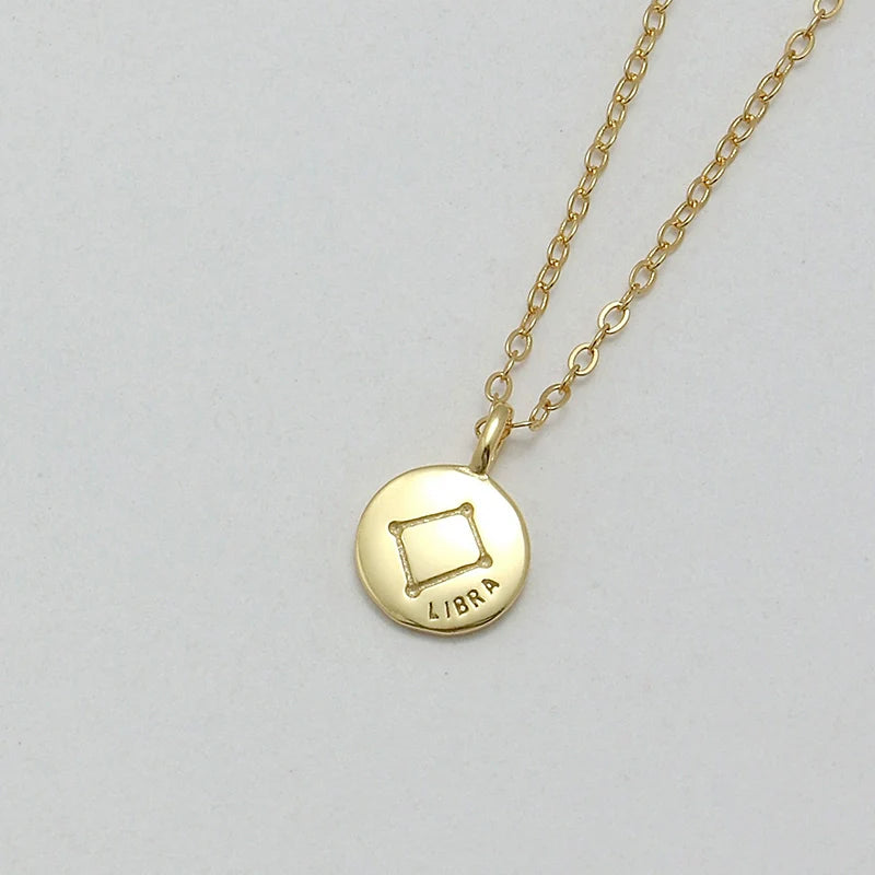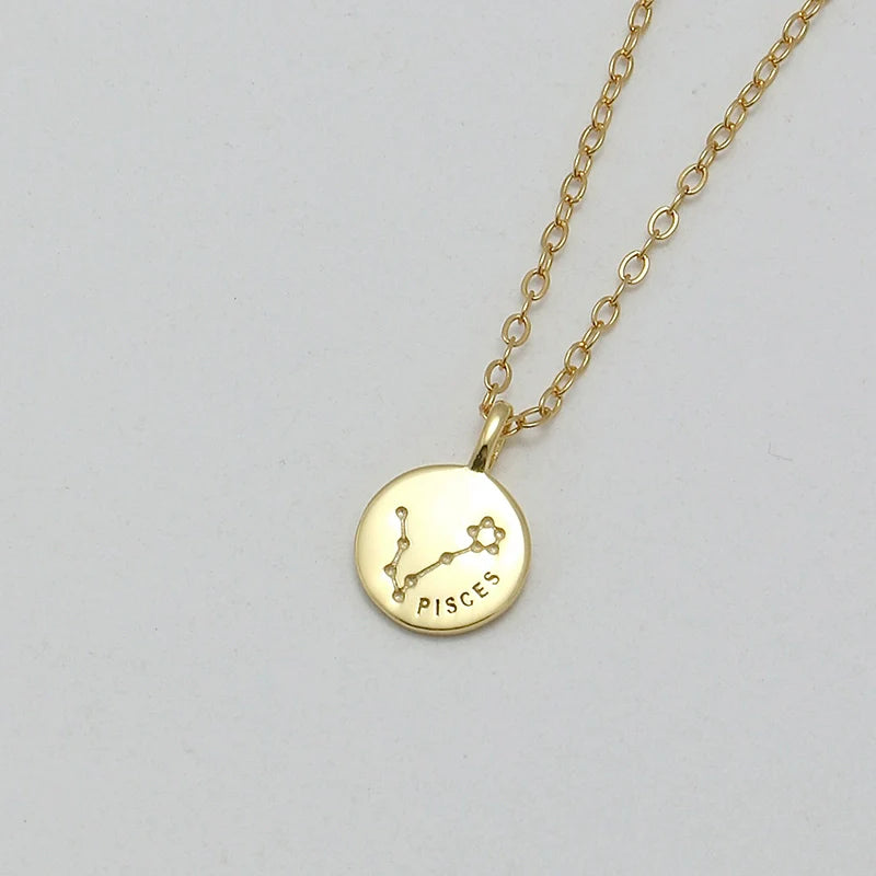 S925 Sterling Silver Mini Coin Zodiac Pendant Necklace – Lucky Star Collier