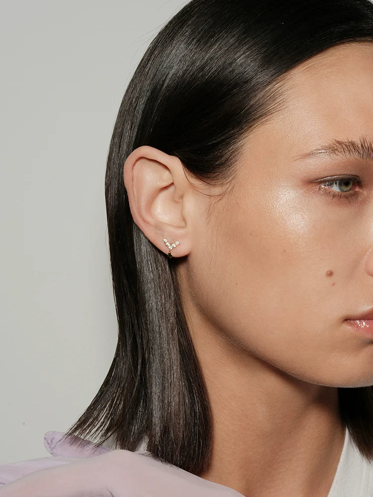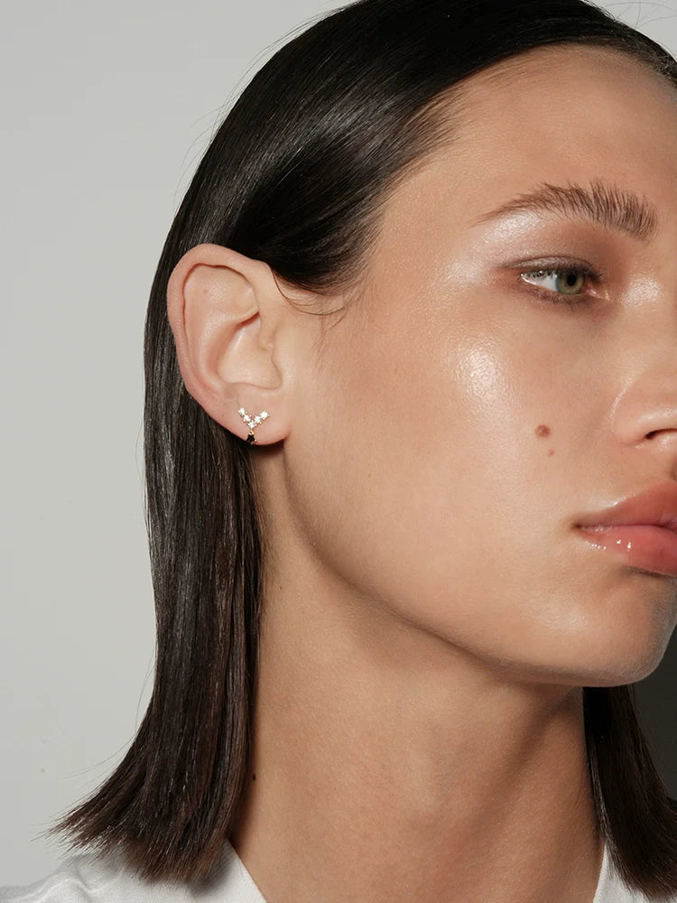 Delicate S925 sterling silver earrings featuring a mini V-shaped star pendant with sparkling micro pavé cubic zirconia. Lightweight, elegant, and perfect for everyday wear or stacking. A charming, French-inspired gift for birthdays, holidays, or special occasions.