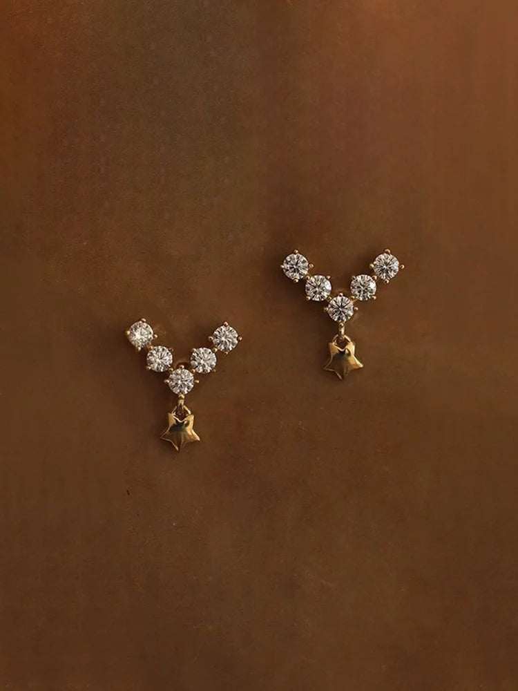 S925 Sterling Silver Mini V-Shaped Cubic Zirconia Star Drop Stud Earrings – French-Inspired Jewelry
