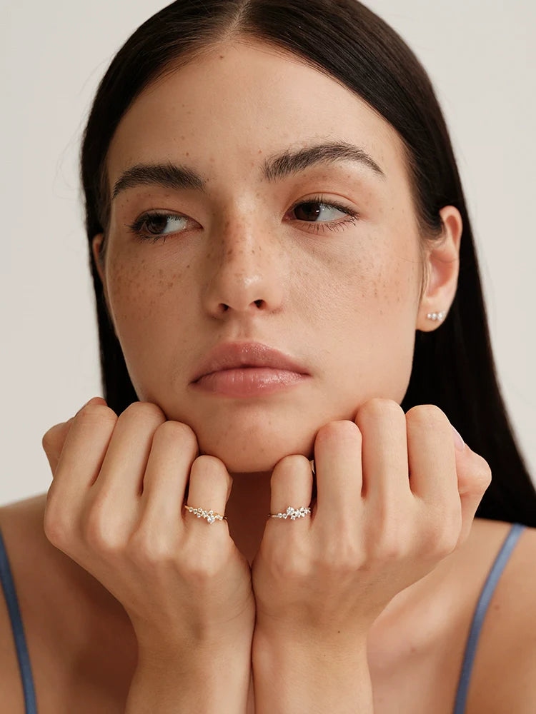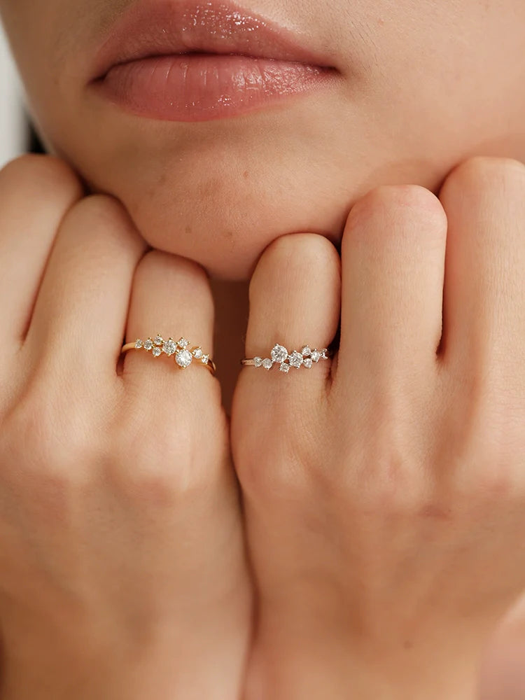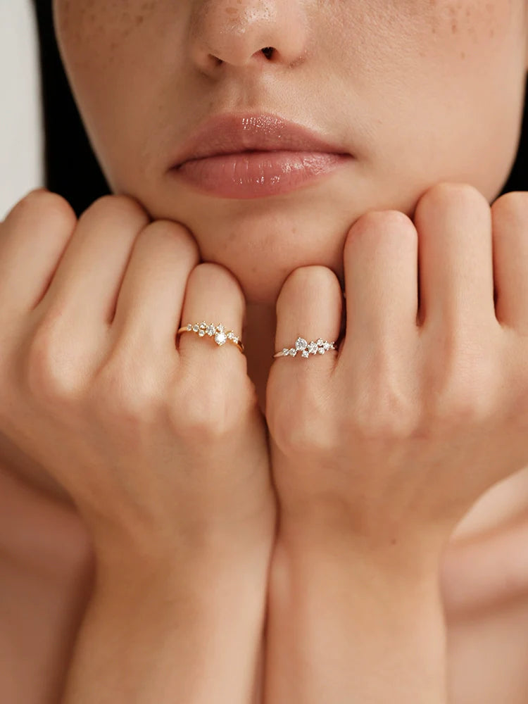 Delicate S925 sterling silver ring featuring intricate lace-inspired Moissanite detailing. Minimalist, elegant, and lightweight, perfect for stacking or everyday wear. A refined, French-inspired gift for birthdays, anniversaries, or special occasions.