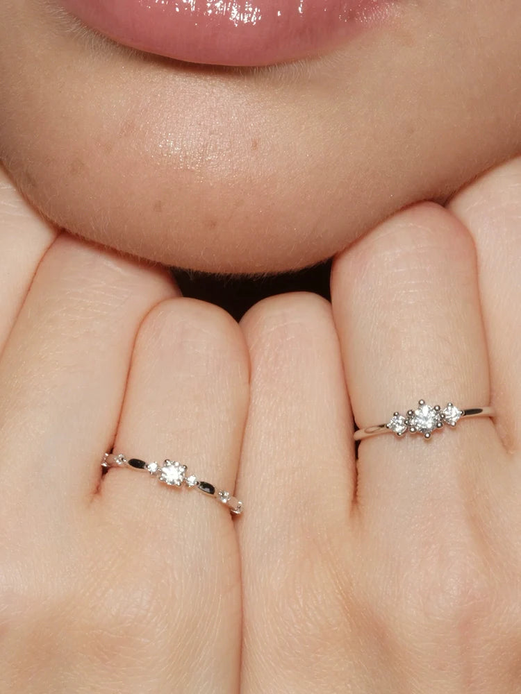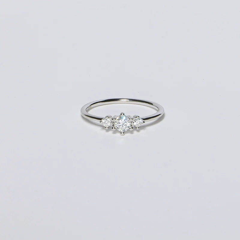 Elegant S925 sterling silver ring featuring a sparkling Moissanite stone for a minimalist, French-inspired look. Lightweight, versatile, and perfect for stacking or everyday wear. A refined, stylish gift for birthdays, anniversaries, or special occasions.