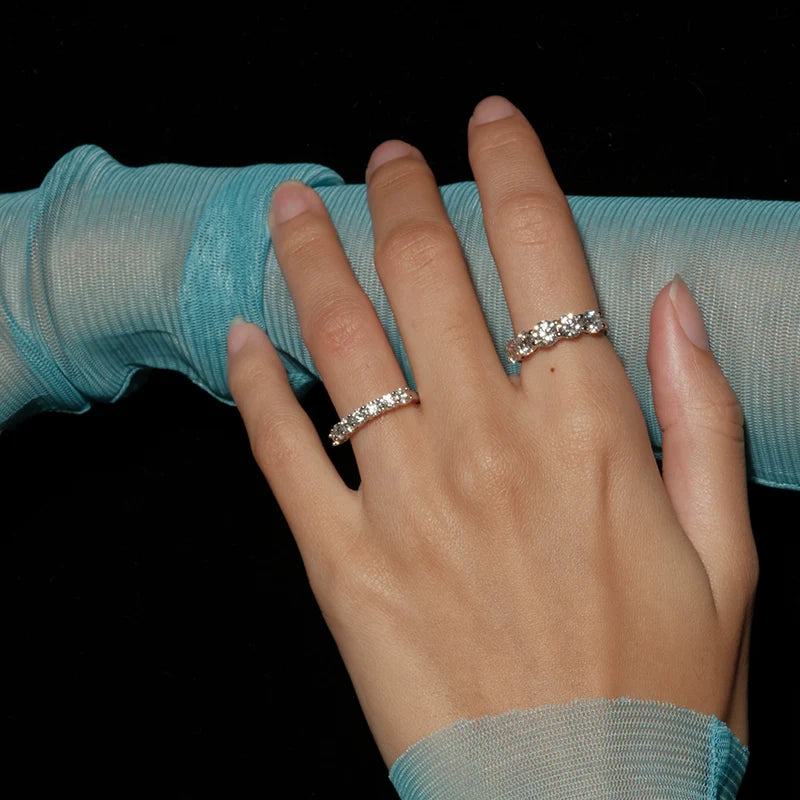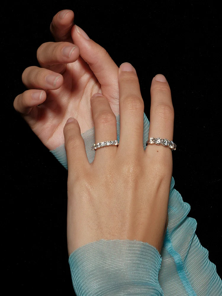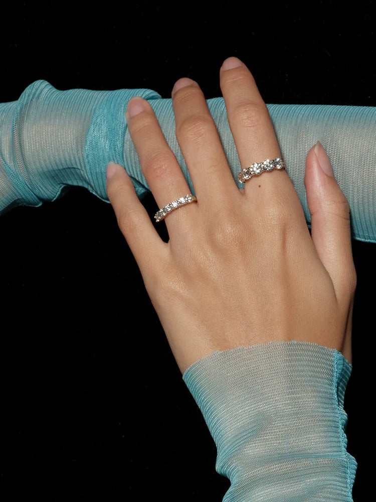 Elegant S925 sterling silver ring featuring sparkling Moissanite stones in a full pave design for a luxurious, high-end look. Minimalist, versatile, and perfect for stacking or everyday wear. A sophisticated gift for birthdays, anniversaries, or special occasions.