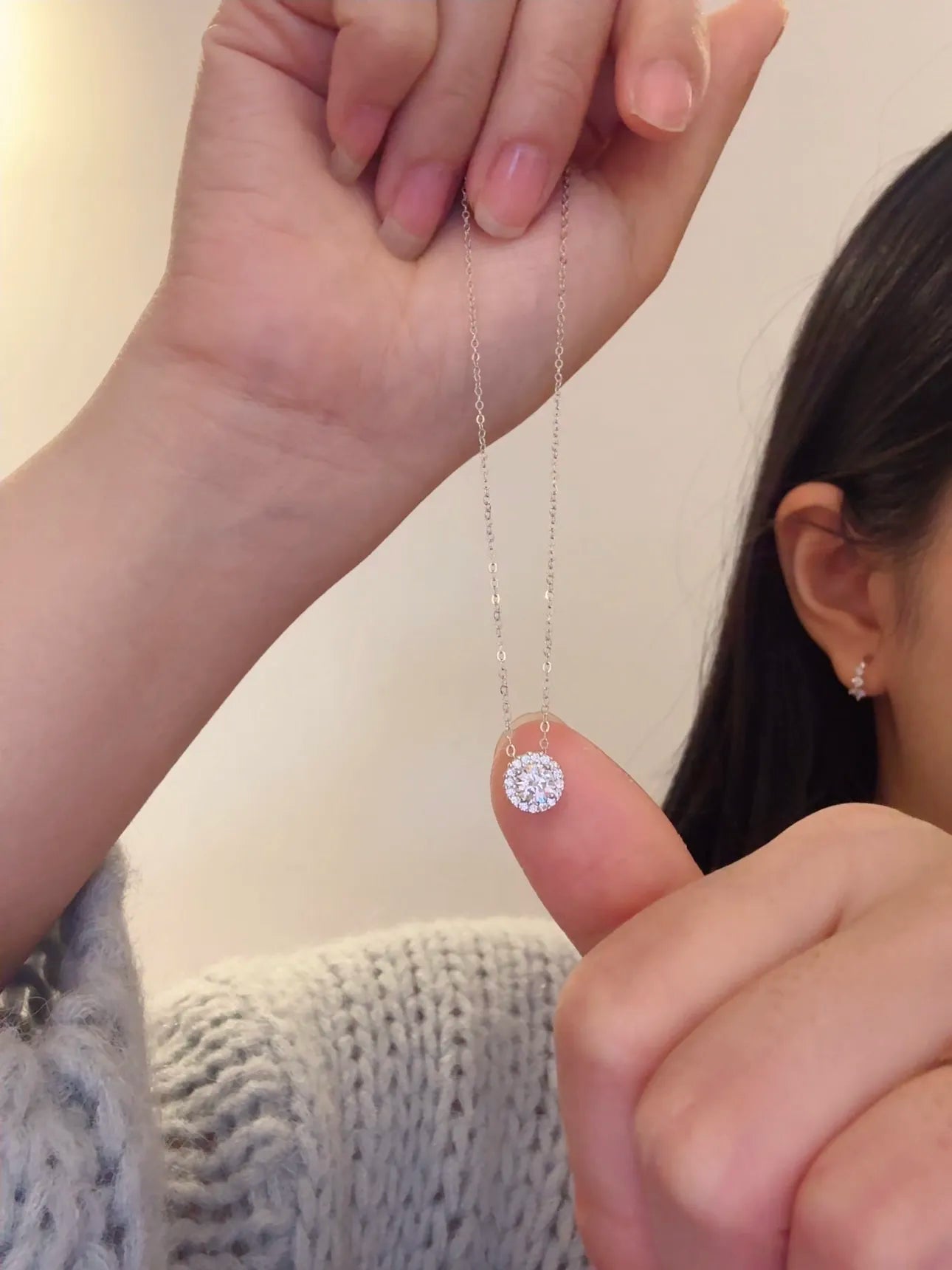 S925 Sterling Silver Round Pendant Necklace – Platinum Zircon Sparkling Dainty Chain for Women