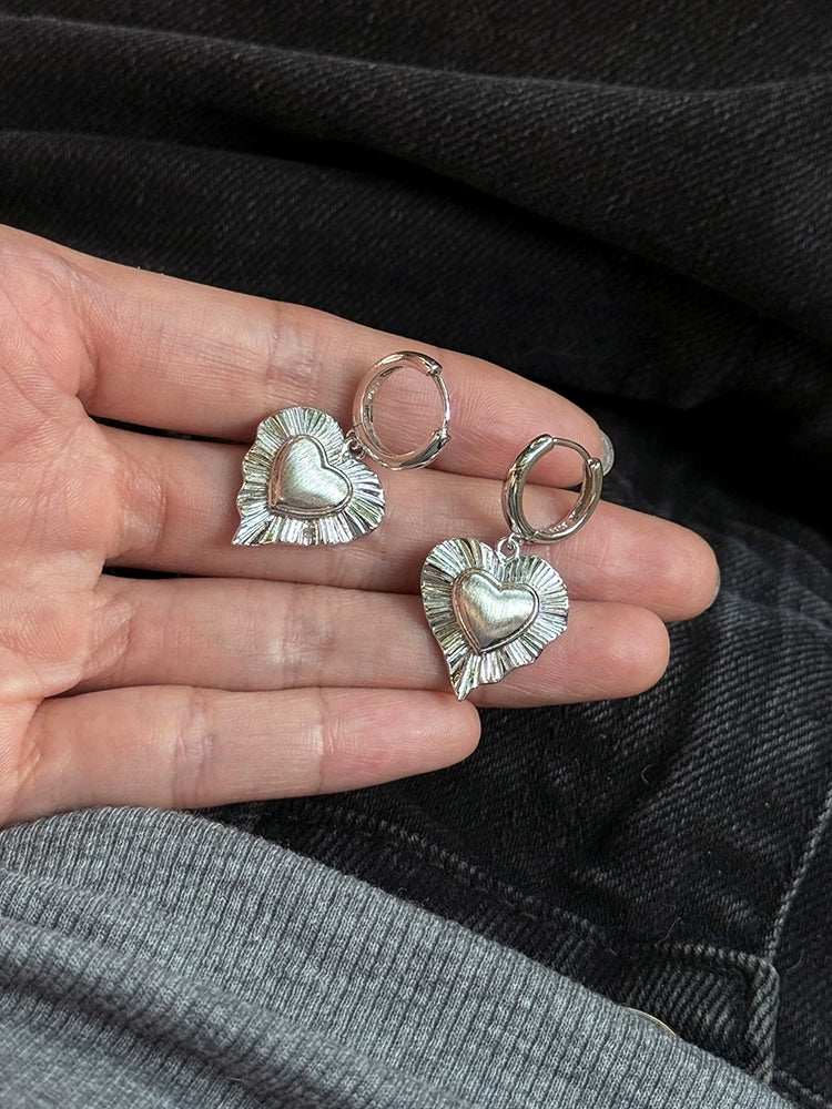 S925 Sterling Silver Textured 3D Heart Earrings – Minimalist Chic Jewelry