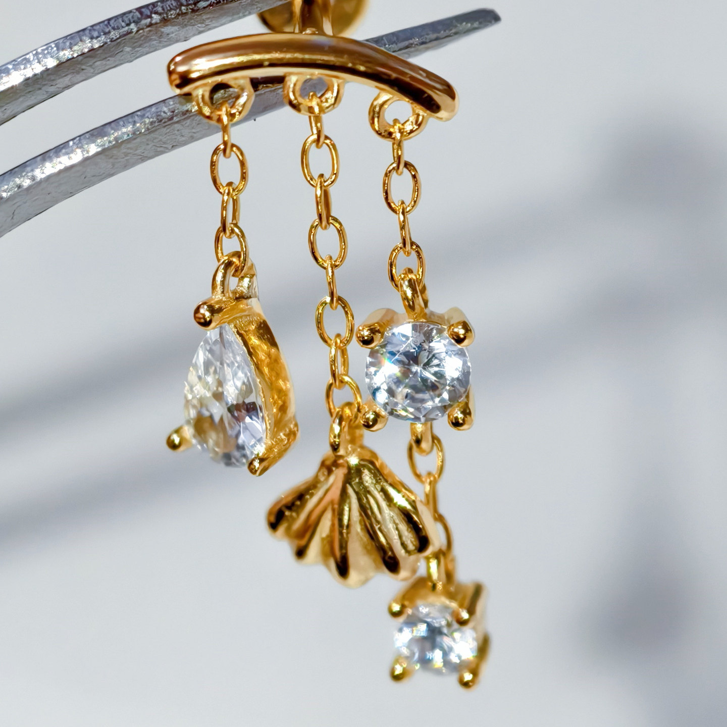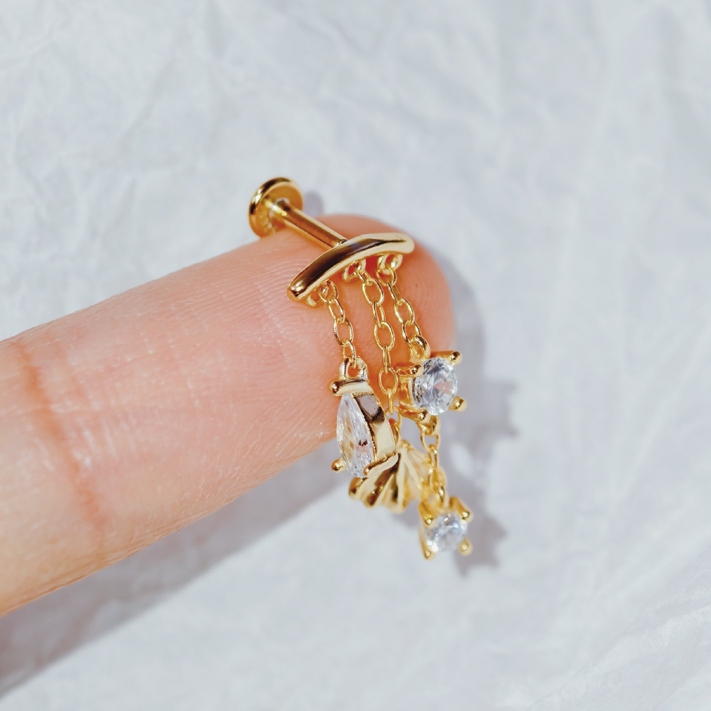 Shell Star Chain Cartilage Stud Sterling Silver