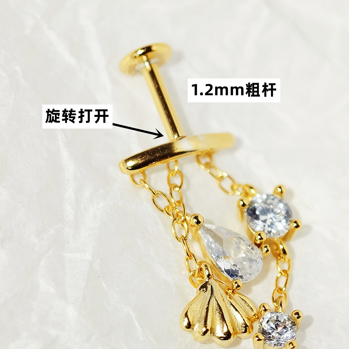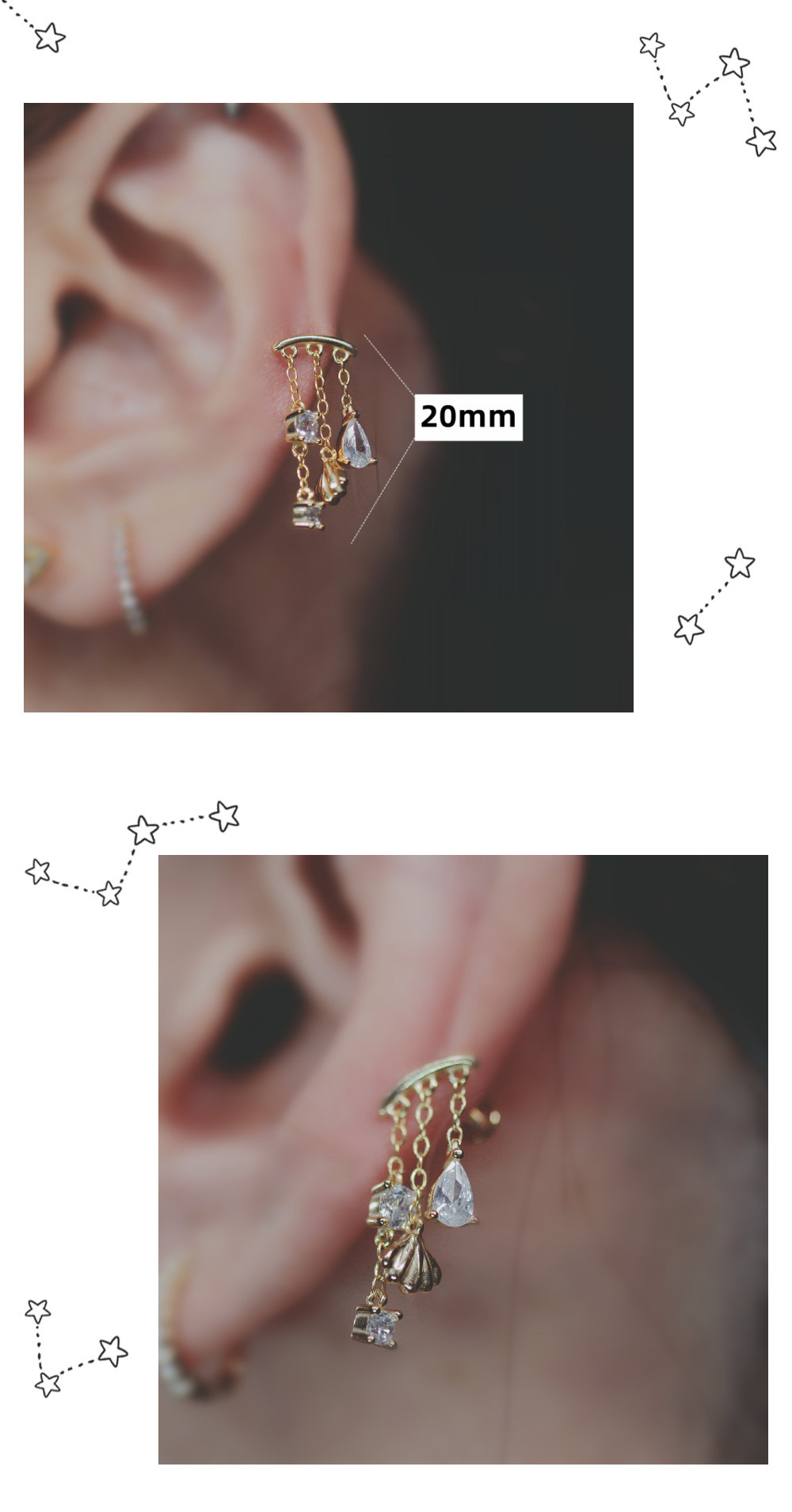Shell Star Chain Cartilage StudSterling Silver Star Chain Cartilage Stud Earring Dainty Shell Tassel Daith Helix Piercing Jewelry