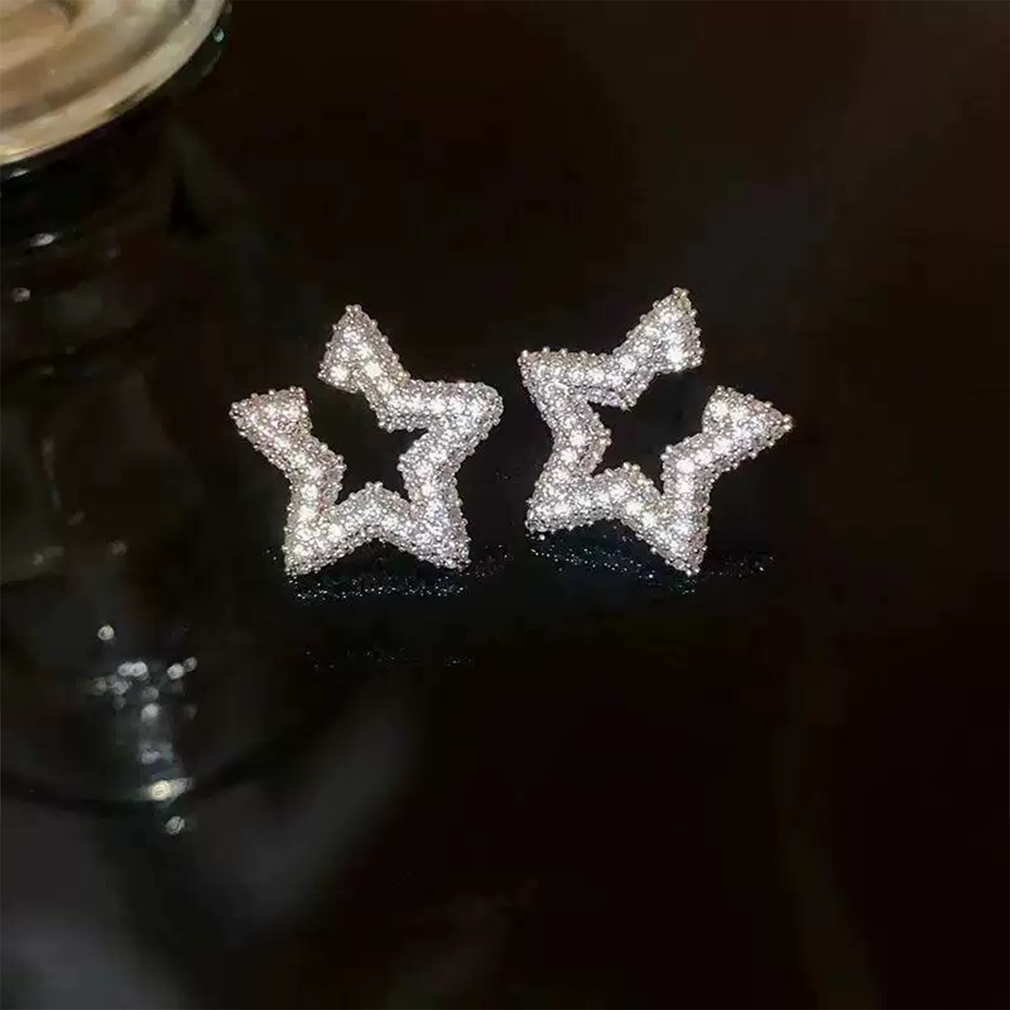 These Shining Star silver earrings feature a bold five-pointed star design accented with sparkling crystal details, blending sweet-cool aesthetics with a modern, edgy touch. Inspired by unique designer jewelry, they offer a refined yet playful statement that stands out effortlessly. Lightweight and eye-catching, these earrings are perfect for everyday styling, weekend outfits, travel looks, and casual gatherings, while also adding a subtle sparkle to parties and evening occasions. A distinctive accessory for those who love retro-inspired details, star motifs, and contemporary fashion jewelry with personality.