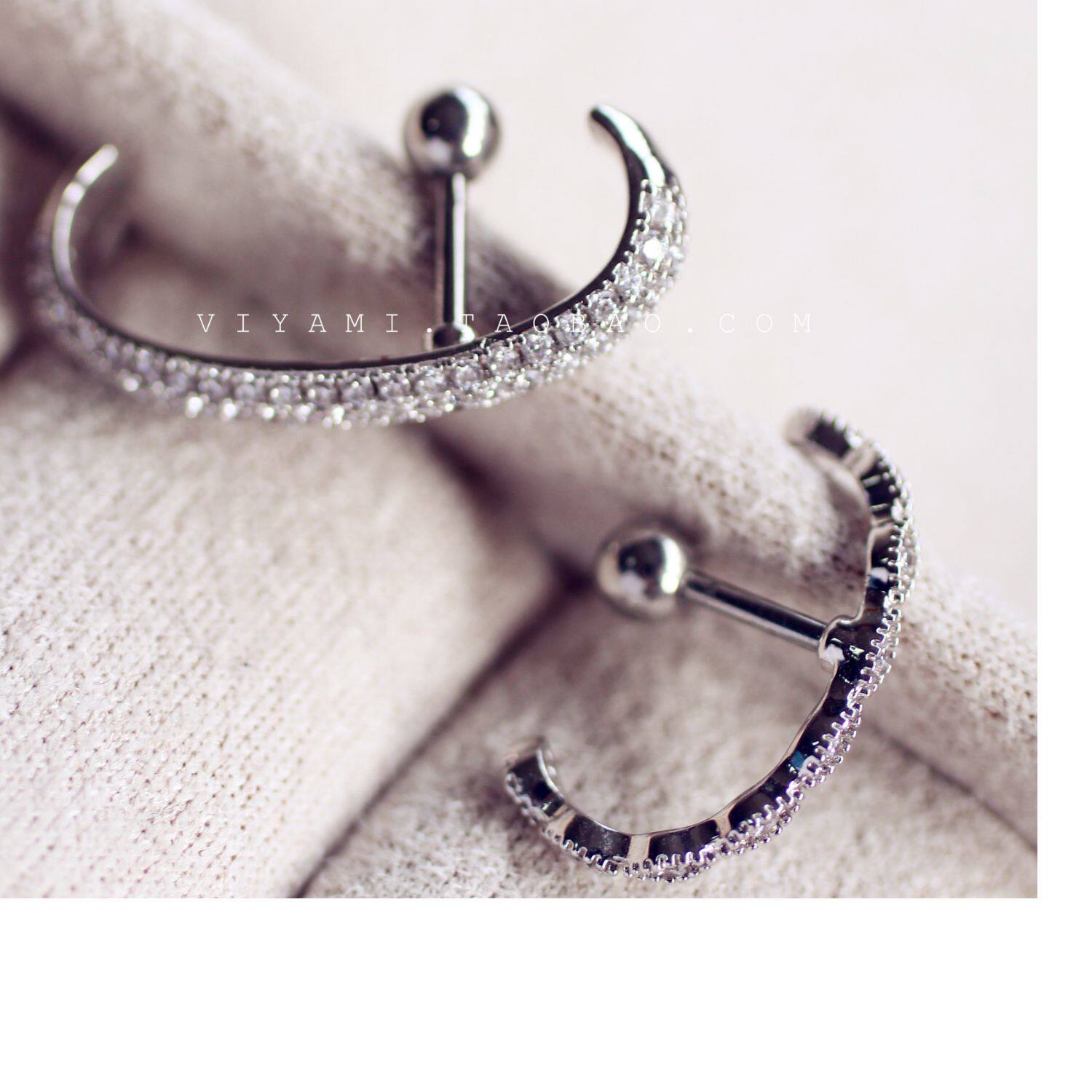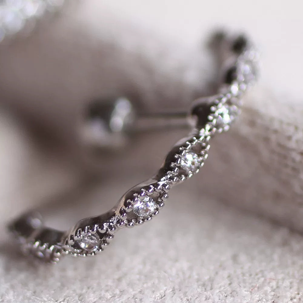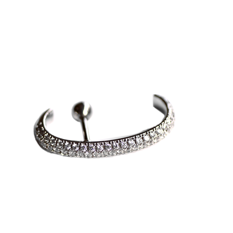 Sleep-Friendly Pavé C-Shaped Ear Stud in 925 Sterling Silver, Minimalist Helix Jewelry