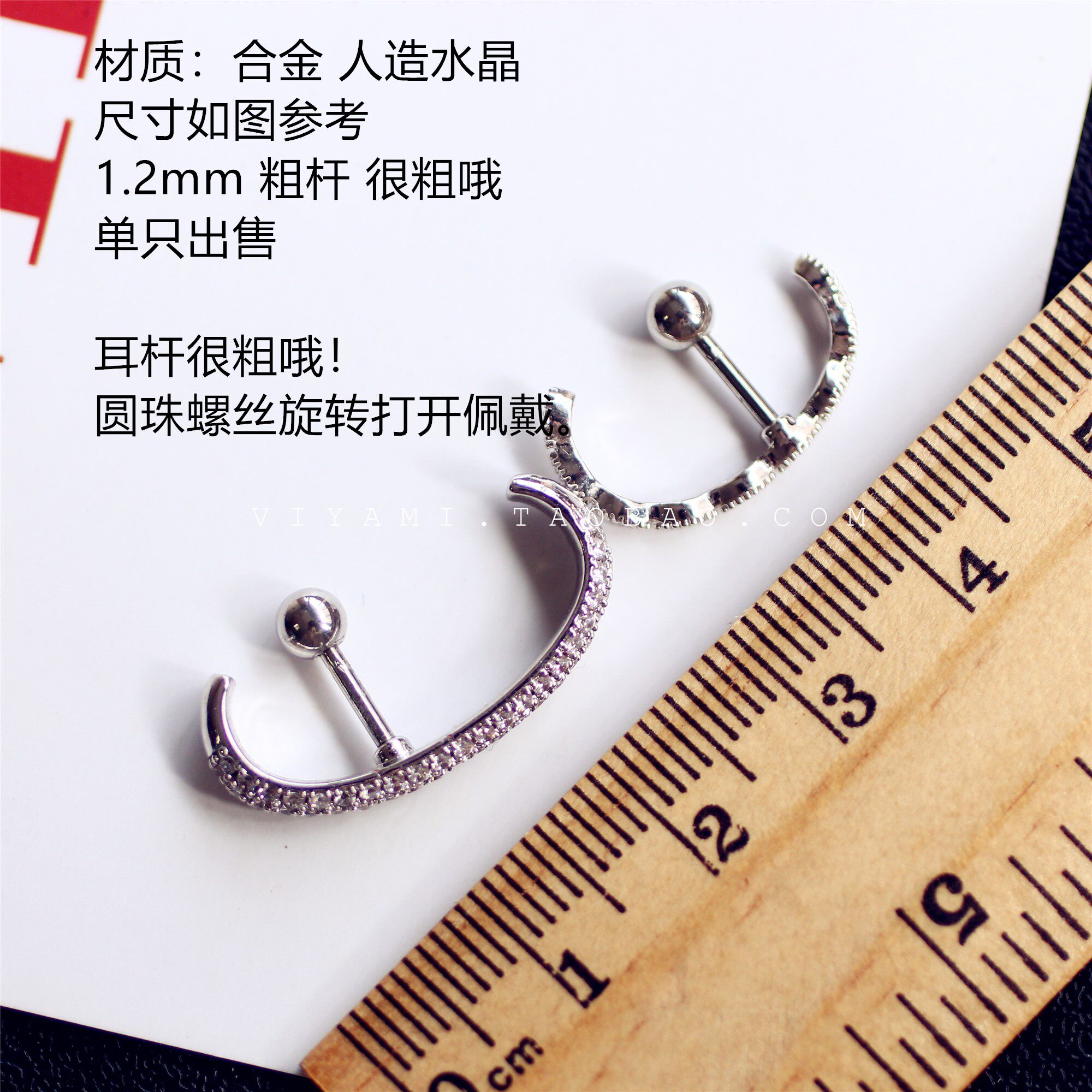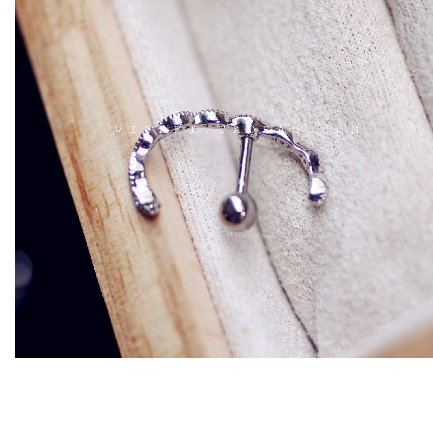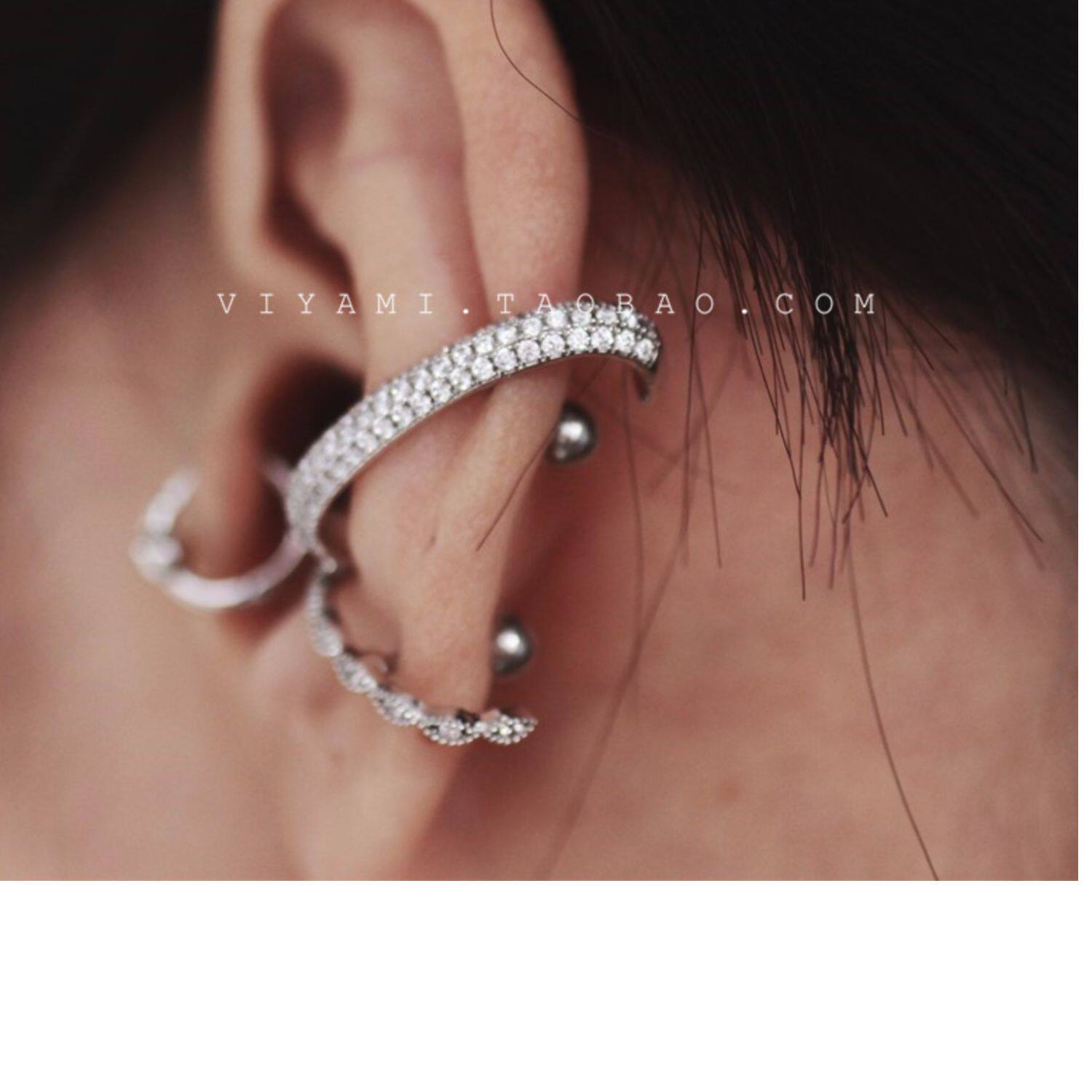 Sleep-Friendly Pavé C-Shaped Ear Stud in 925 Sterling Silver, Minimalist Helix Jewelry