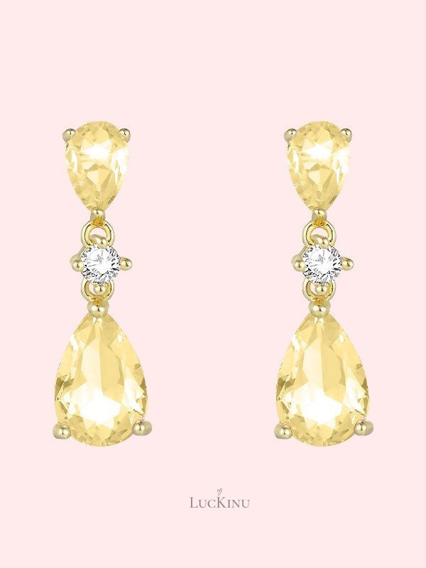 Pink & Yellow Zircon Teardrop Earrings – Elegant Everyday Jewelry