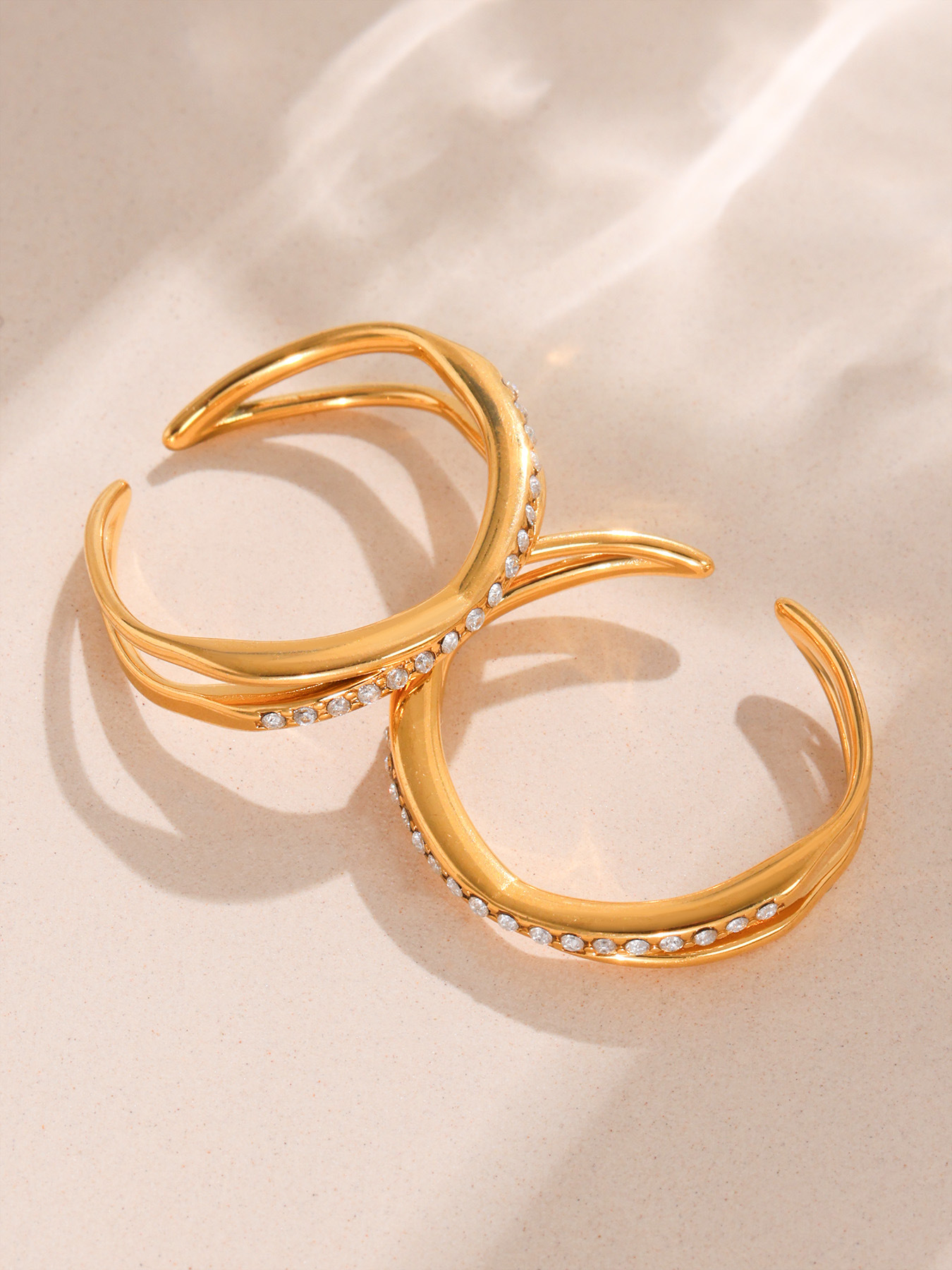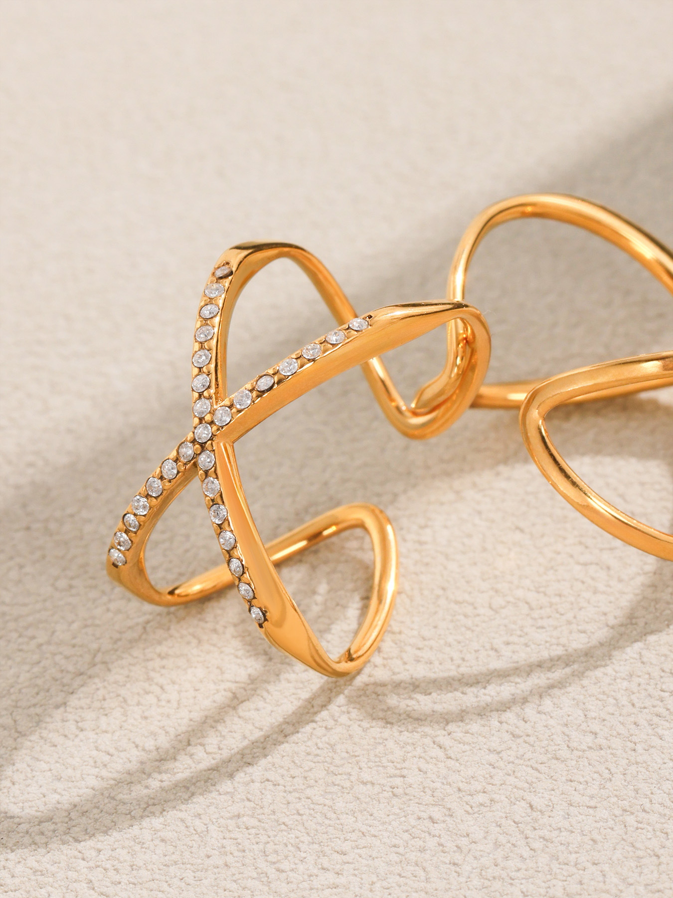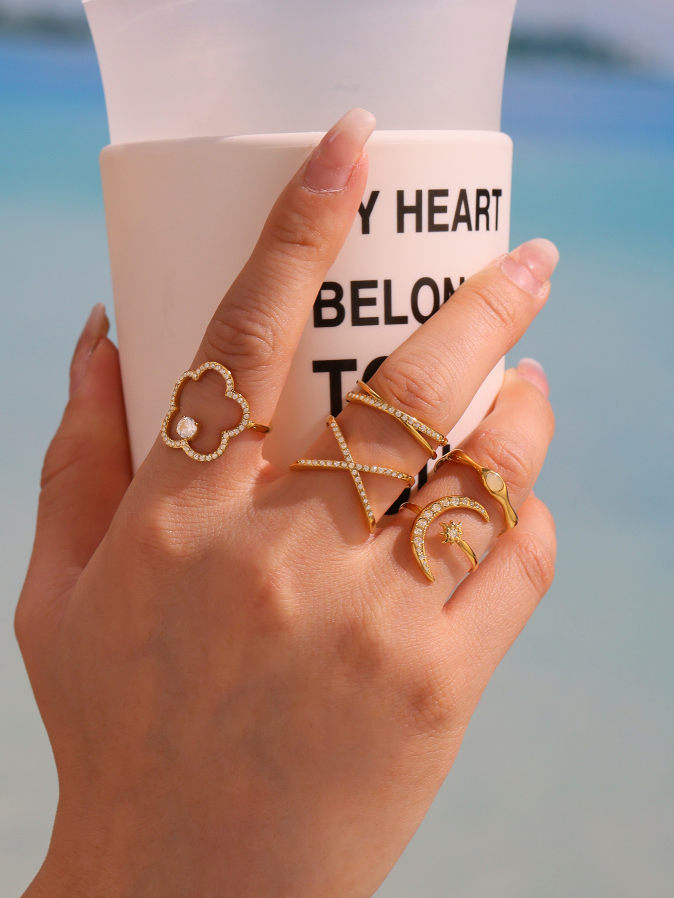 Make a statement with this stainless steel geometric ring featuring sparkling 5A cubic zirconia stars and moon design. Trendy, unique, and durable, perfect as a fashion-forward accessory or gift.