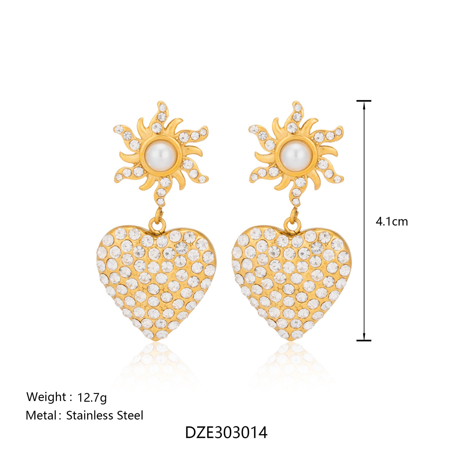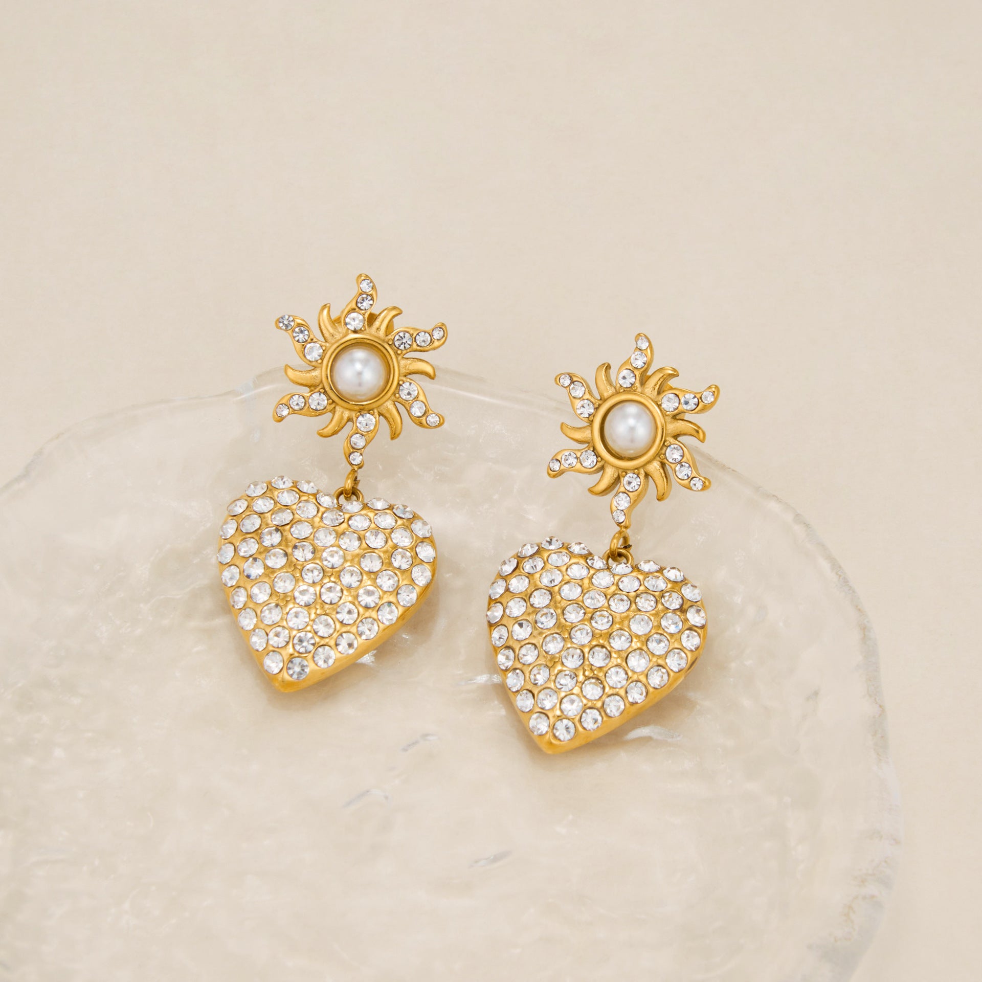 18K Vacuum-Plated Stainless Steel Sun Earrings – Sparkling Luxe Heart Pendant Studs