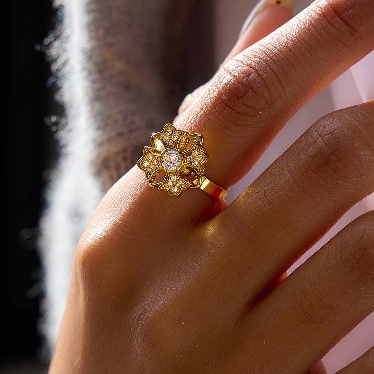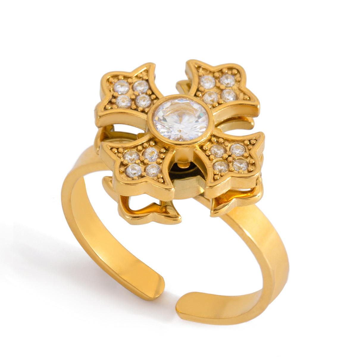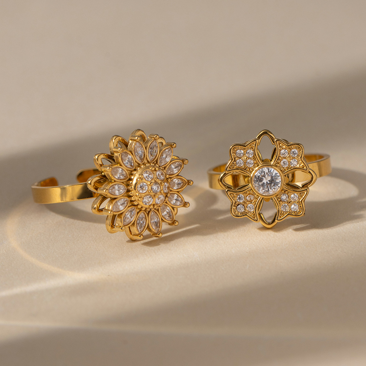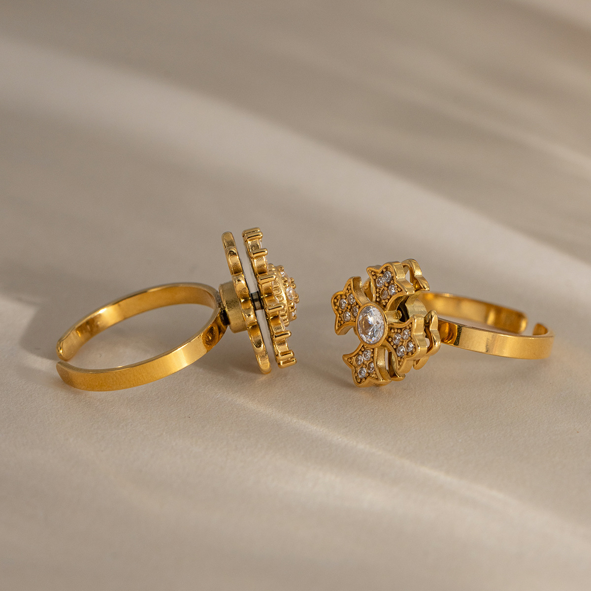 18K Gold Plated Stainless Steel Spinning CZ Ring – Adjustable Unique Fidget Band