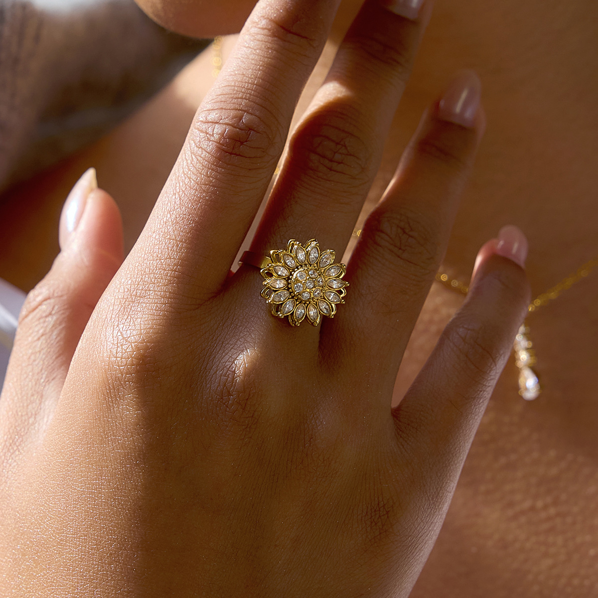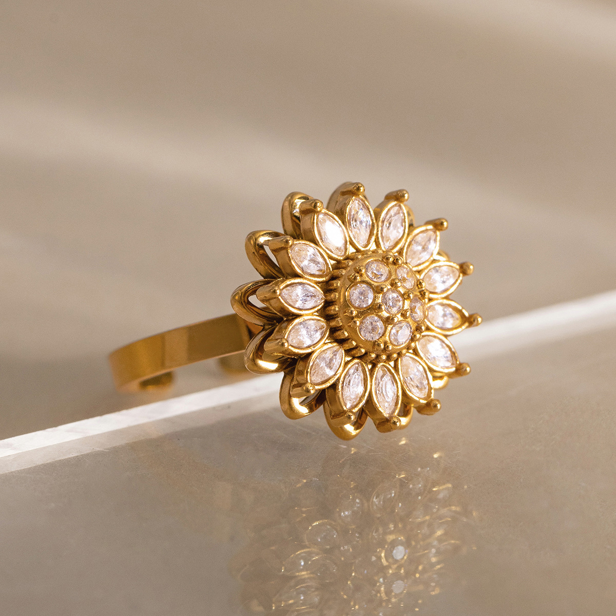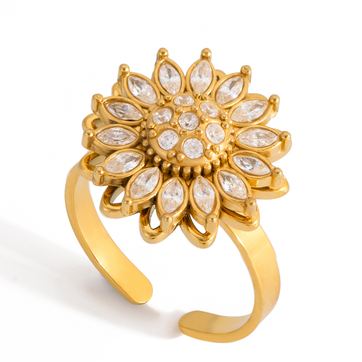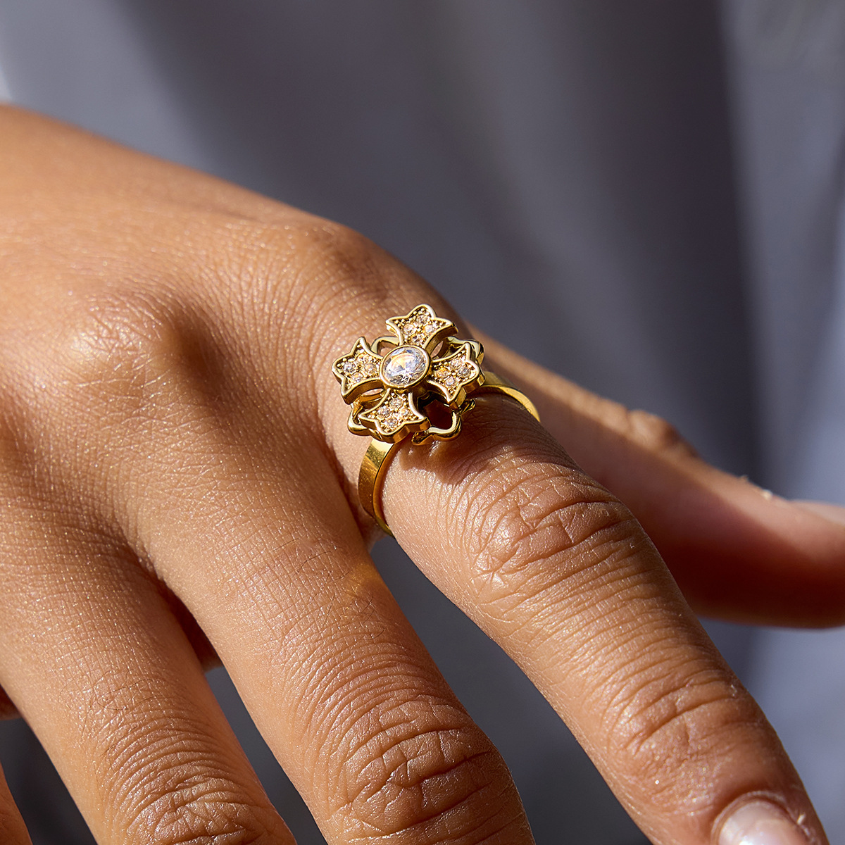 18K Gold Plated Stainless Steel Spinning CZ Ring – Adjustable Unique Fidget Band