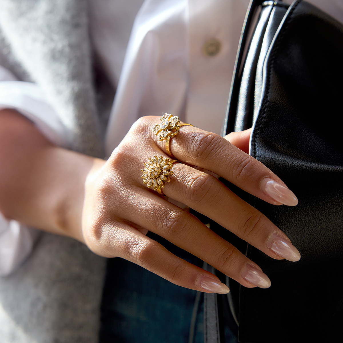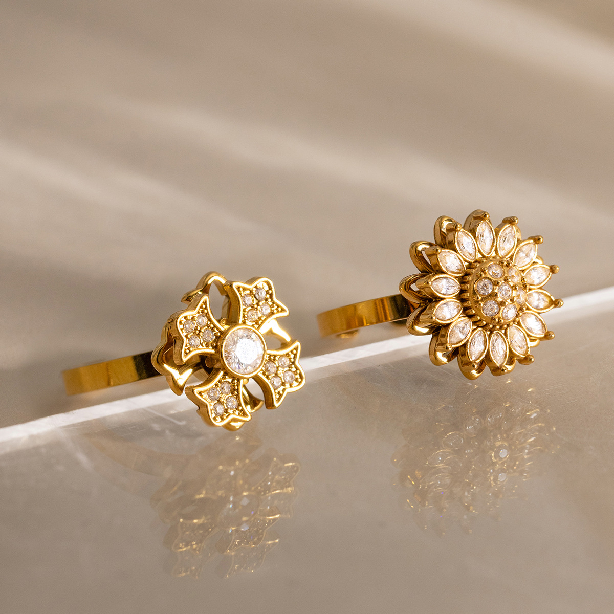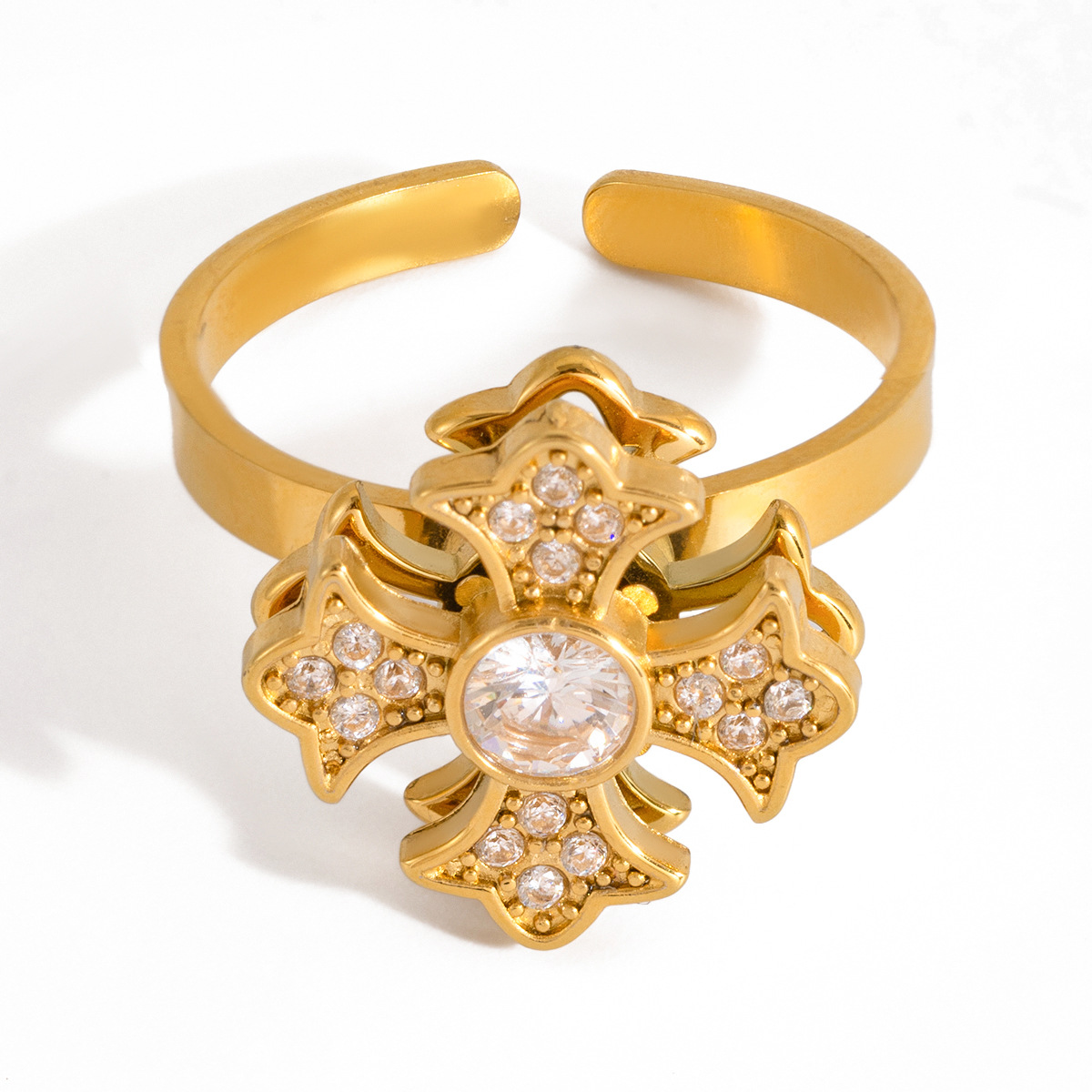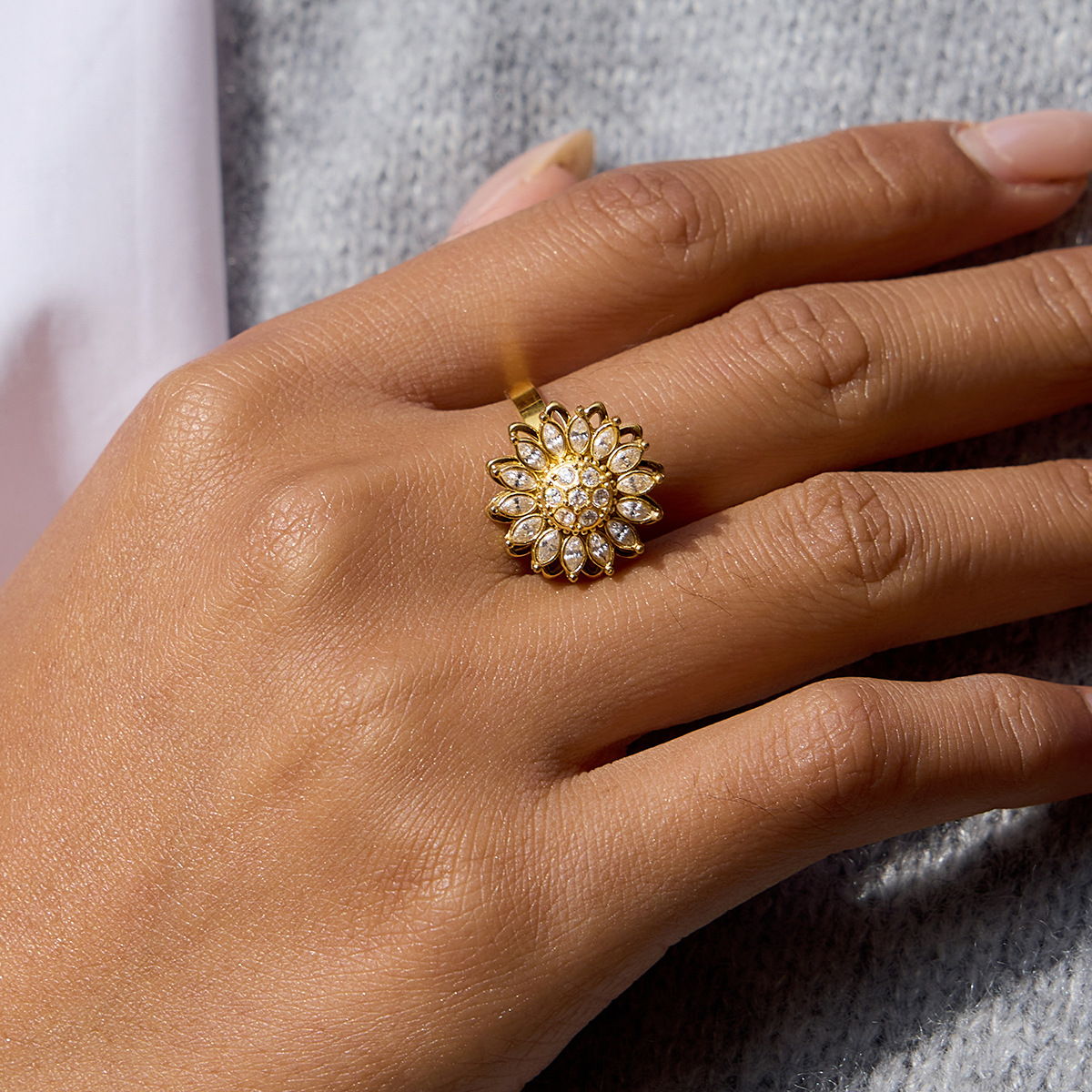 18K Gold Plated Stainless Steel Spinning CZ Ring – Adjustable Unique Fidget Band