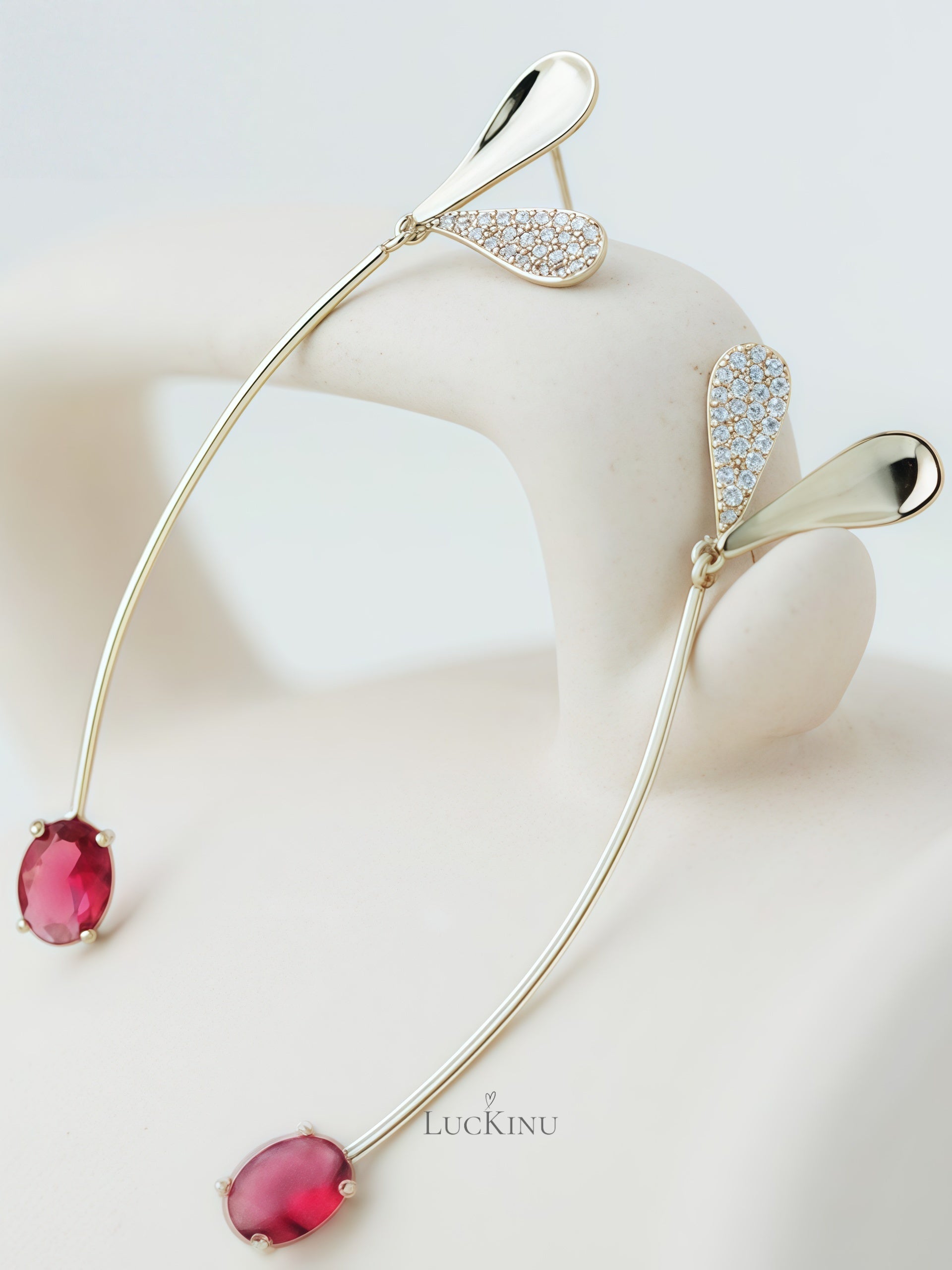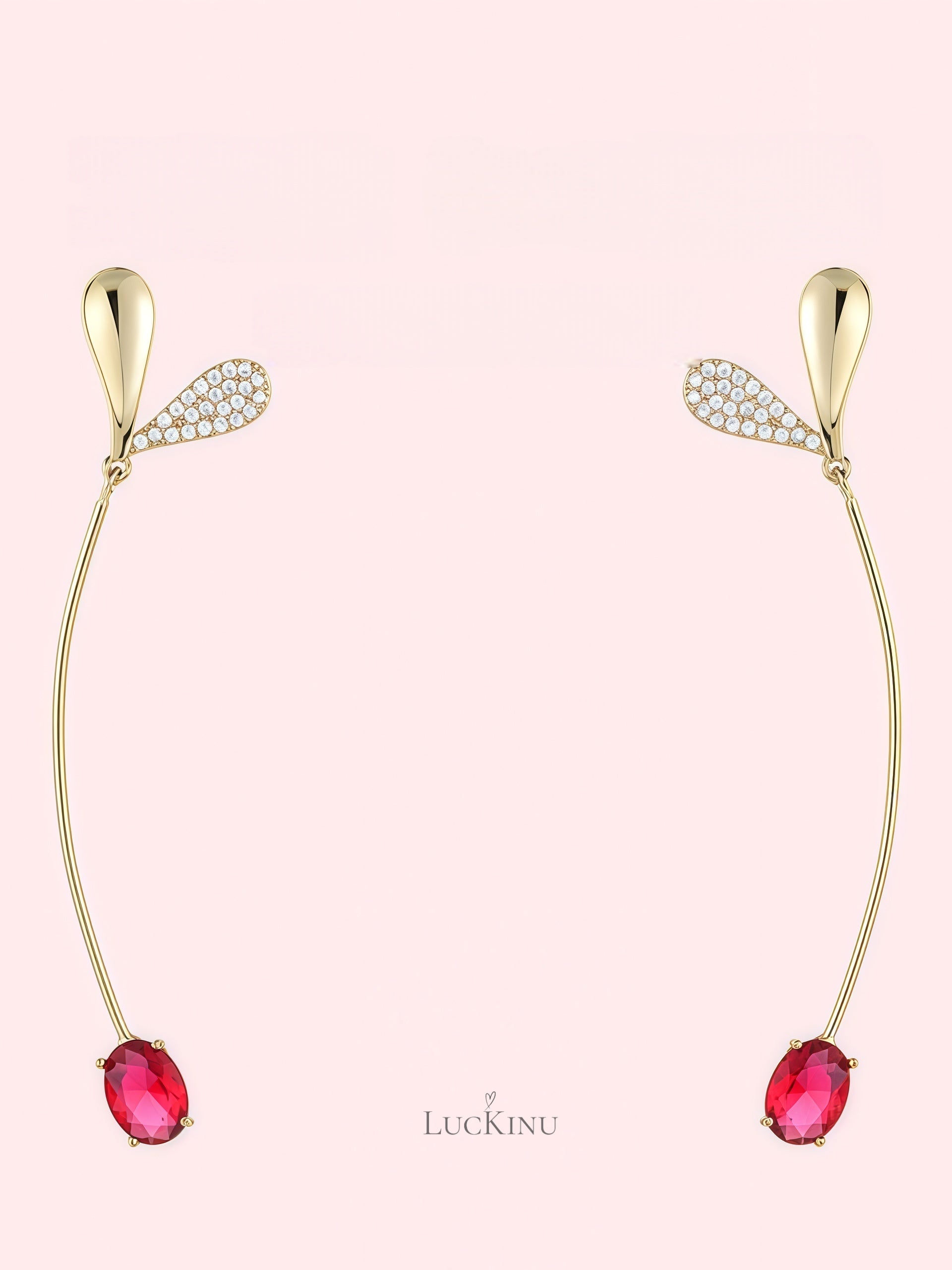 Heart-Shaped Red Stone Long Drop Earrings – Designer Romantic Jewelry