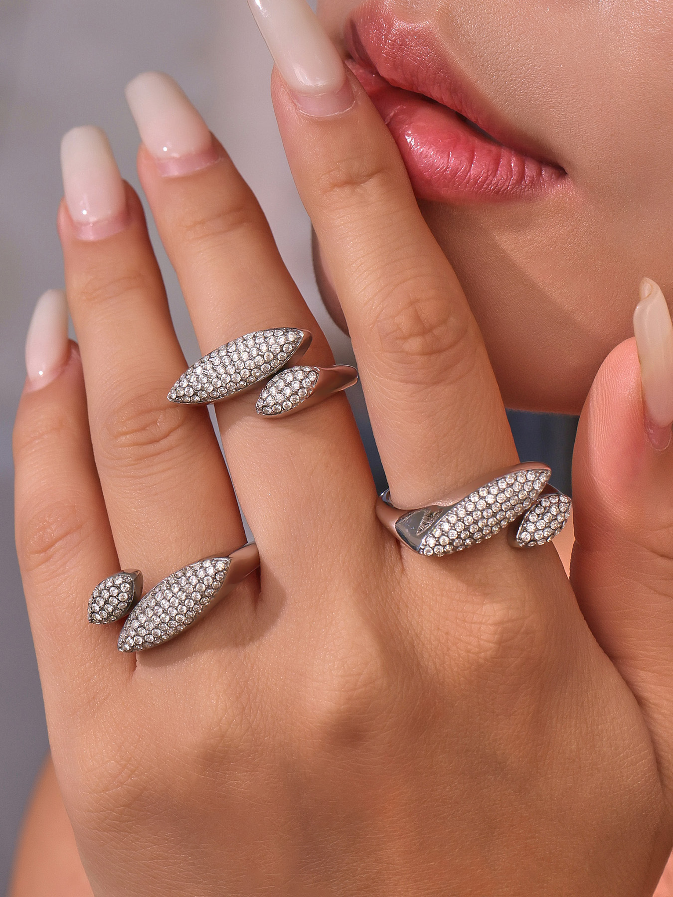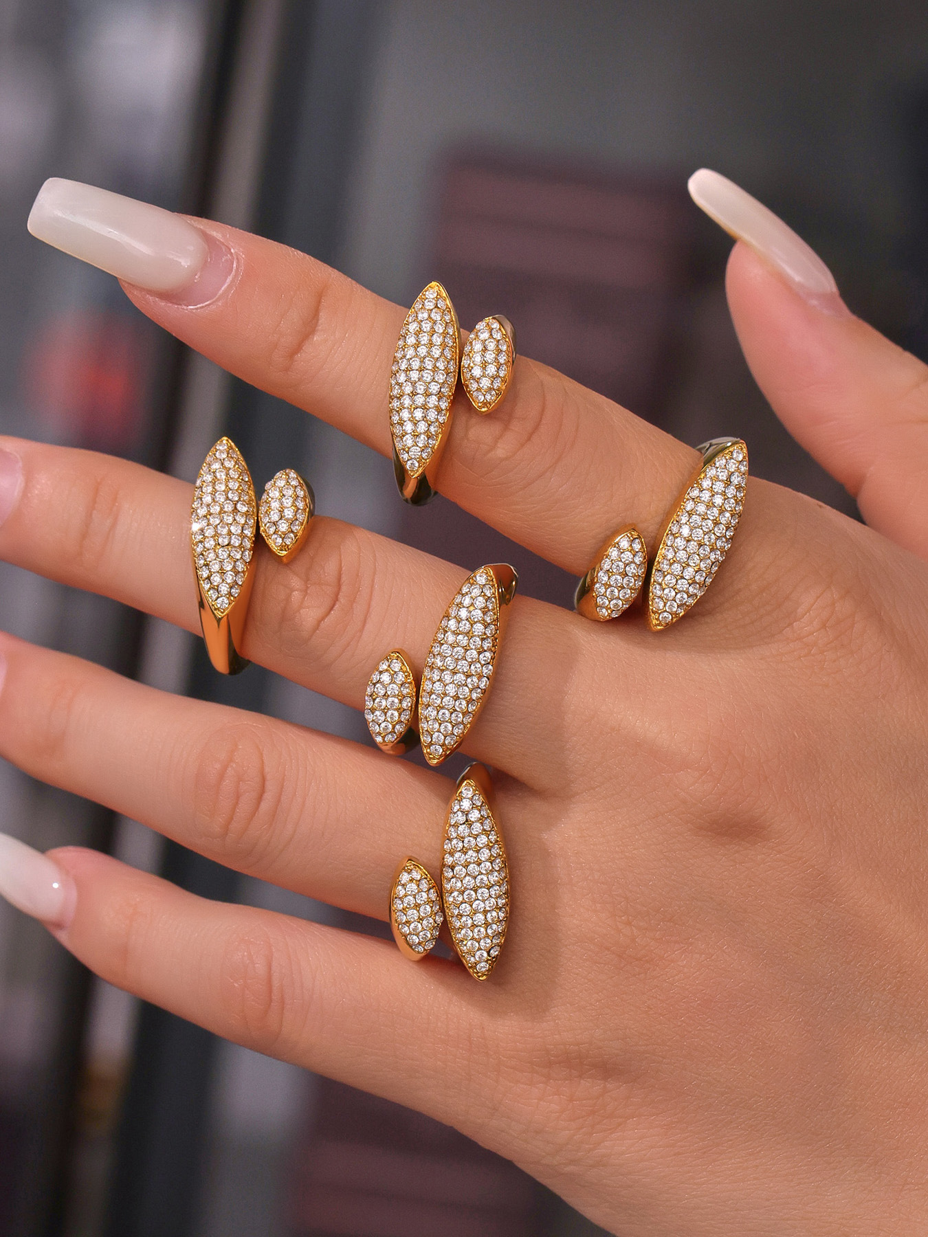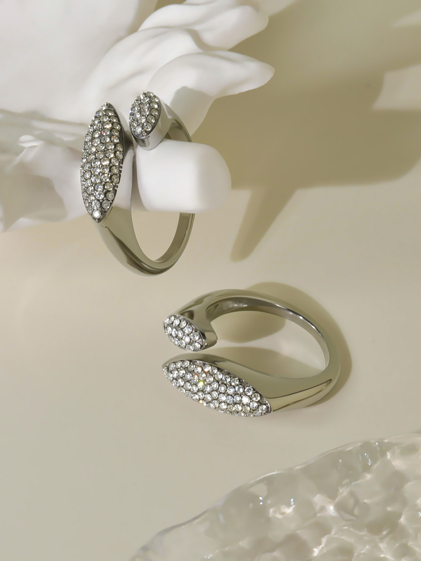 Stainless Steel CZ Pave Irregular Geometric Open Ring – Luxury Adjustable Fashion Ring