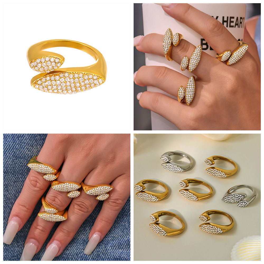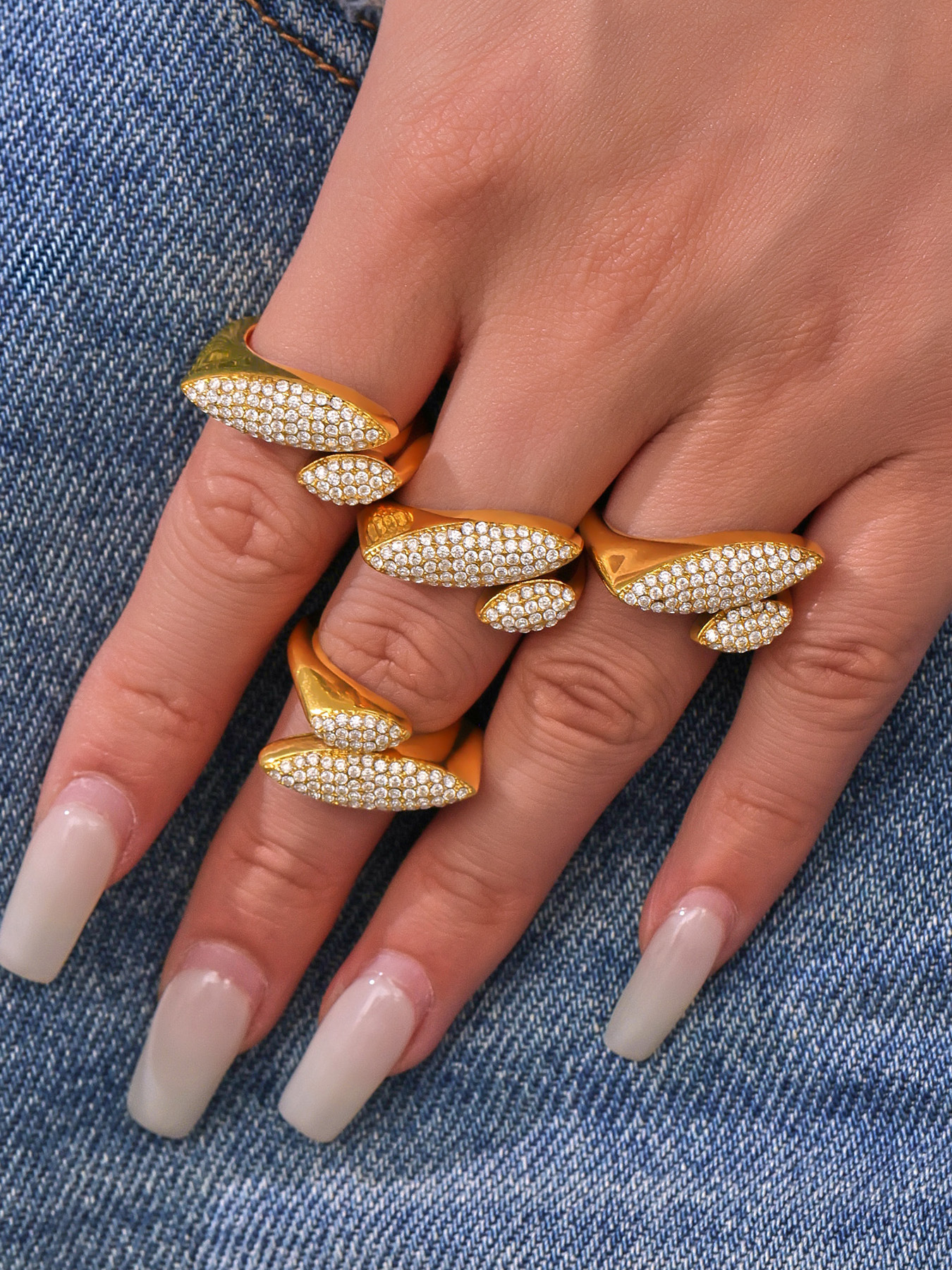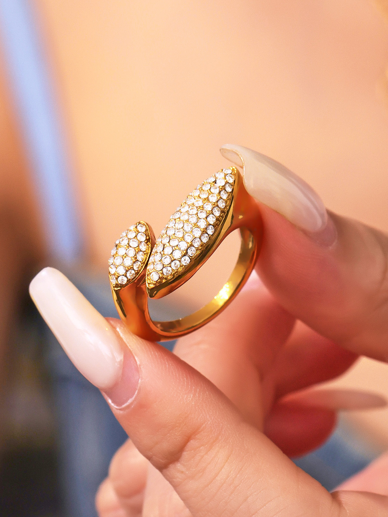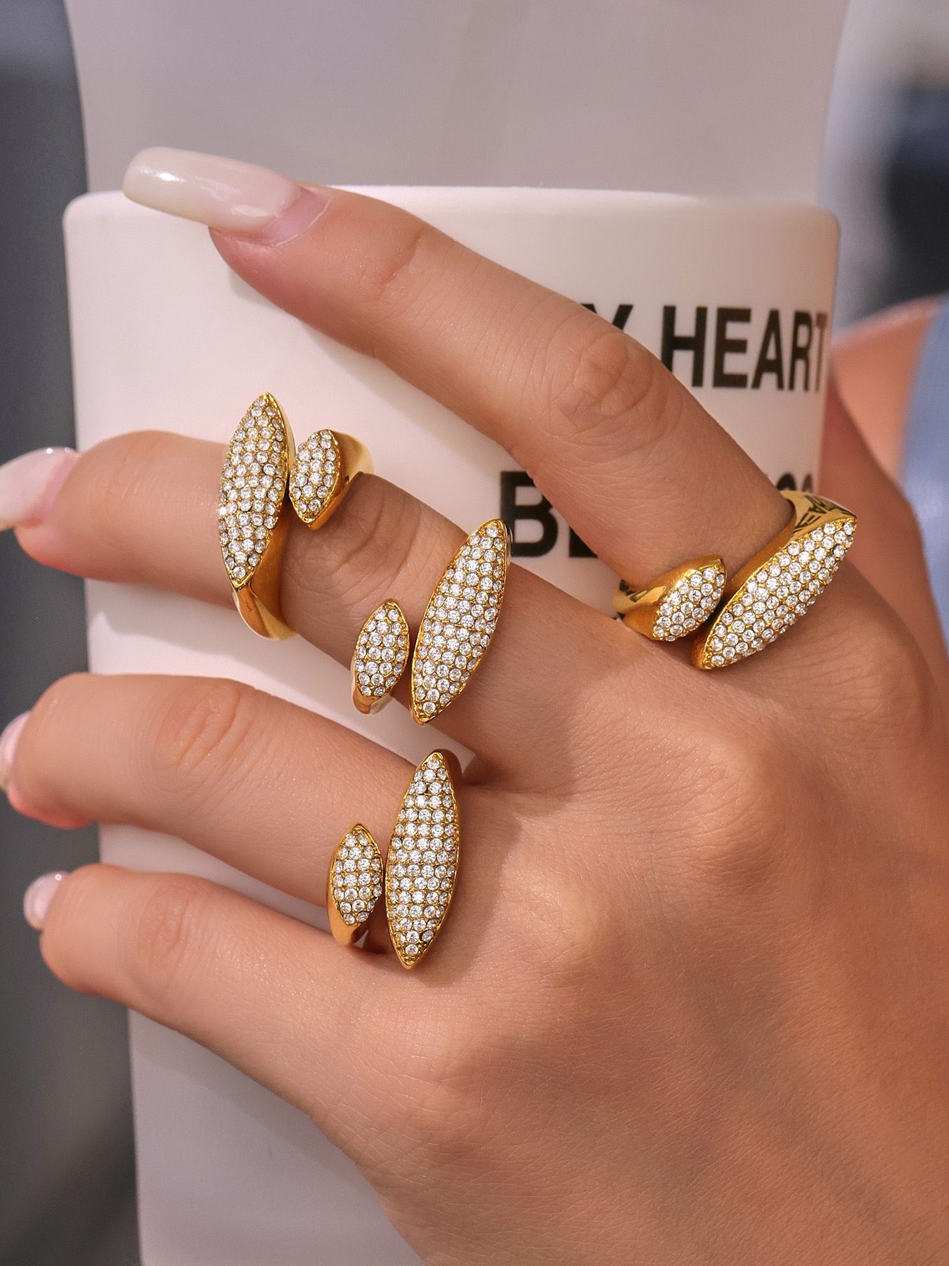 Stainless Steel CZ Pave Irregular Geometric Open Ring – Luxury Adjustable Fashion Ring