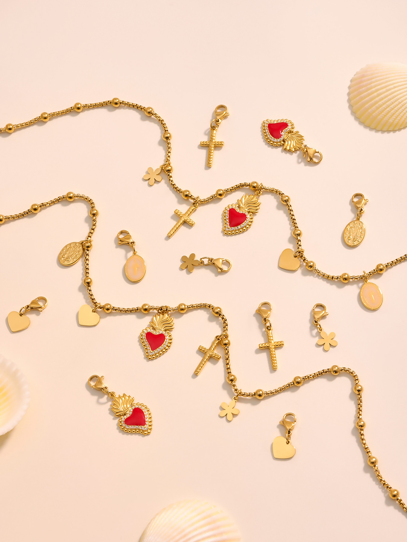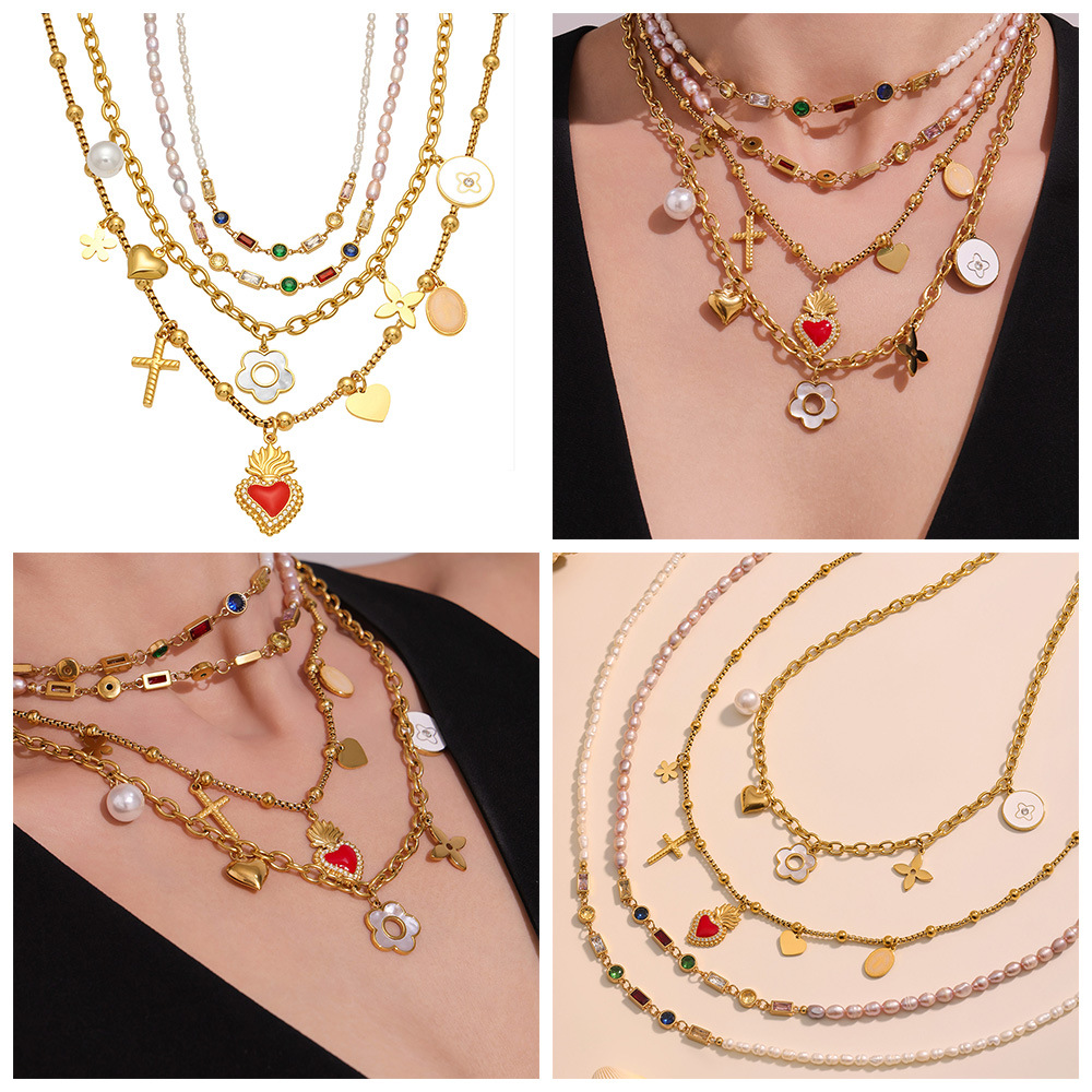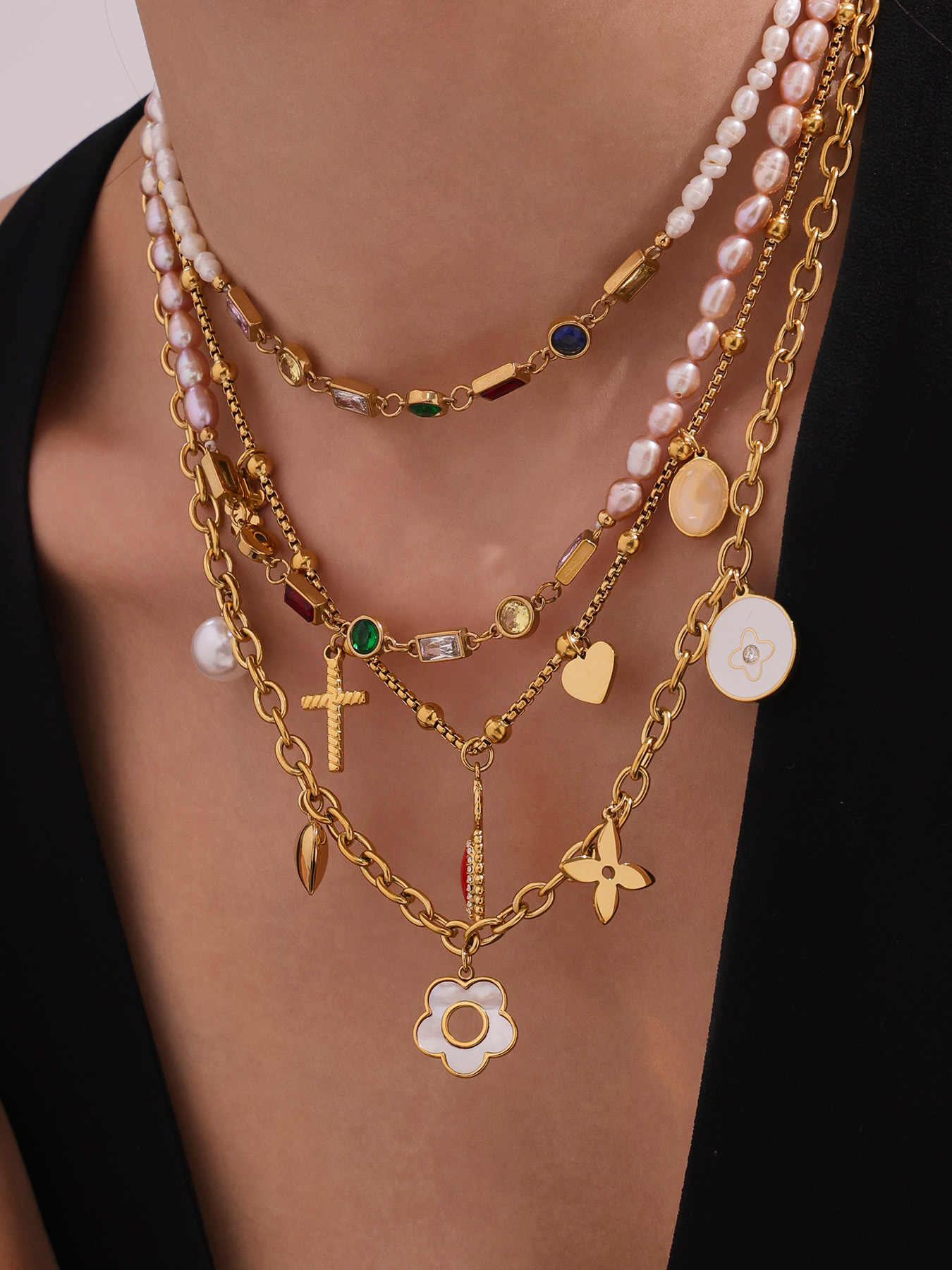 This charming DIY-style necklace features a heart, flower, and cross pendant, embellished with colorful zircon stones. Made from durable stainless steel, it adds a playful and personal touch to your look—perfect for everyday wear or as a thoughtful gift.