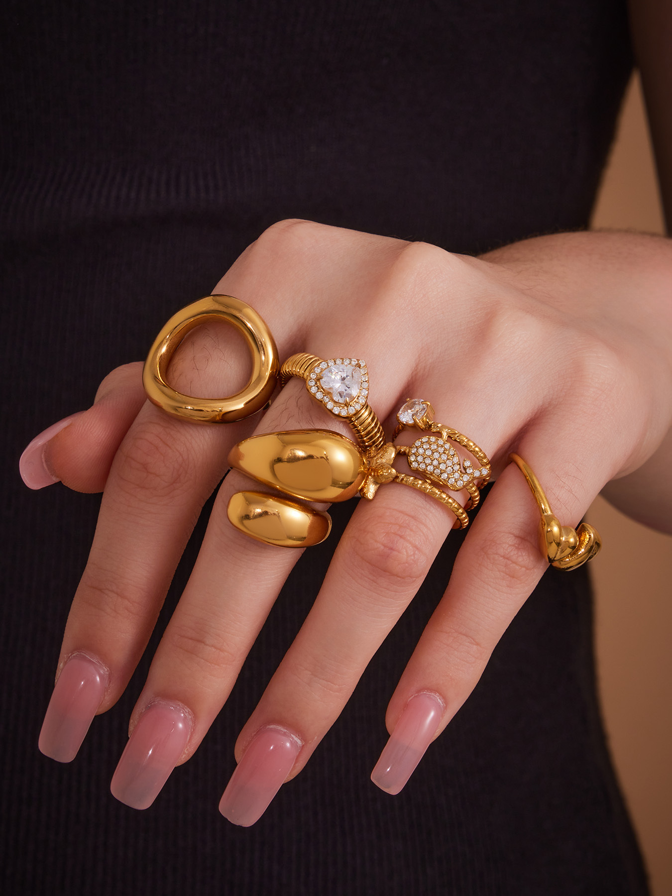 戒指女 金色戒指 戒指钛钢 珍珠戒指 戒指不掉色 18k戒指 马吉拉戒指