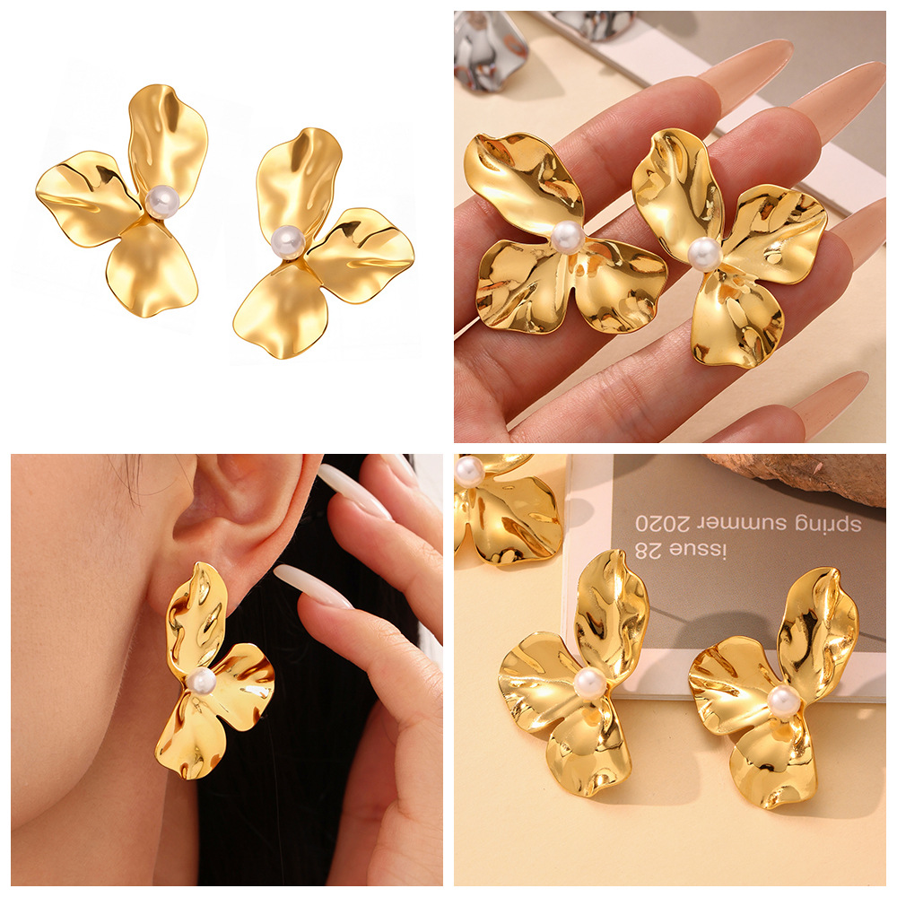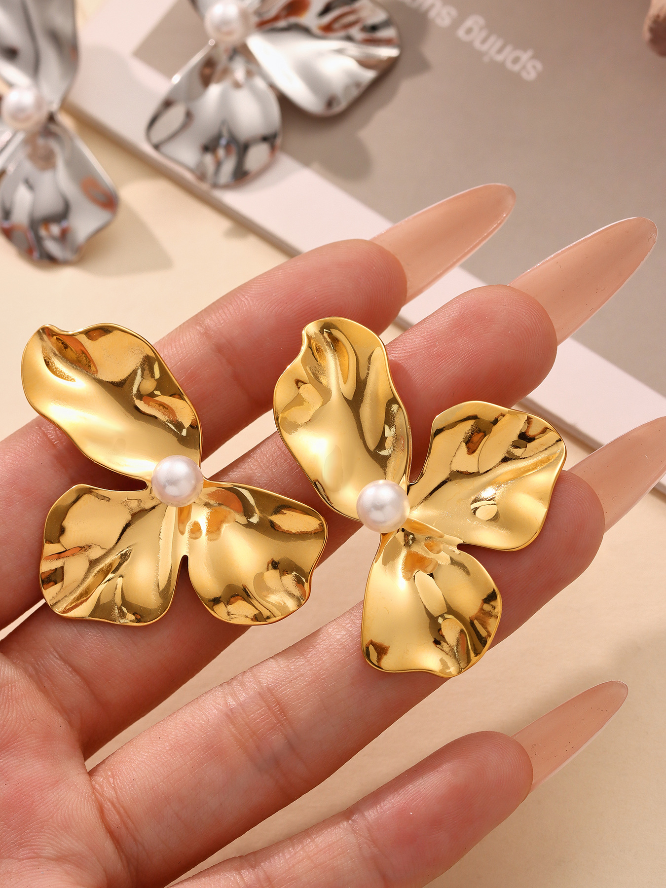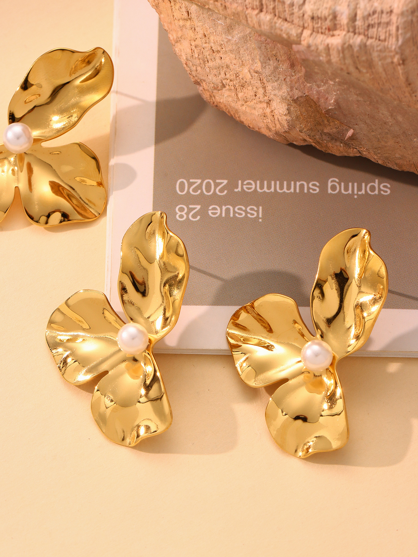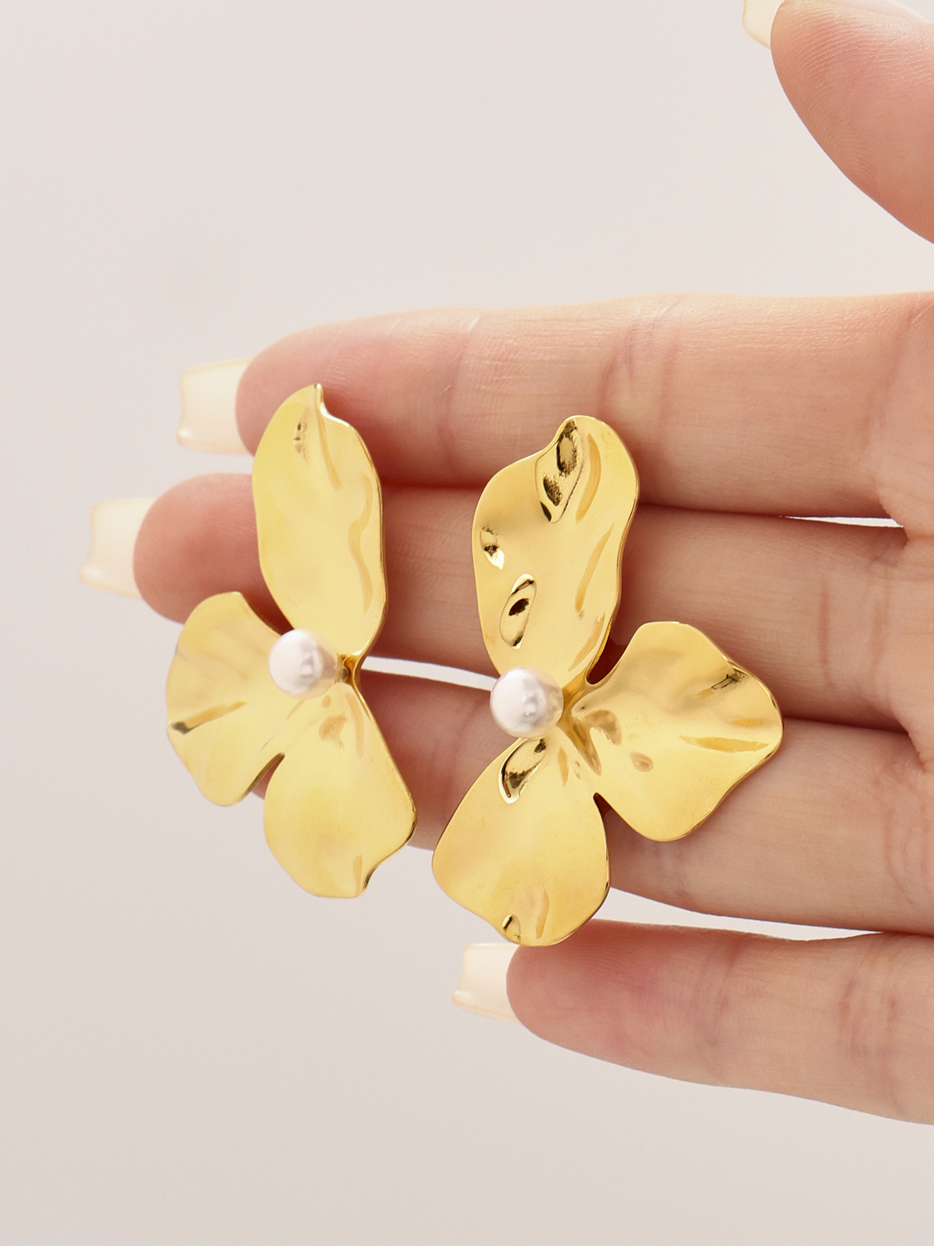 These elegant stud earrings feature a pearl-accented, pleated petal design with a chic floral vibe. Made from durable stainless steel, they’re perfect for adding a subtle, stylish touch to your everyday outfits or vacation looks. Ideal as a thoughtful gift or personal accessory.