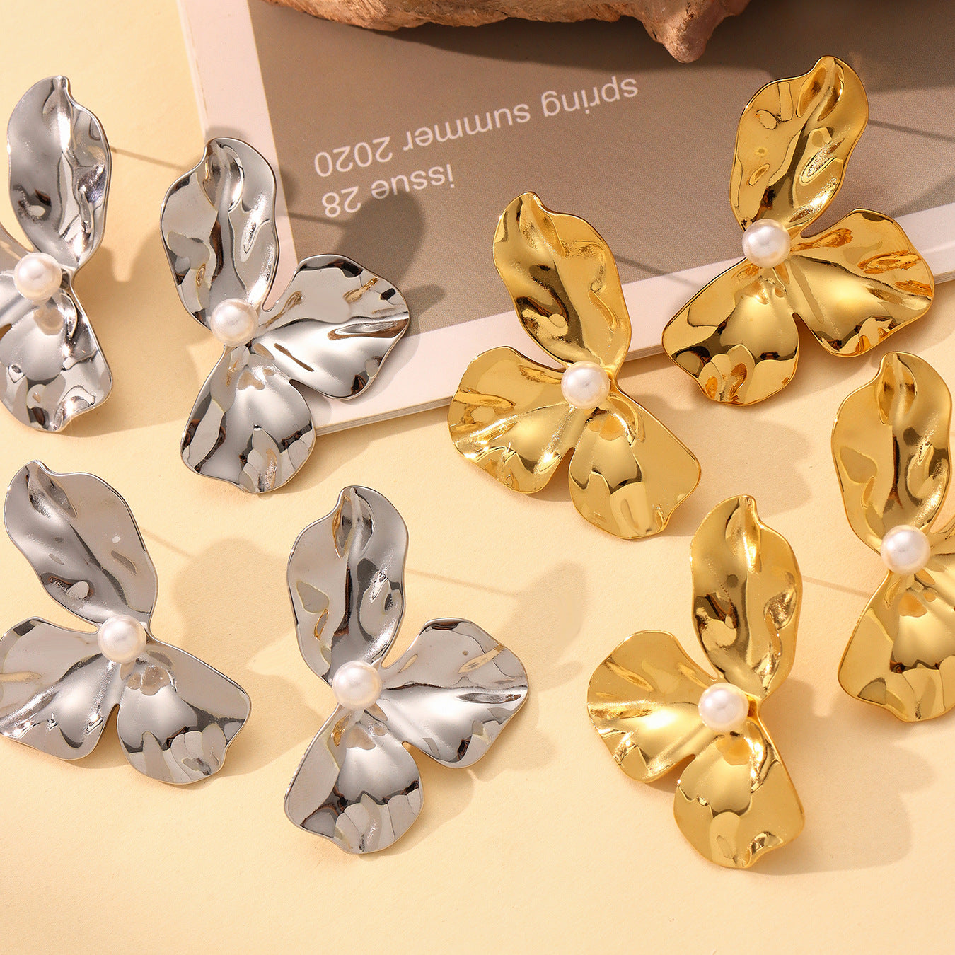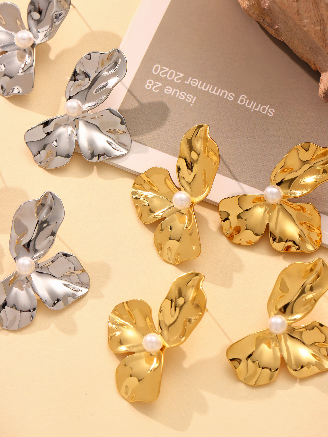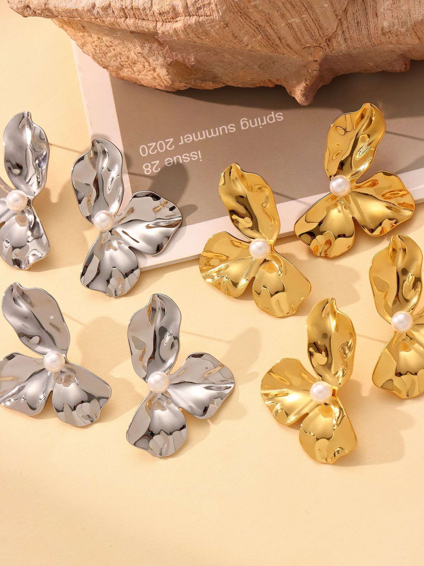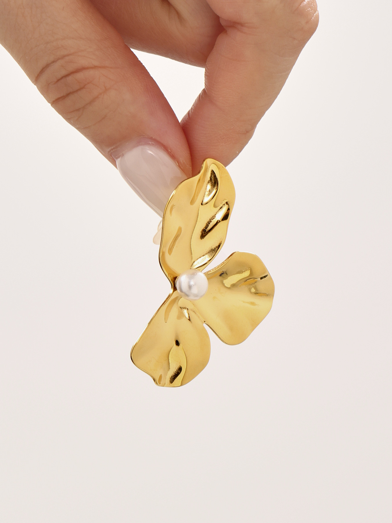 These elegant stud earrings feature a pearl-accented, pleated petal design with a chic floral vibe. Made from durable stainless steel, they’re perfect for adding a subtle, stylish touch to your everyday outfits or vacation looks. Ideal as a thoughtful gift or personal accessory.