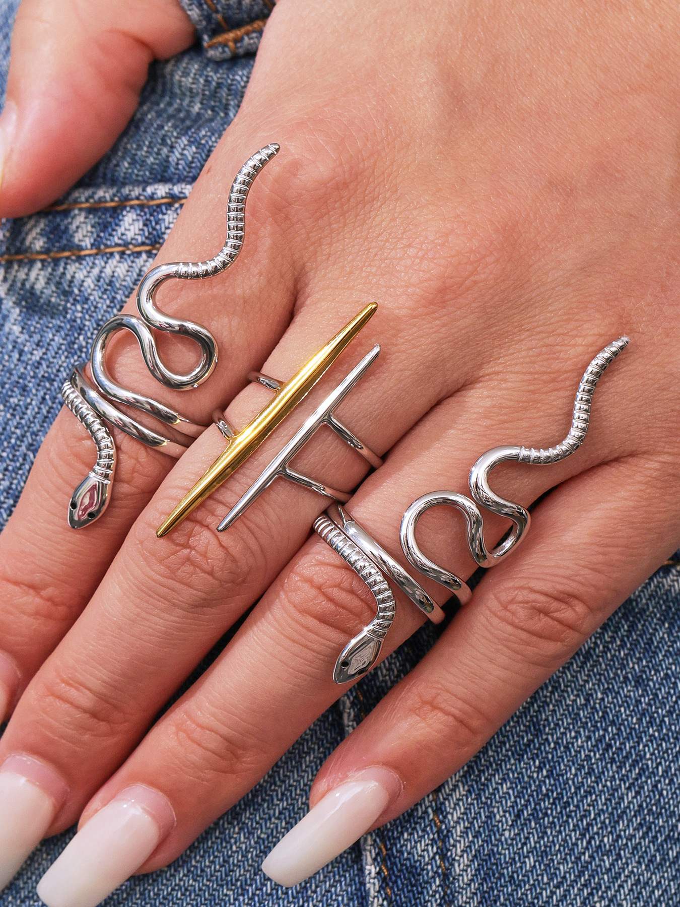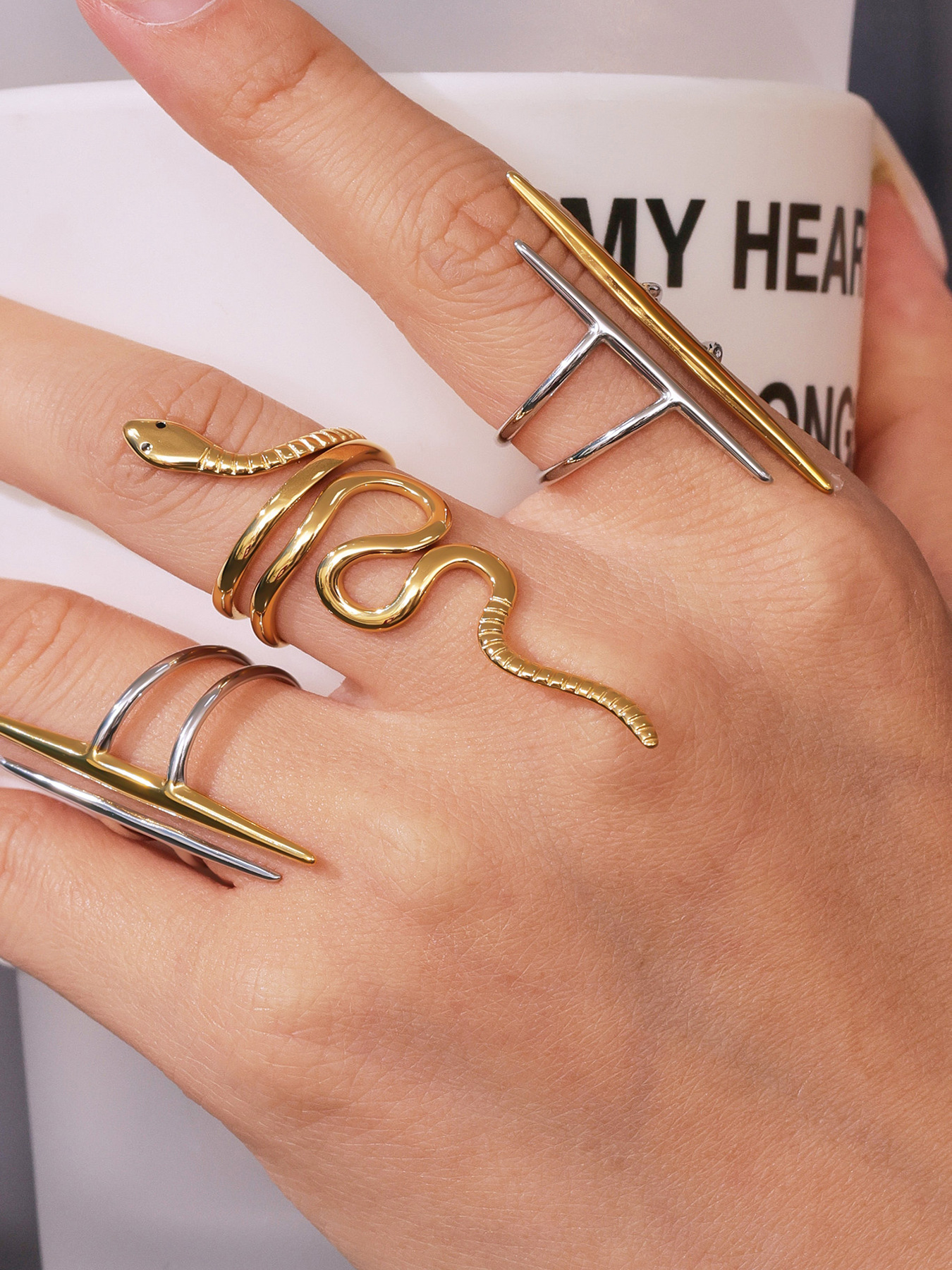 Embrace a touch of mystery and elegance with this minimalist stainless steel snake ring. Designed with a smooth, fluid serpent silhouette, it brings subtle edge and sophistication to any look.