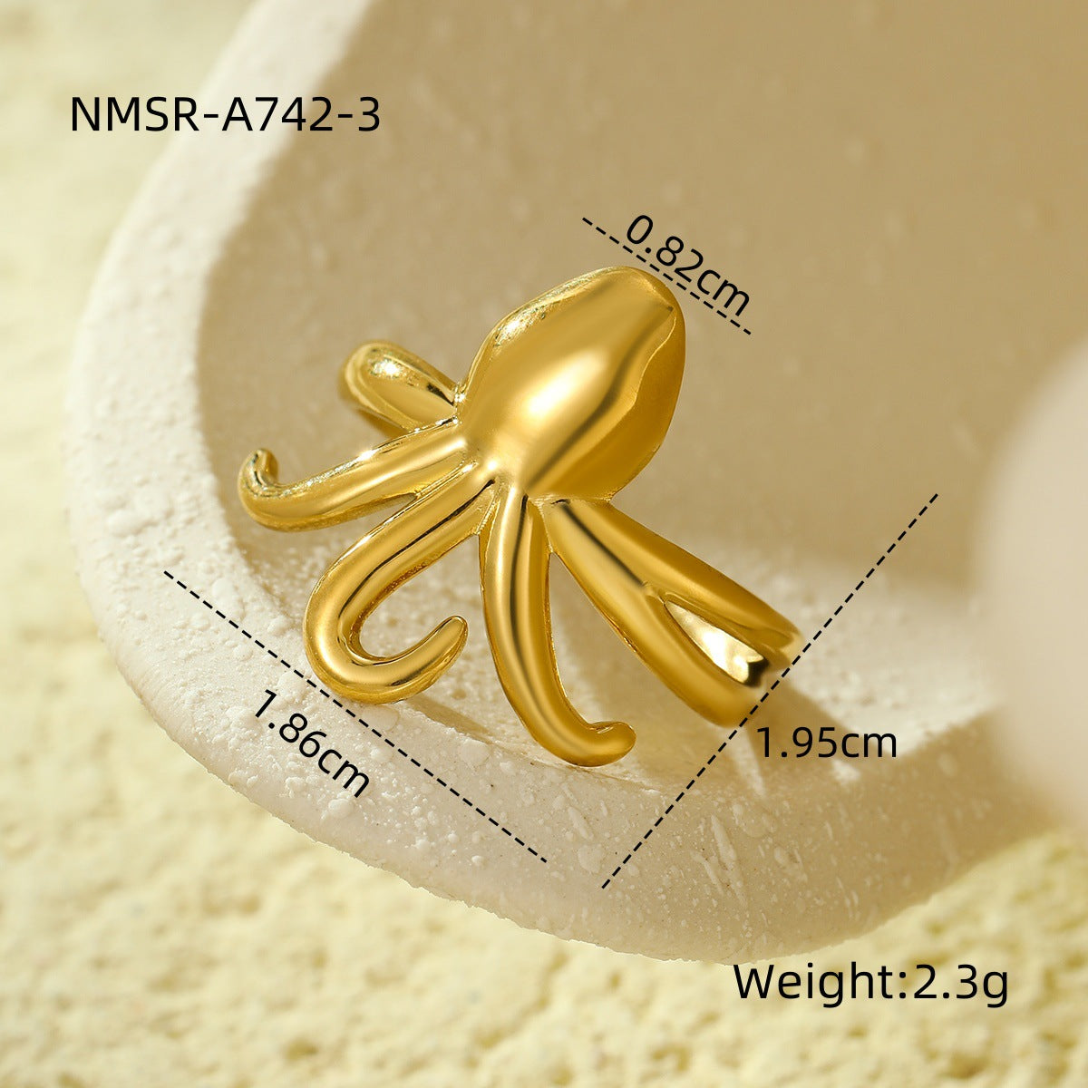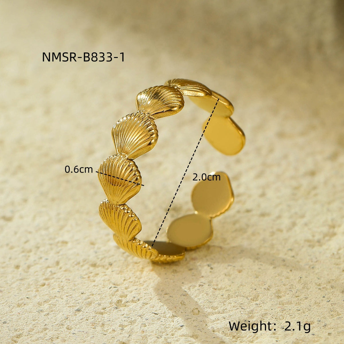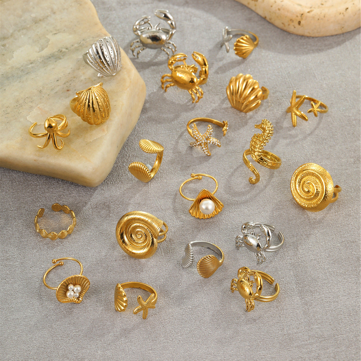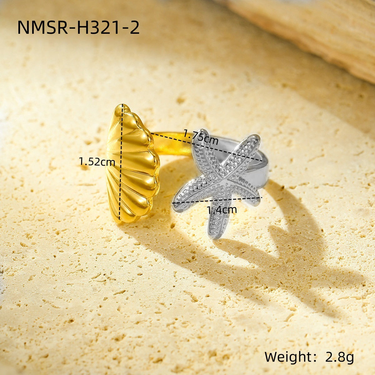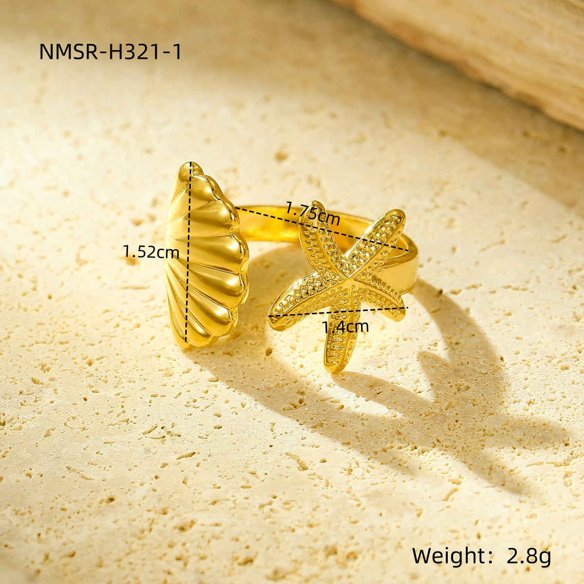 A minimalist ring featuring starfish and shell details, crafted from stainless steel. Lightweight and stylish, perfect for adding a subtle, beachy touch to your summer outfits.