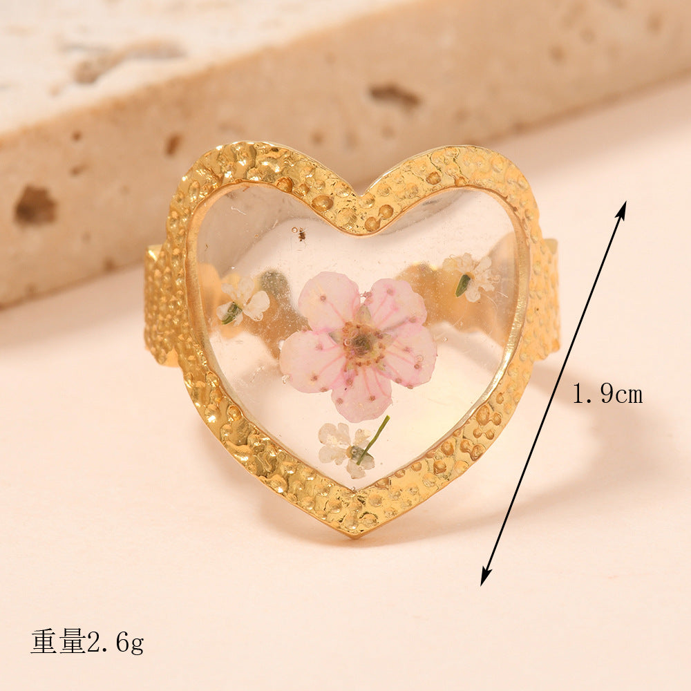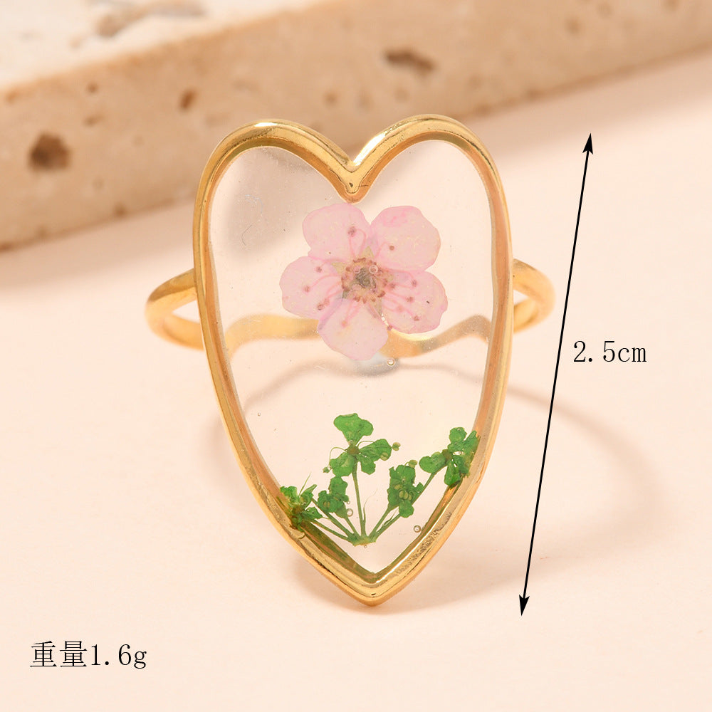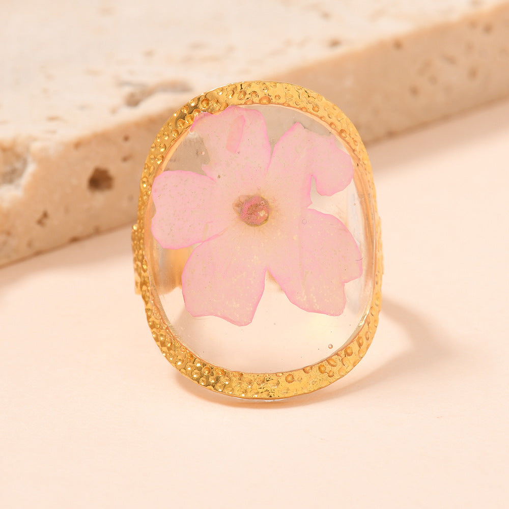 Each piece features real preserved flowers sealed in clear resin, creating a soft and dreamy aesthetic.
